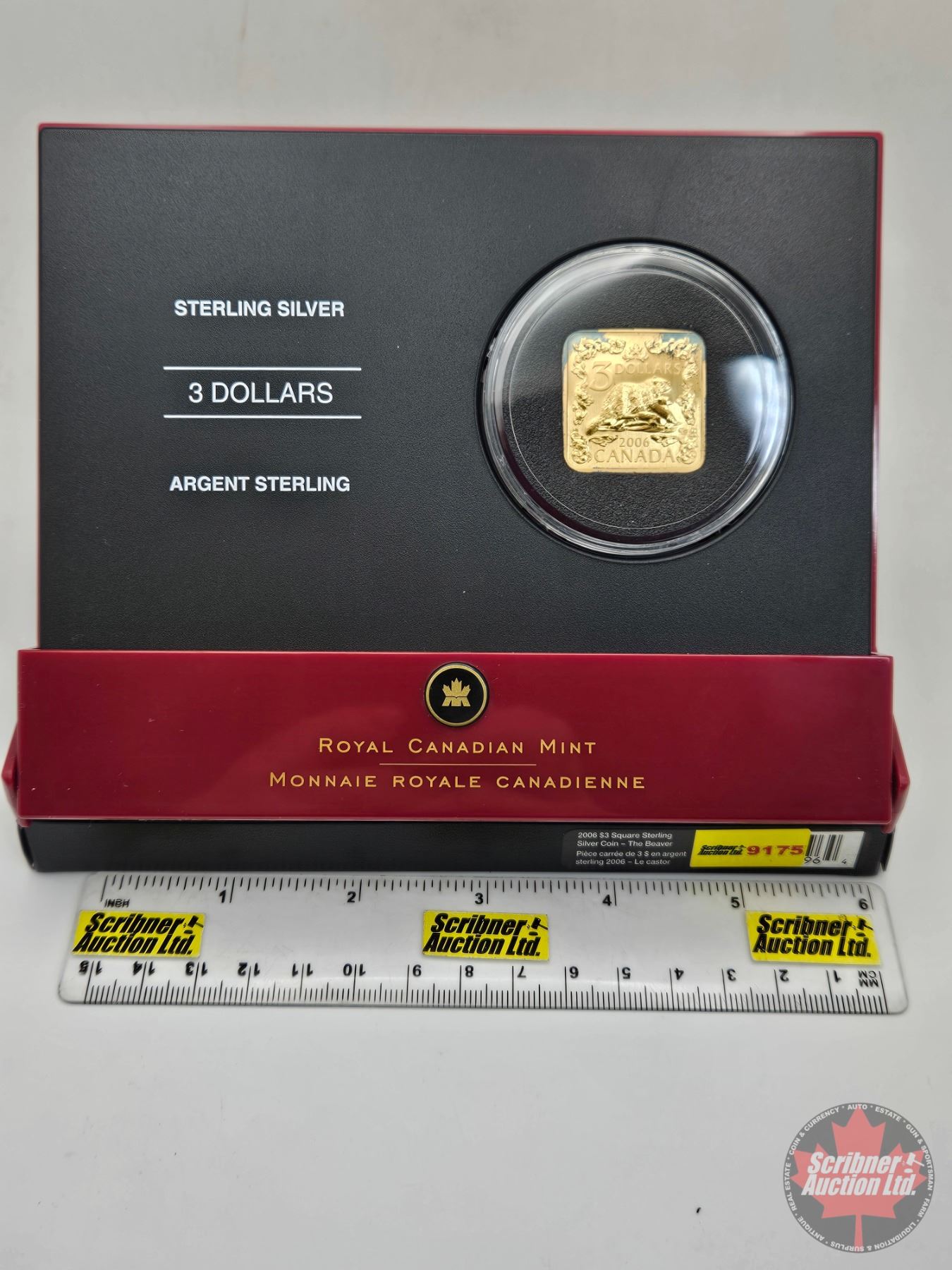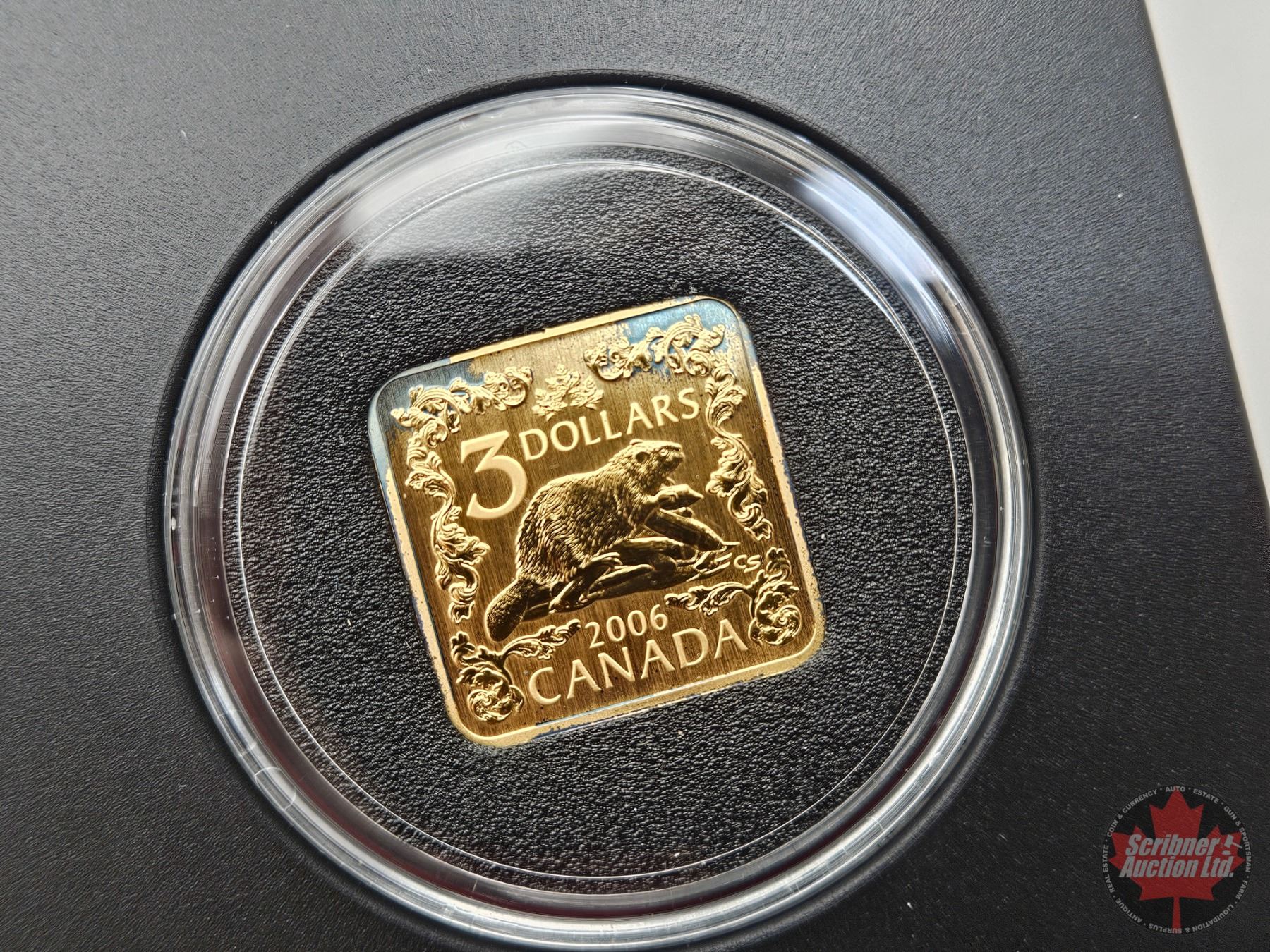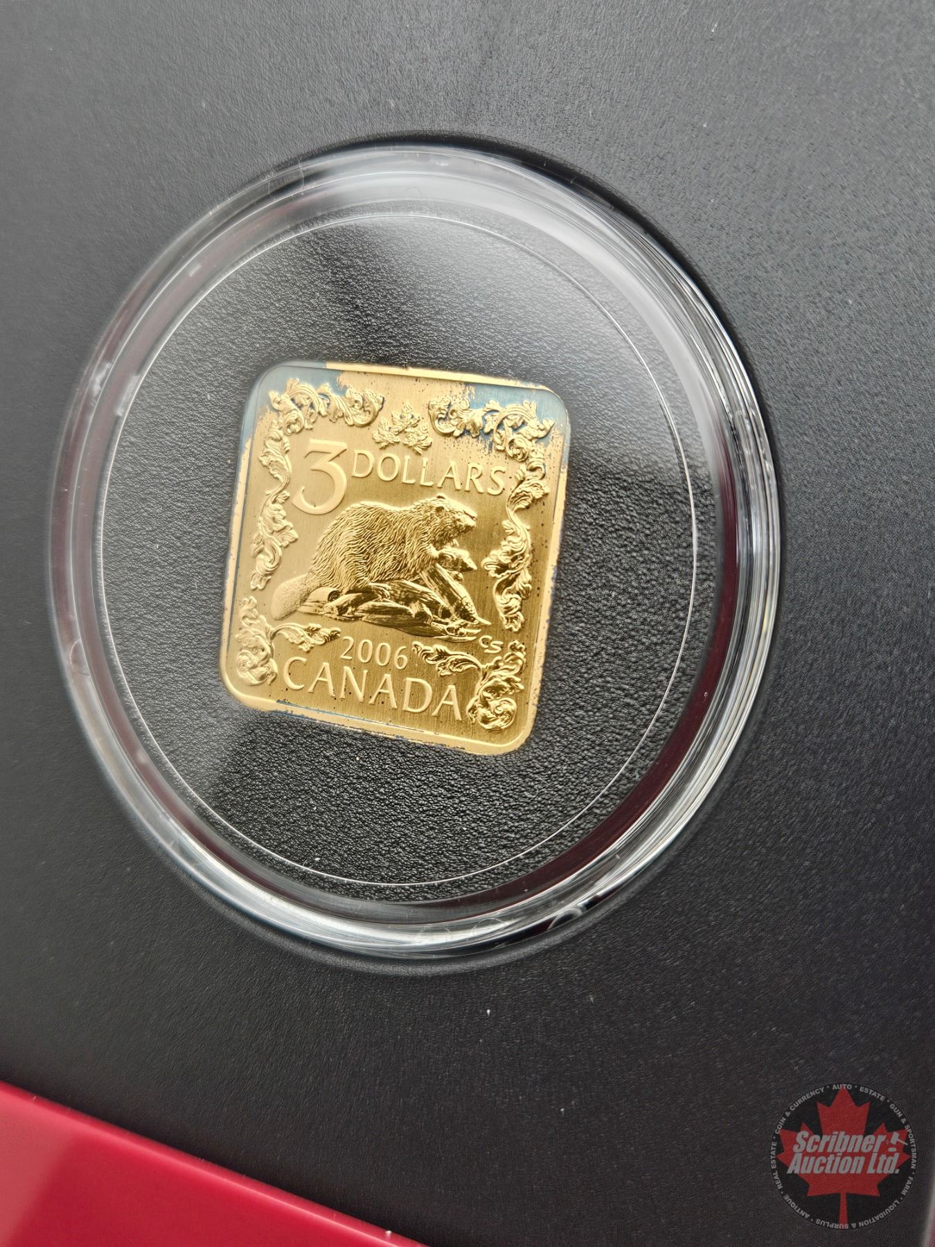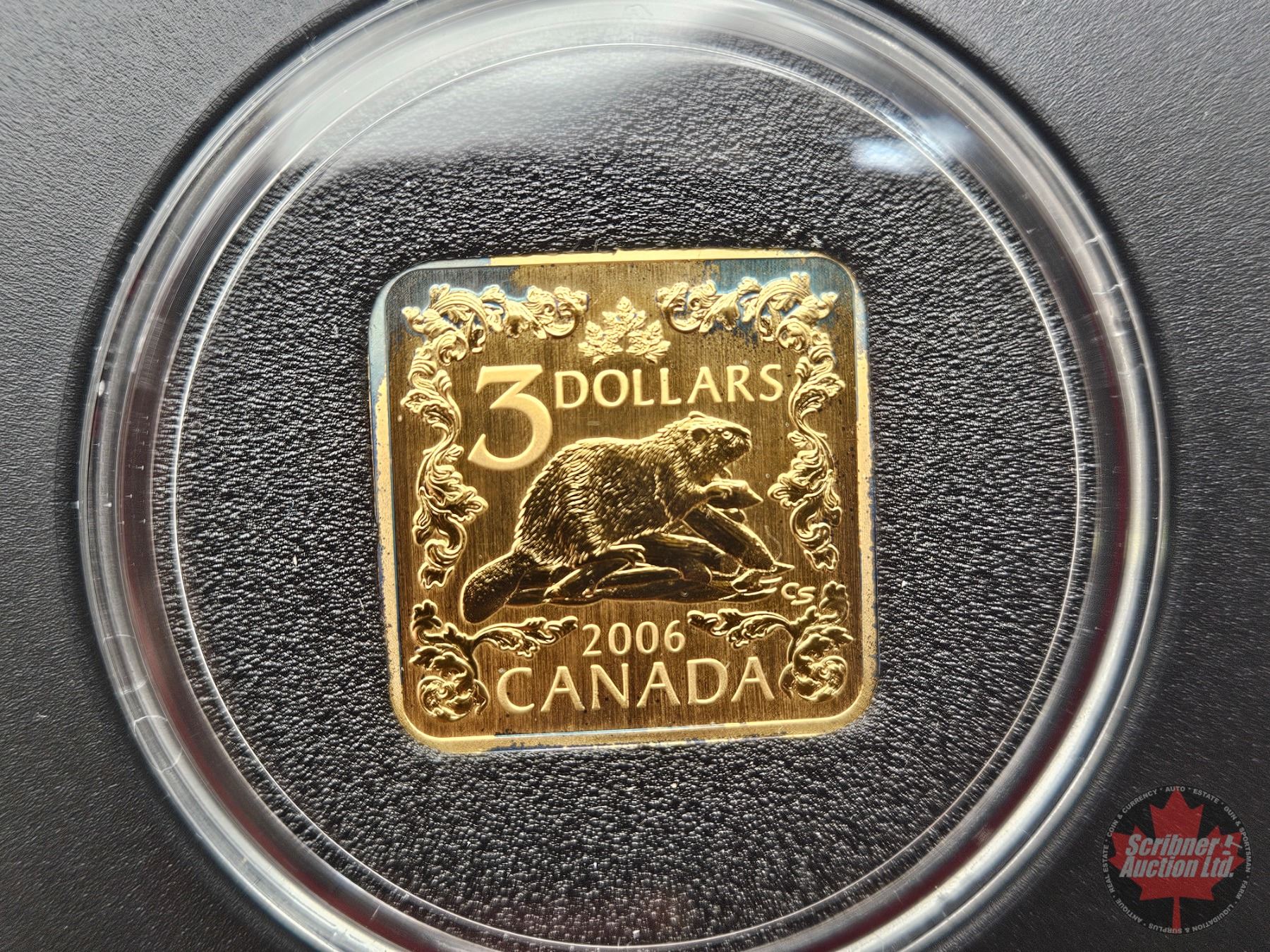 RCM Canada 2006 $3 Square Sterling Silver Coin : The Beaver (COA #05531) (92.5% : Plated 24-Karat Gold)