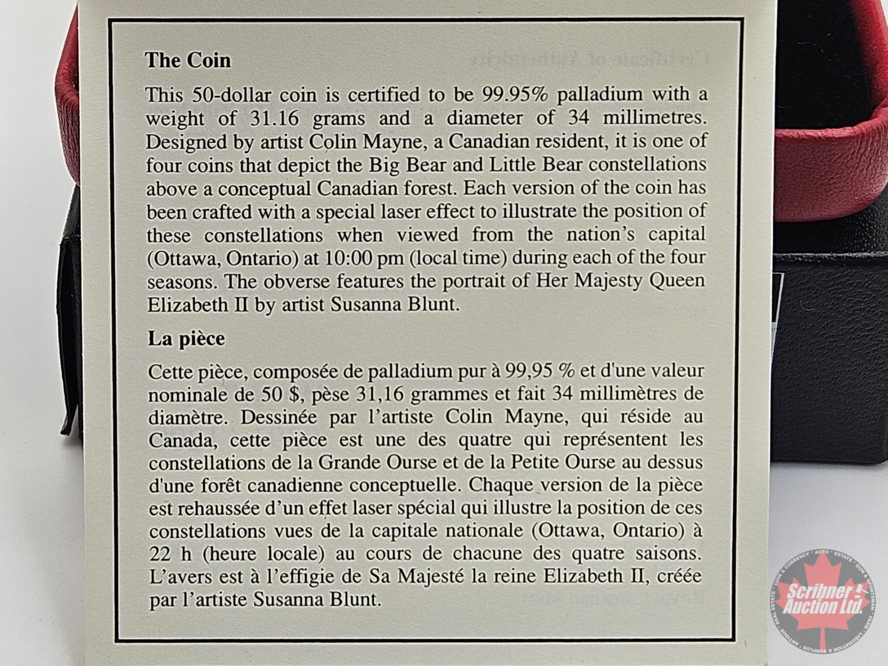 RCM Canada 2006 : $50 Palladium Coin : Big & Little Bear Constellations : Canada's Night Skies (COA #0391)