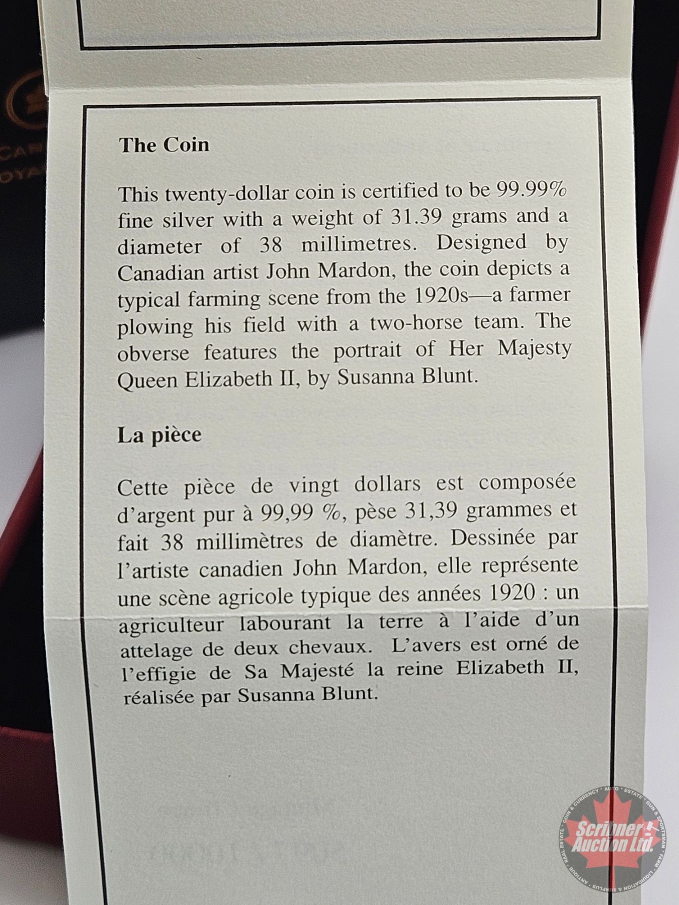 RCM Canada 2008 : $20 Fine Silver Coin : Agriculture Trade (COA #5097)