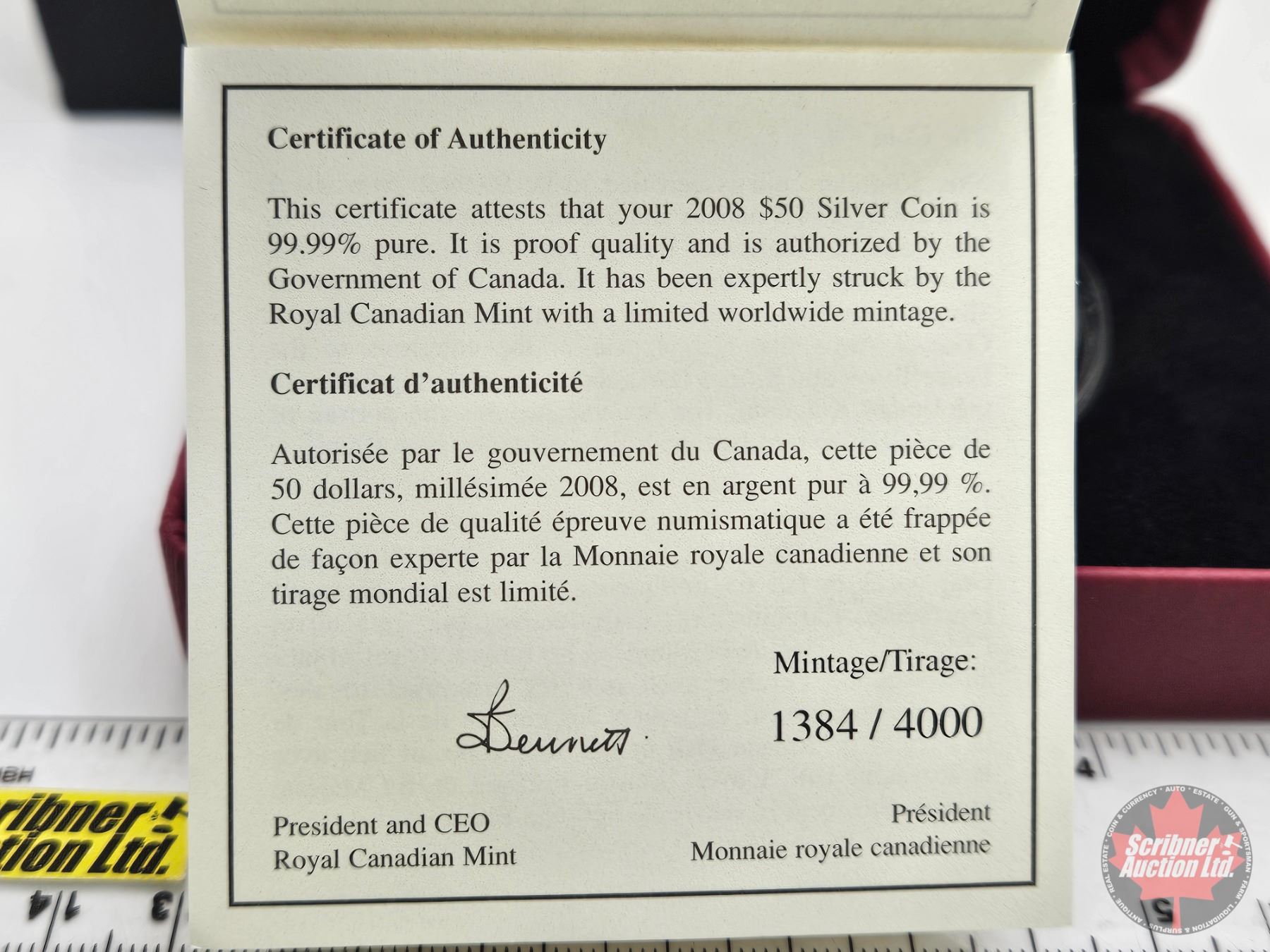 Firearm, Coin & Currency Grades are not the opinion of Scribner Auction Ltd. or any of Scribner Auction Ltd. representatives.