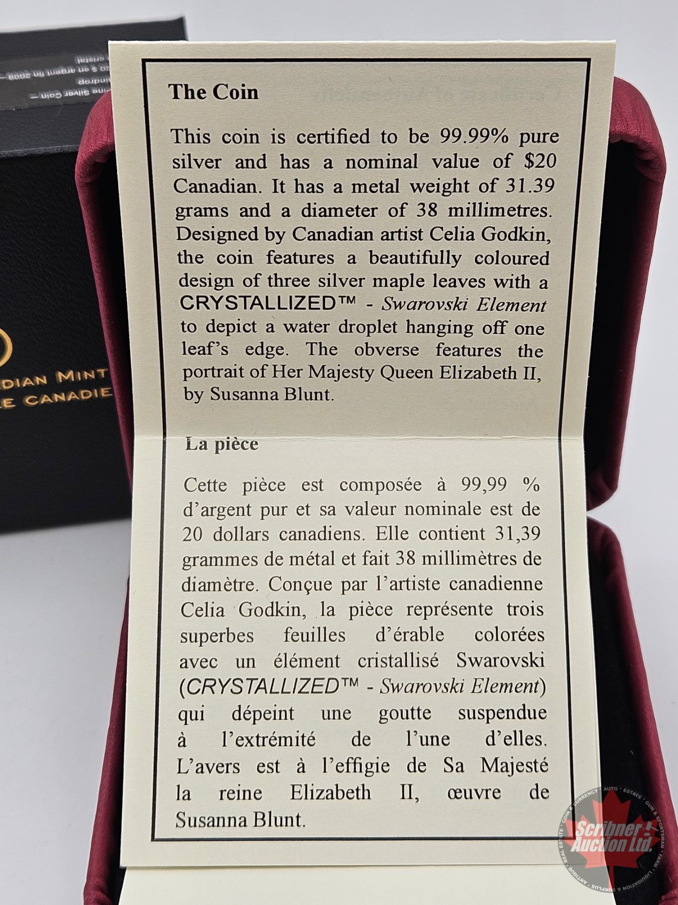RCM Canada 2009 : $20 Silver Coin : Crystal Raindrop (COA #07517) (Swarovski Element)