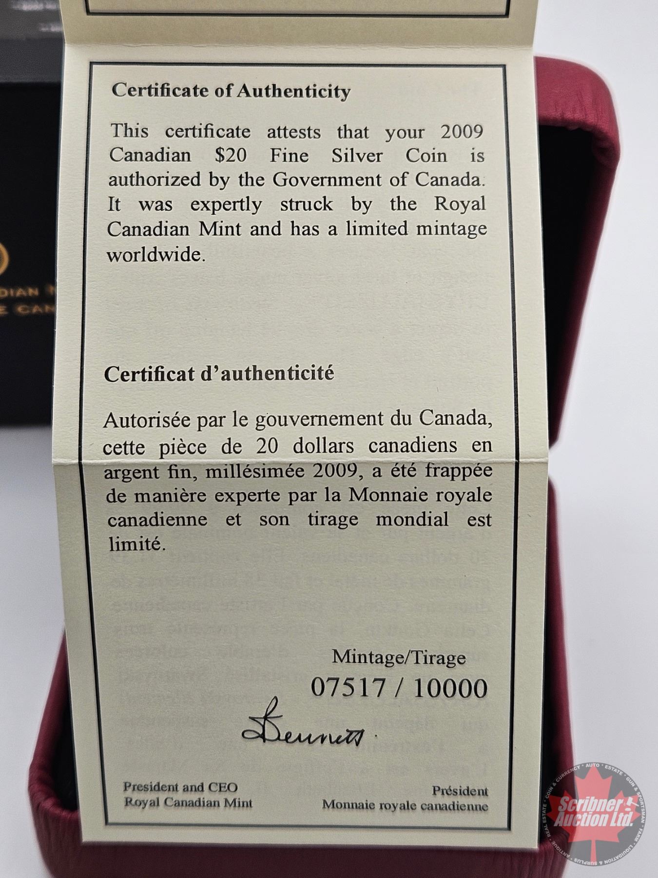 Firearm, Coin & Currency Grades are not the opinion of Scribner Auction Ltd. or any of Scribner Auction Ltd. representatives.