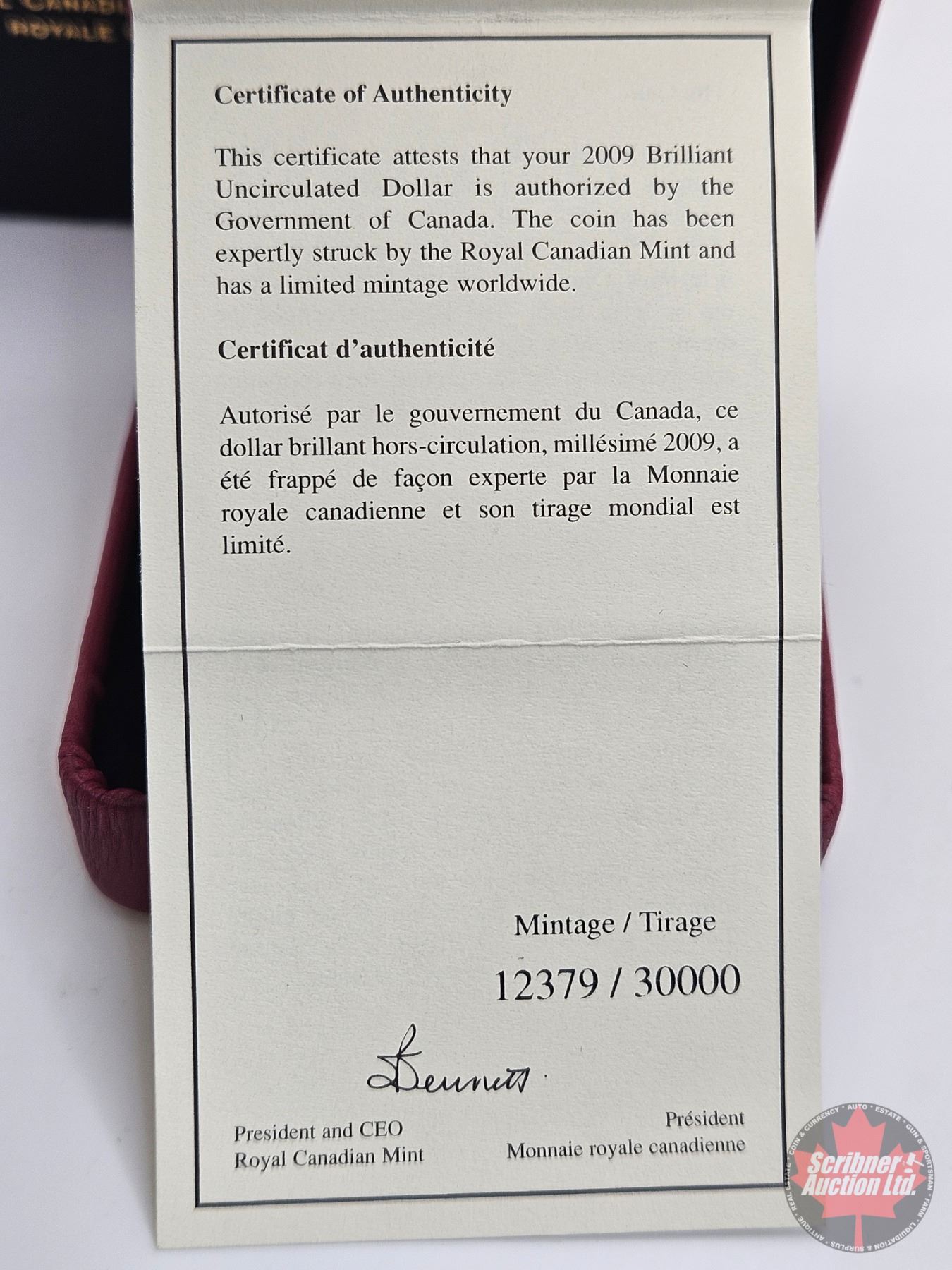 RCM Canada 2009 Brilliant Uncirculated Dollar (COA #12379) (92.5%)