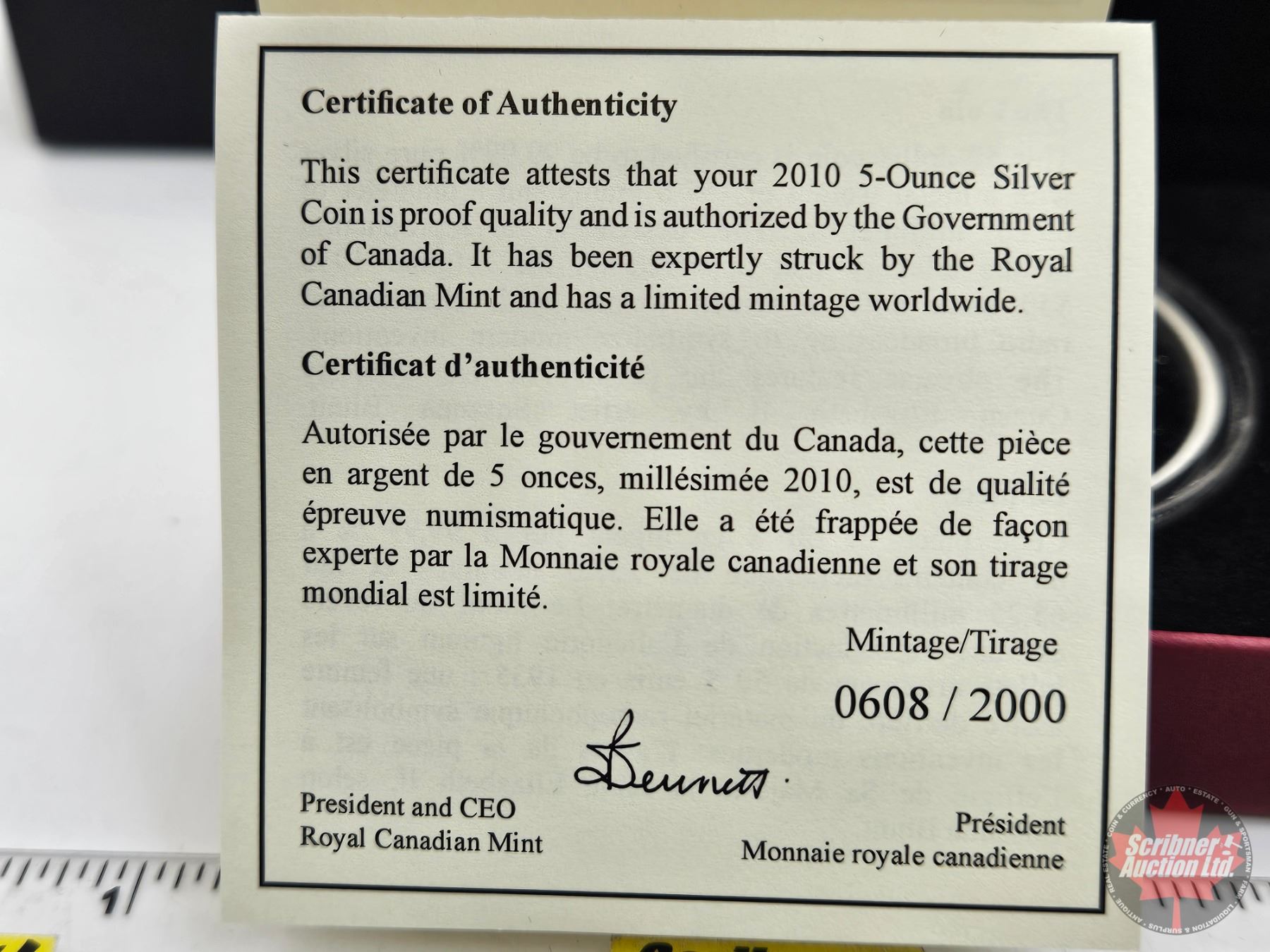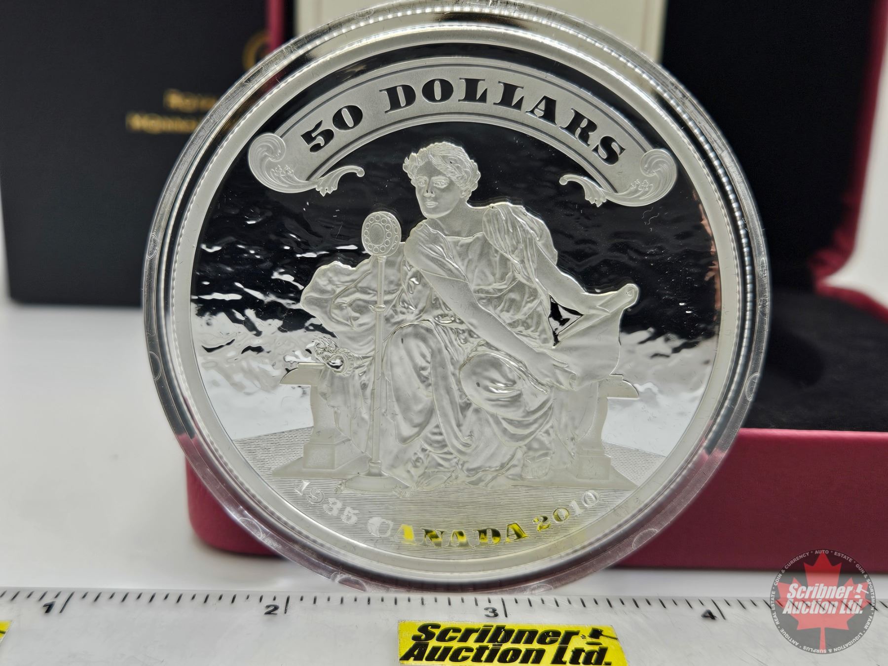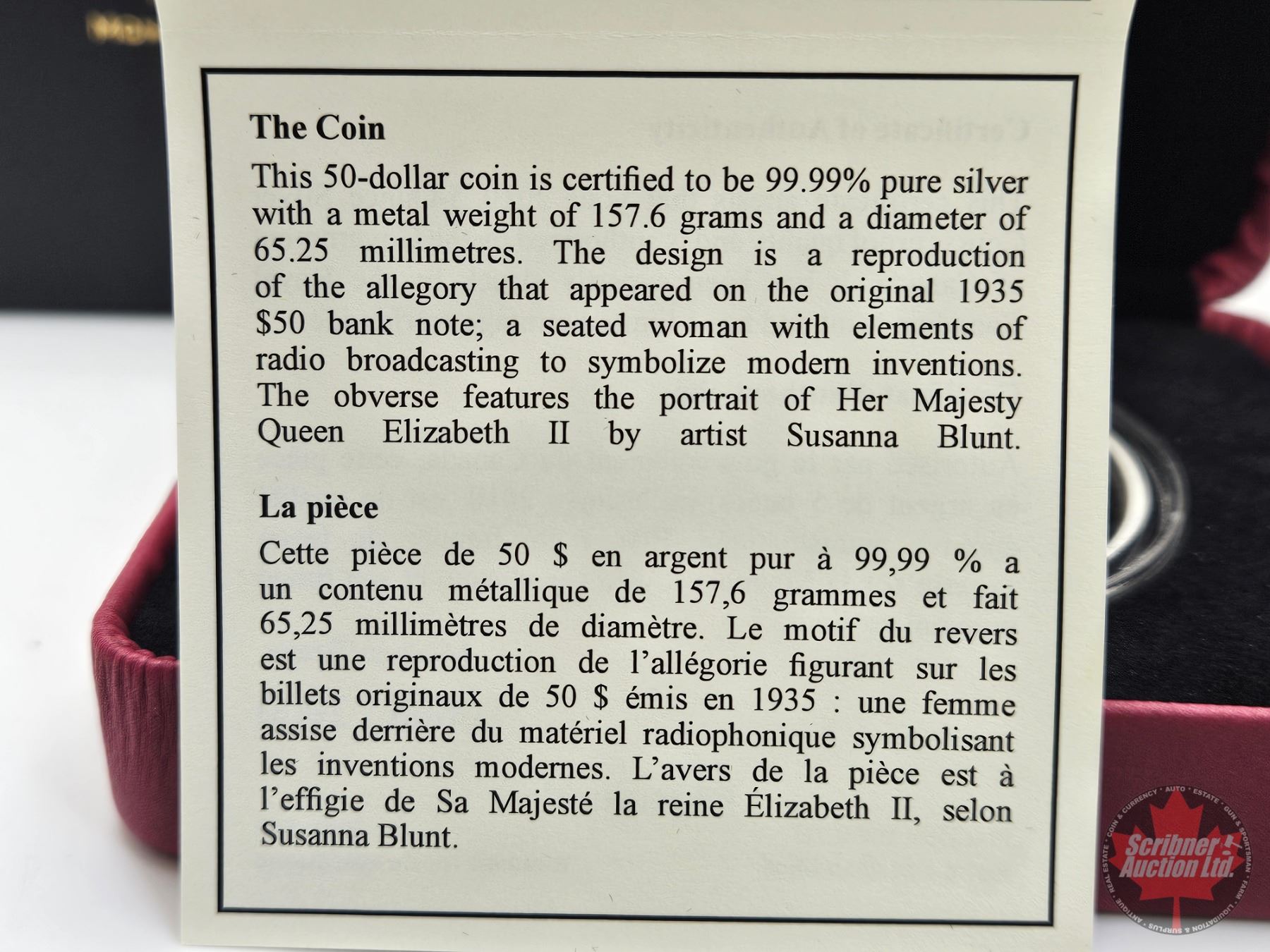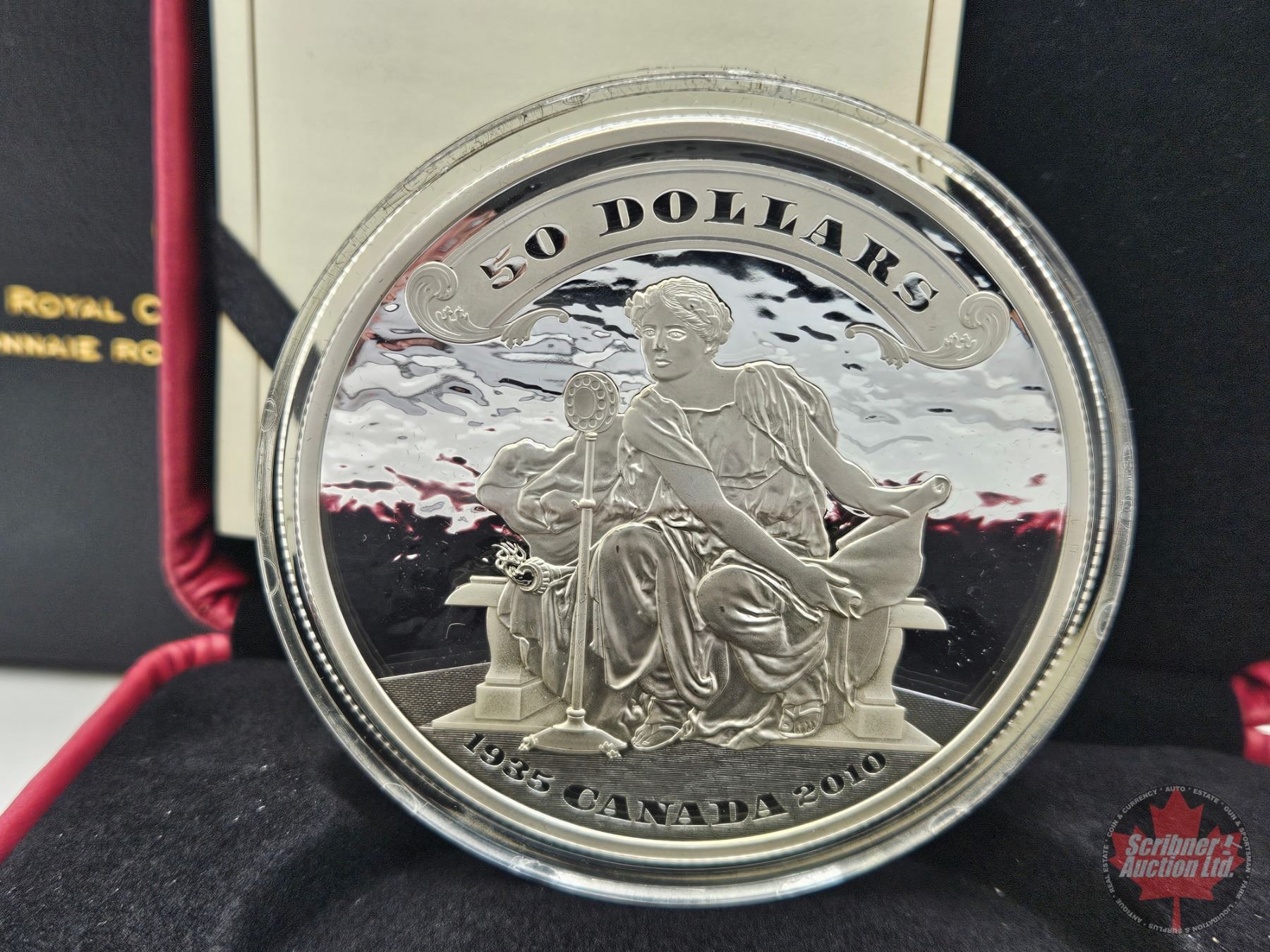 RCM Canada 2010 : $50 Silver Five-Ounce Coin : 75th Anniversary of the First Bank Notes (COA #0608)