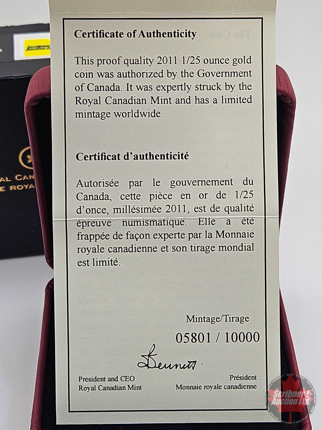 RCM Canada 2011 : 1/25 Ounce 50-Cent Fine Gold Coin (COA #05801)
