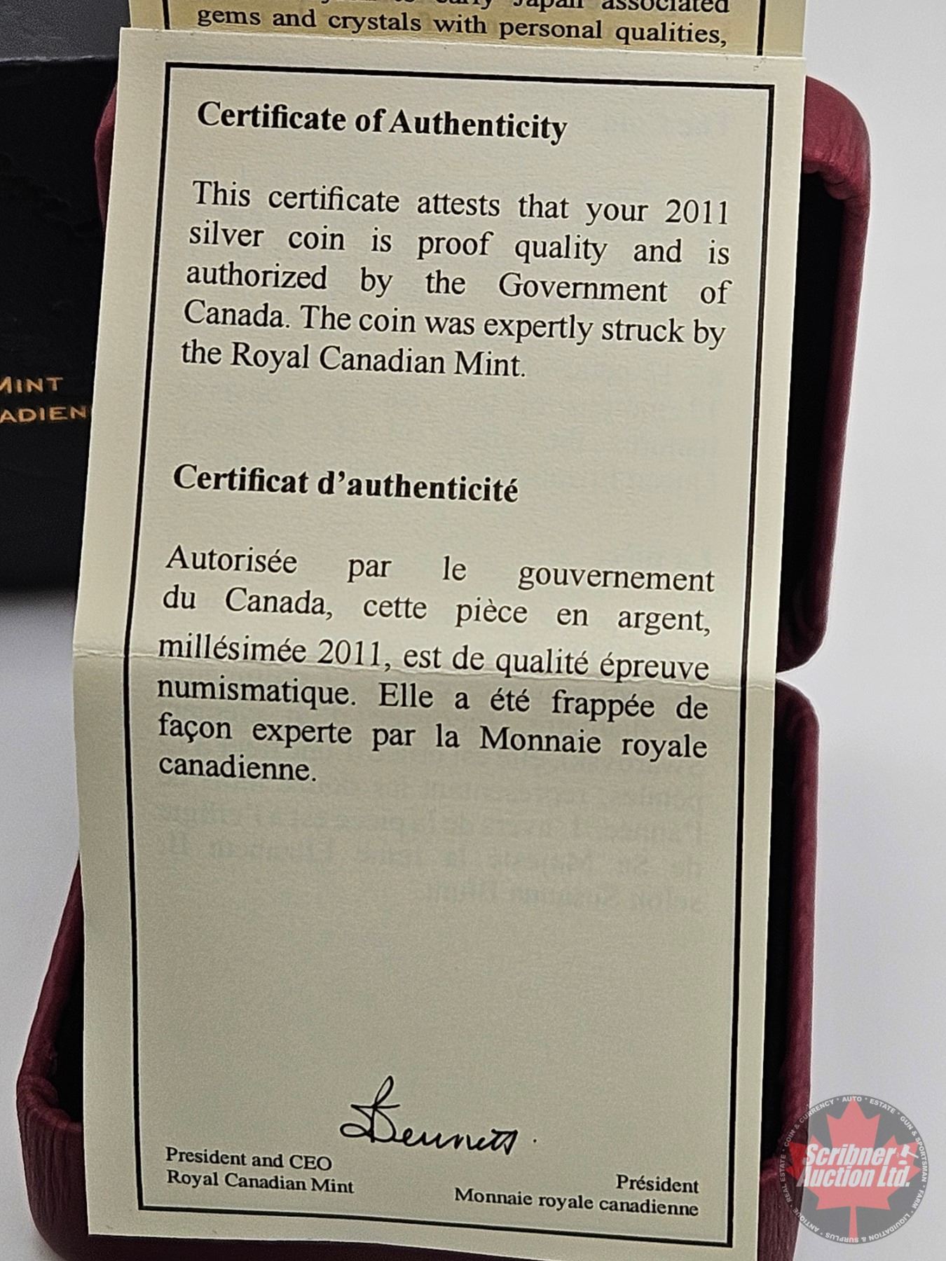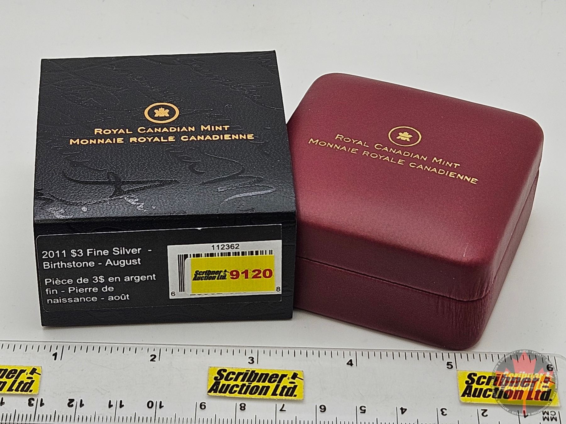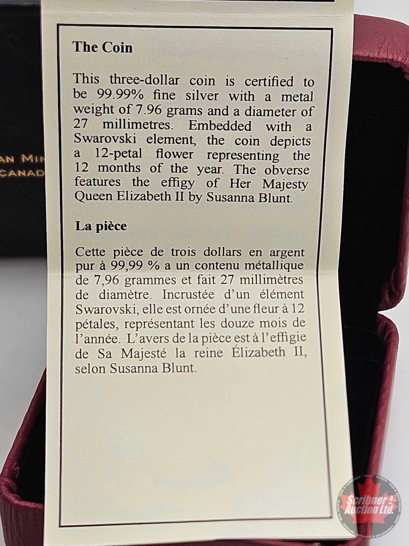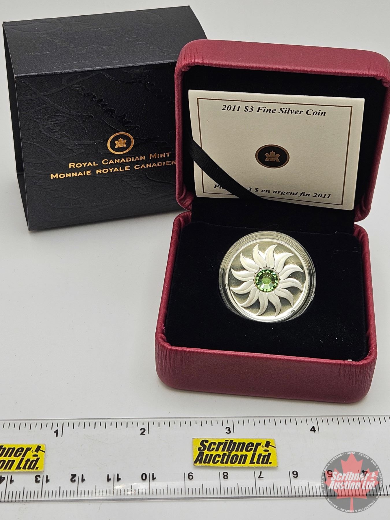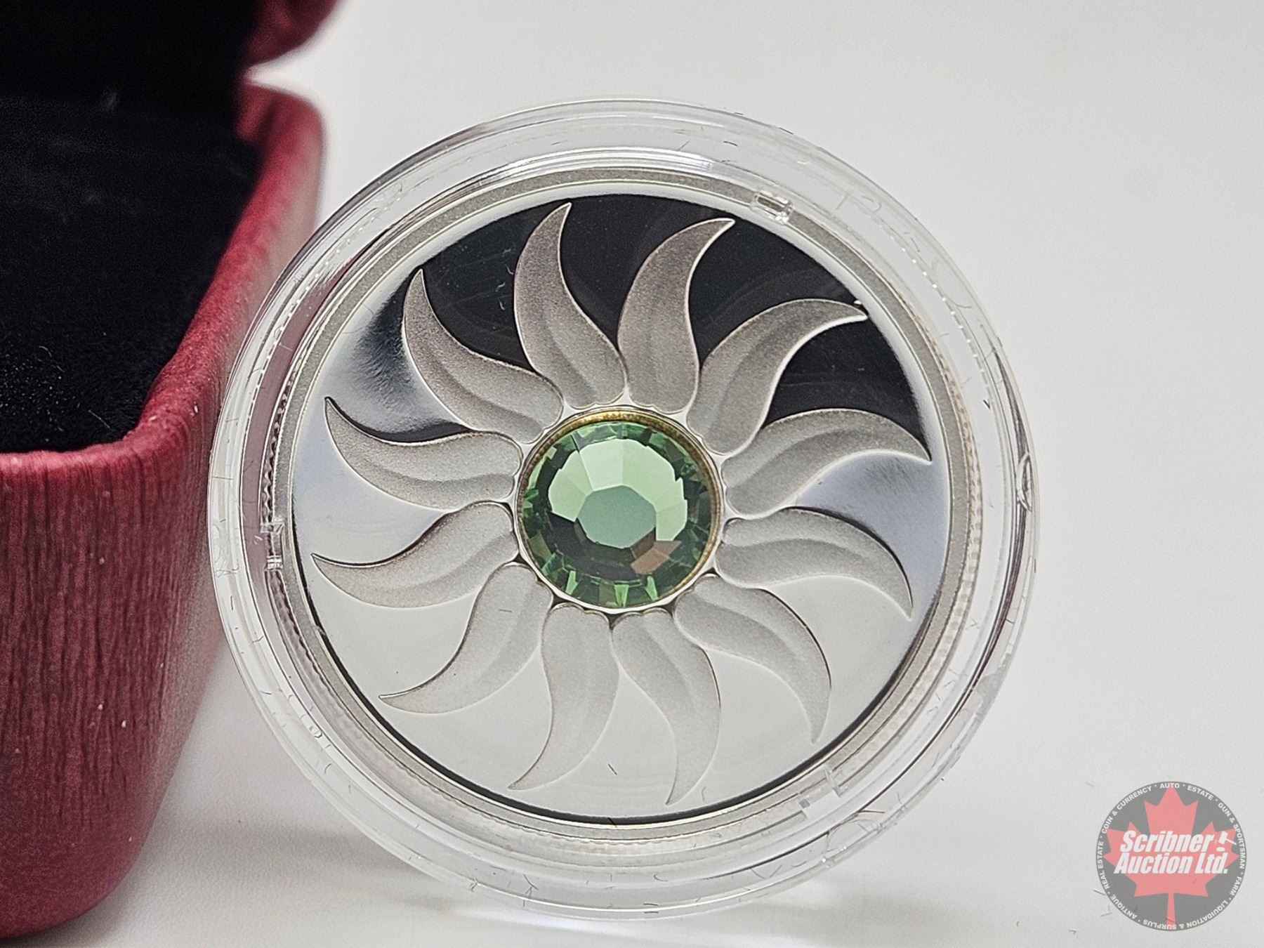 RCM Canada 2011 $3 Fine Silver Coin : Birthstone : August (COA : 99.99%) Swarovski Element