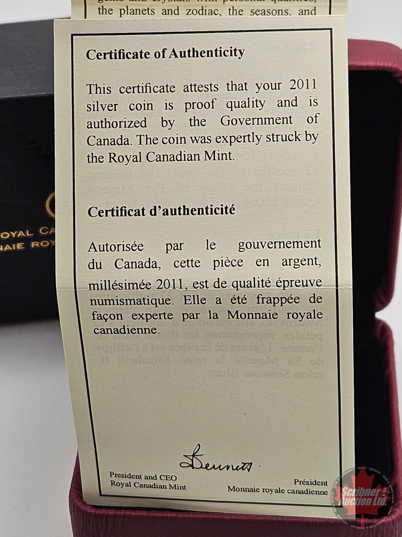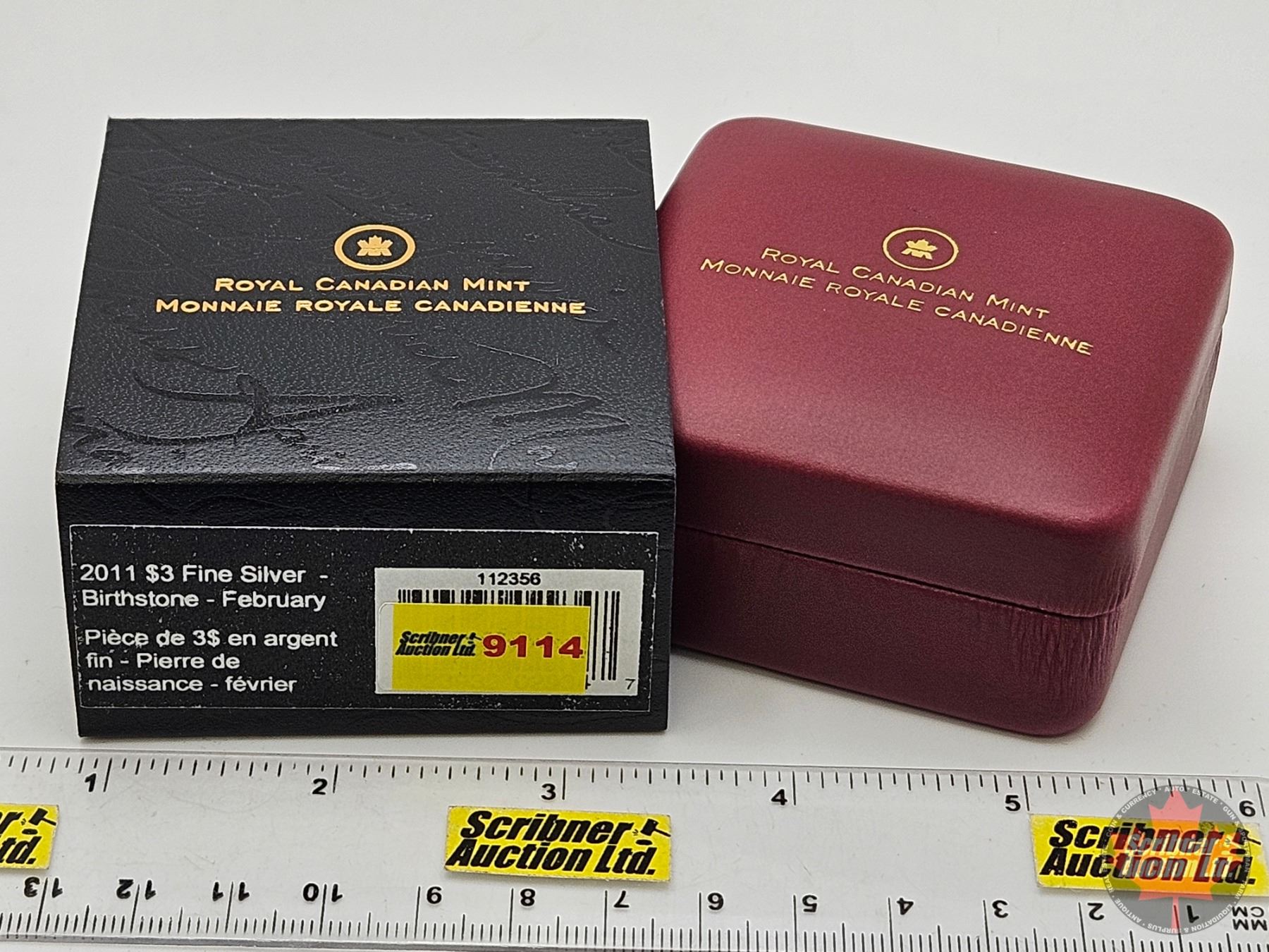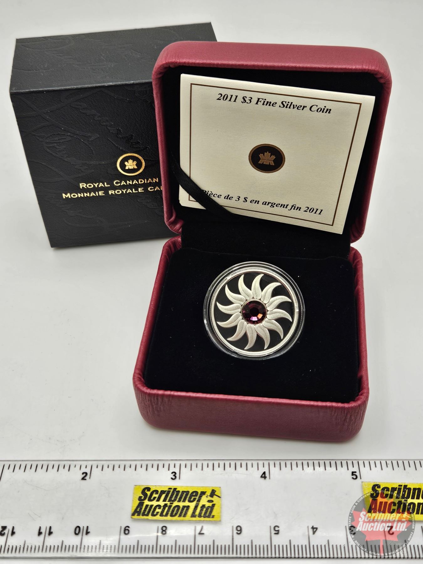 RCM Canada 2011 $3 Fine Silver Coin : Birthstone : February (COA : 99.99%) Swarovski Element