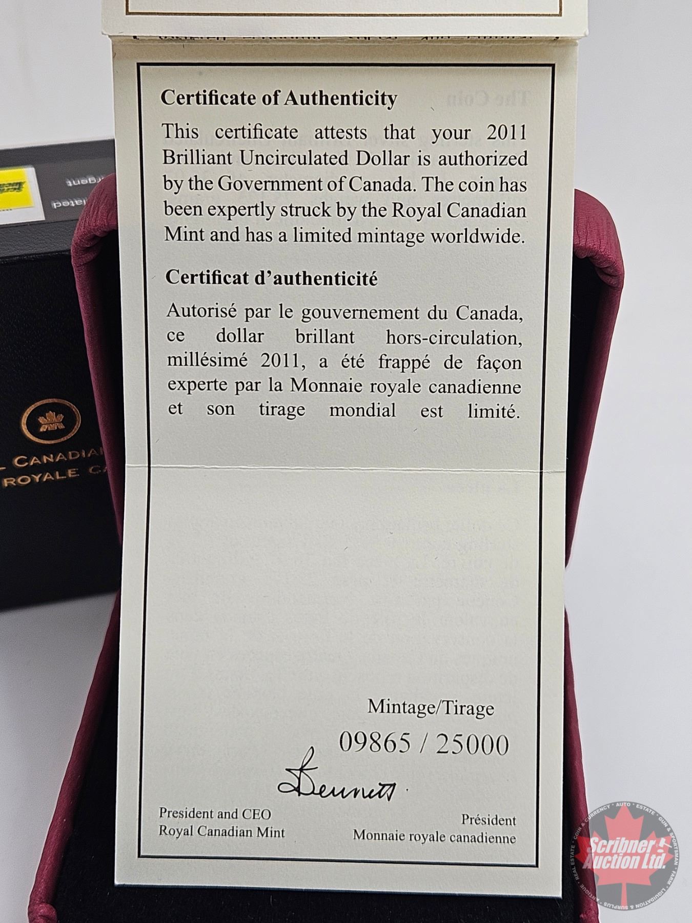 RCM Canada 2011 Brilliant Uncirculated Dollar : Conserving Canada's Natural Treasures : One Hundred Years of Parks Canada (COA #09865) (92.5%)