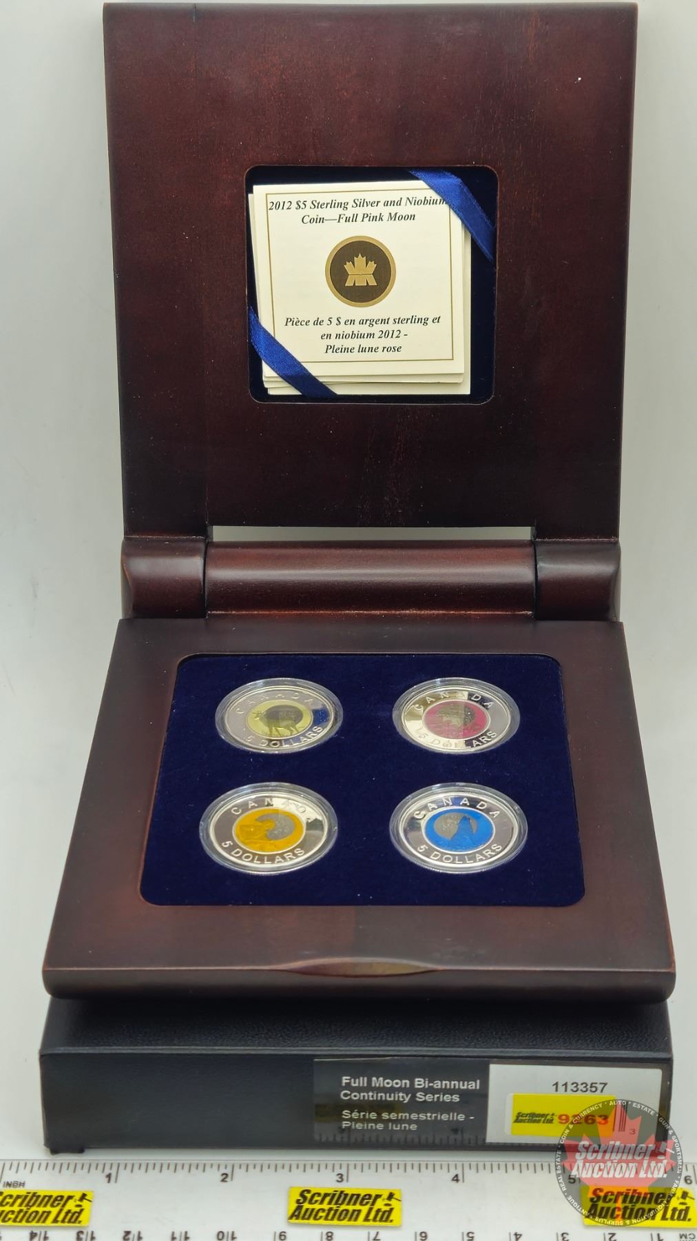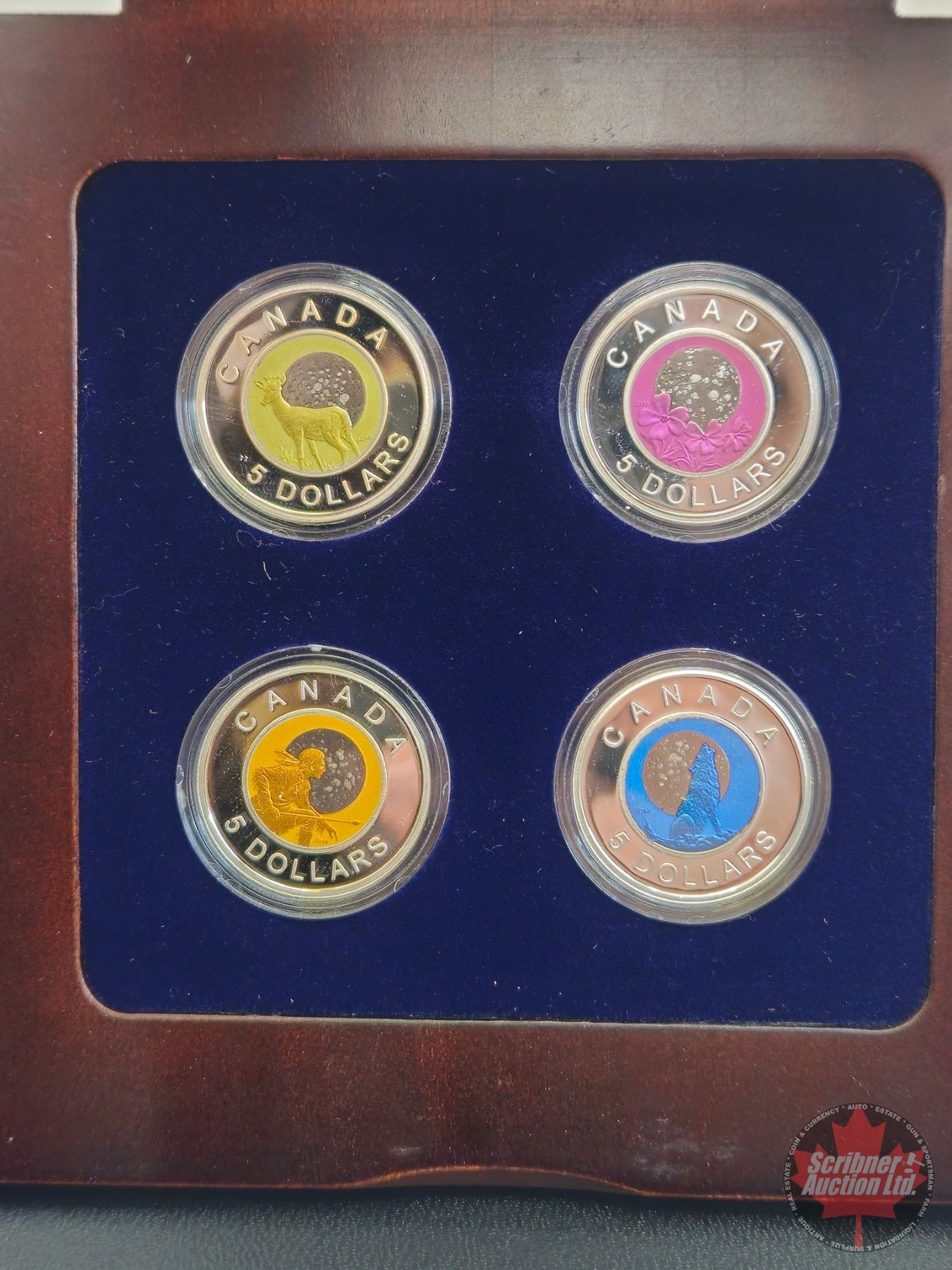 RCM Canada 2011 : Full Moon Bi-Annual Continuity Series : $5 Sterling Silver Niobium Coin : Four-Coin Set : Wood Display Case