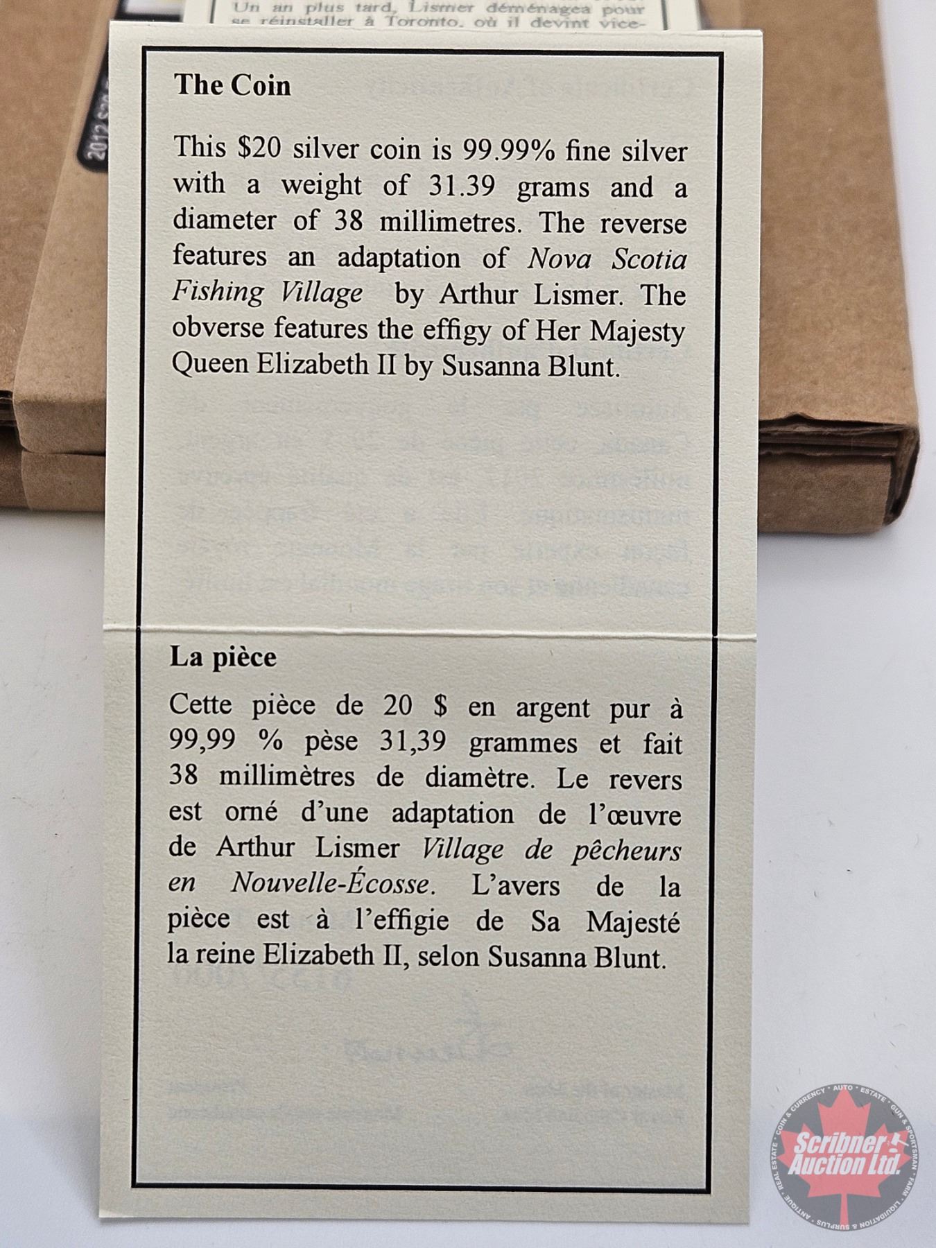 RCM Canada 2012 : $20 Fine Silver Coin : Arthur Lismer : Nova Scotia Fishing Village (COA #6155)