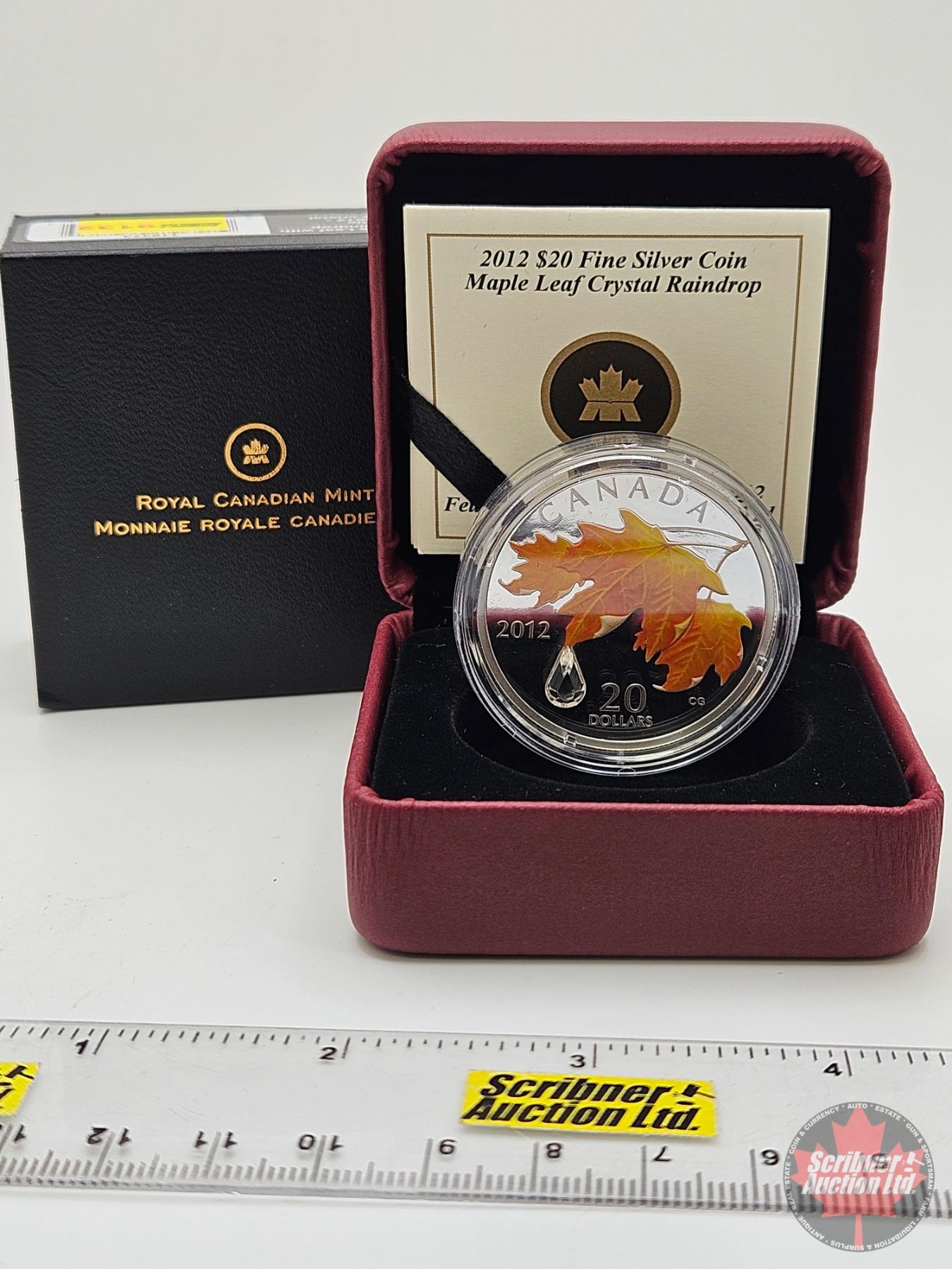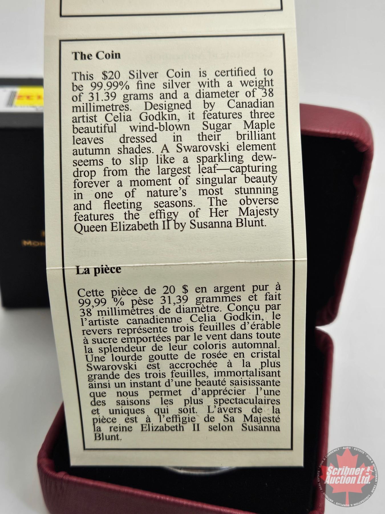 RCM Canada 2012 : $20 Fine Silver Coin : Maple Leaf Crystal Raindrop (COA #09025) Swarovski Element