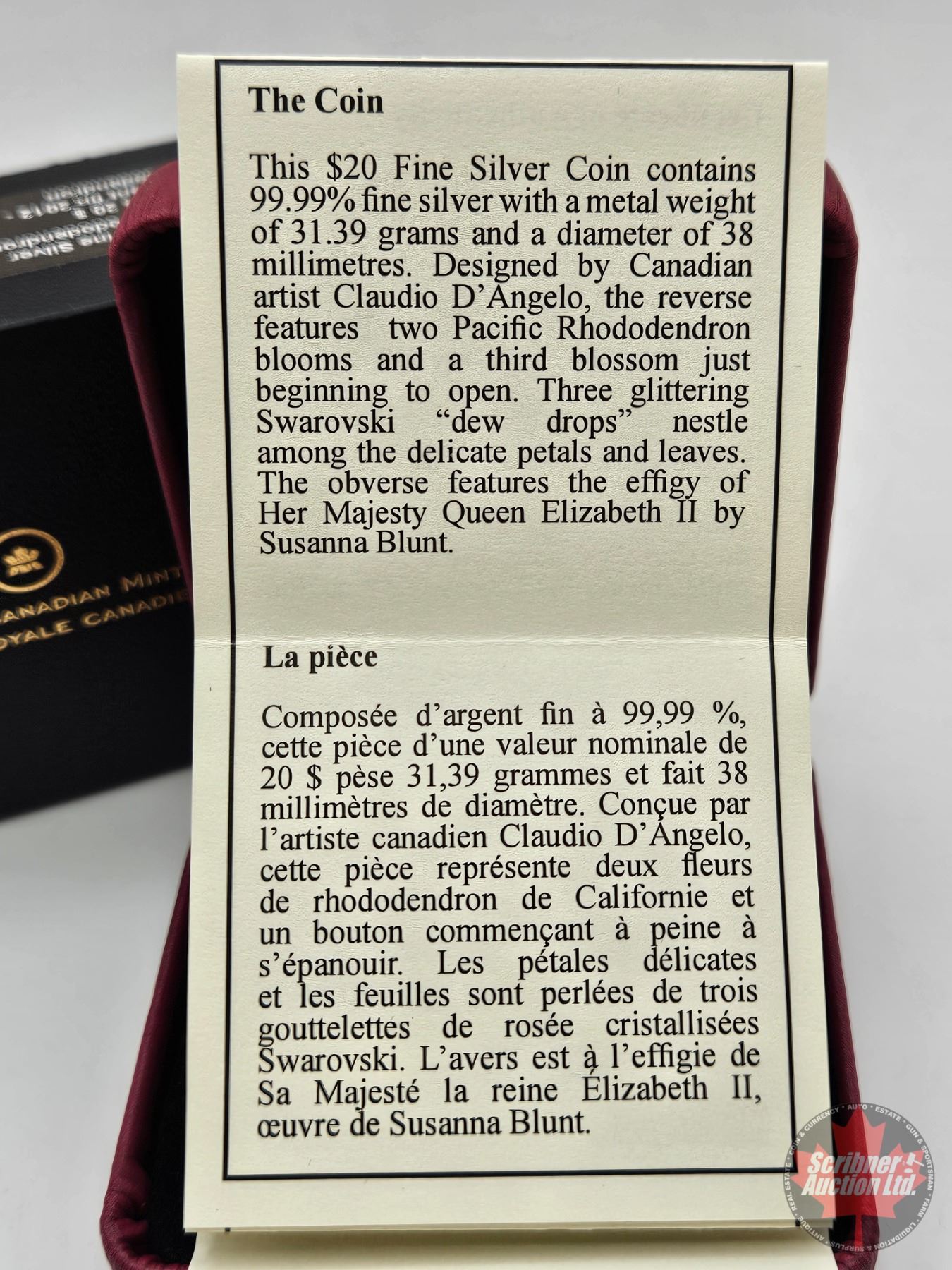 RCM Canada 2012 : $20 Fine Silver Coin : Rhododendron (COA #07261) Swarovski Elements