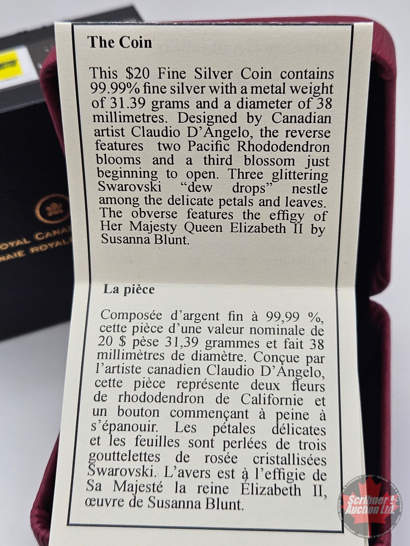 RCM Canada 2012 : $20 Fine Silver Coin : Rhododendron (COA #07307) (Swarovski Elements)