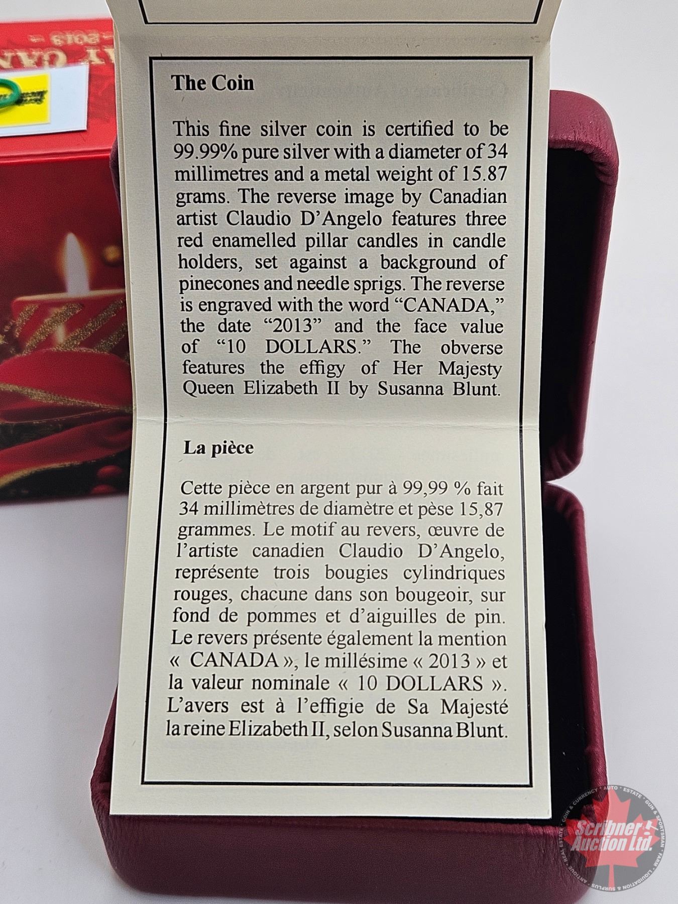 RCM Canada 2013 : $10 Fine Silver Coin : Holiday Candles : The Triumph of Light (COA #08514)