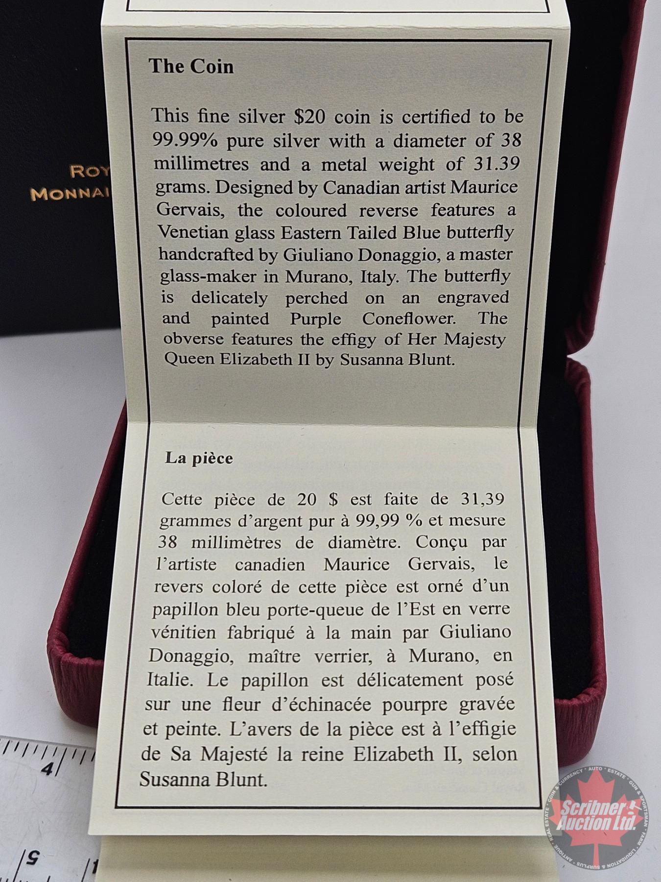 RCM Canada 2013 : $20 Fine Silver Coin : Purple Coneflower and Eastern Tailed Blue (COA #06603)