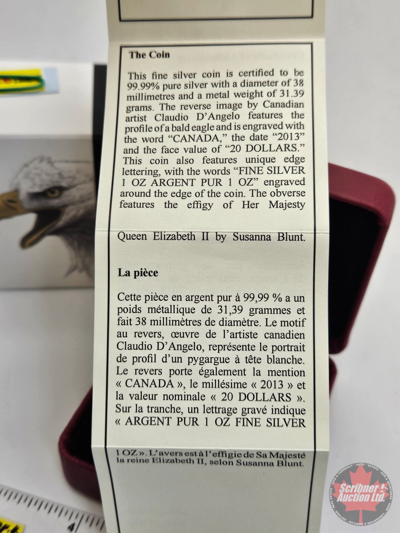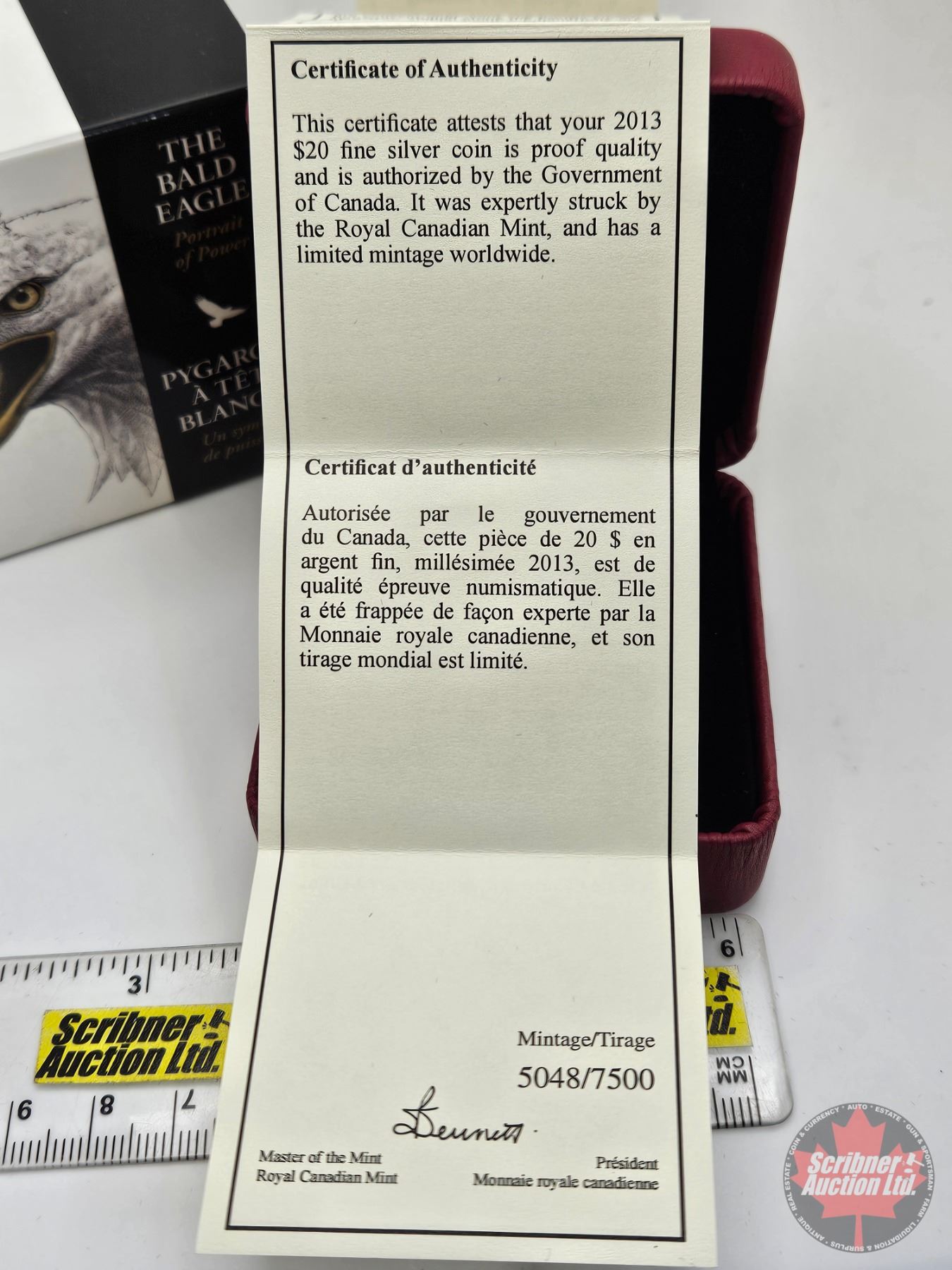 RCM Canada 2013 : $20 Fine Silver Coin : The Bald Eagle ~ Portrait of Power (COA #5048)