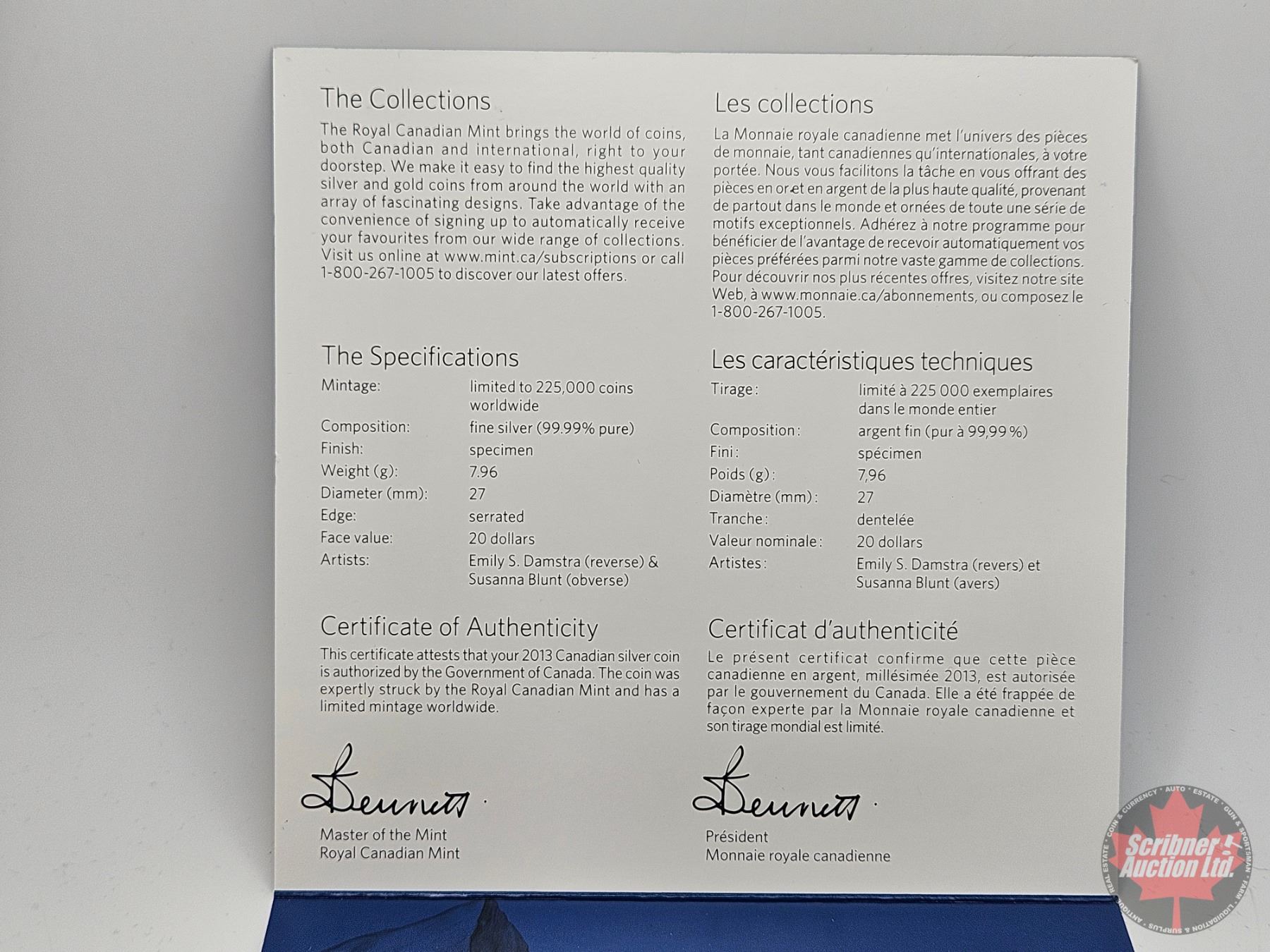 Firearm, Coin & Currency Grades are not the opinion of Scribner Auction Ltd. or any of Scribner Auction Ltd. representatives.