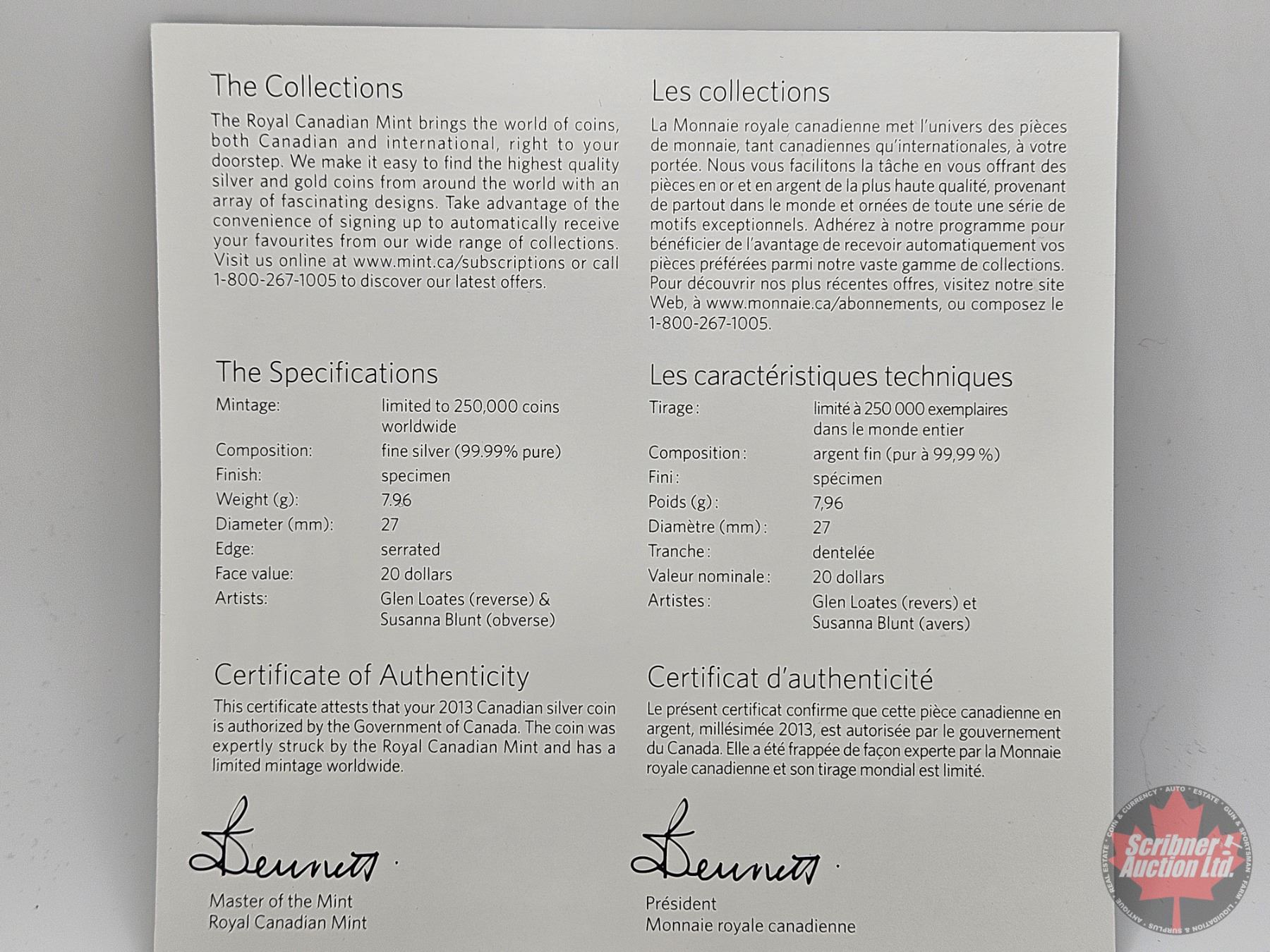 Firearm, Coin & Currency Grades are not the opinion of Scribner Auction Ltd. or any of Scribner Auction Ltd. representatives.