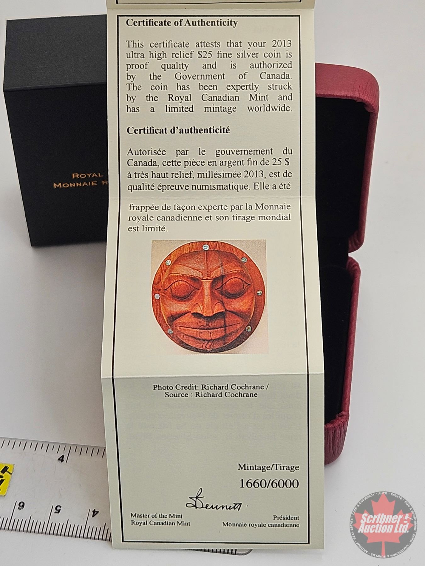 RCM Canada 2013 : $25 Fine Silver Coin : Grandmother Moon Mask : Comforting Glow of the Moon (COA #1660)