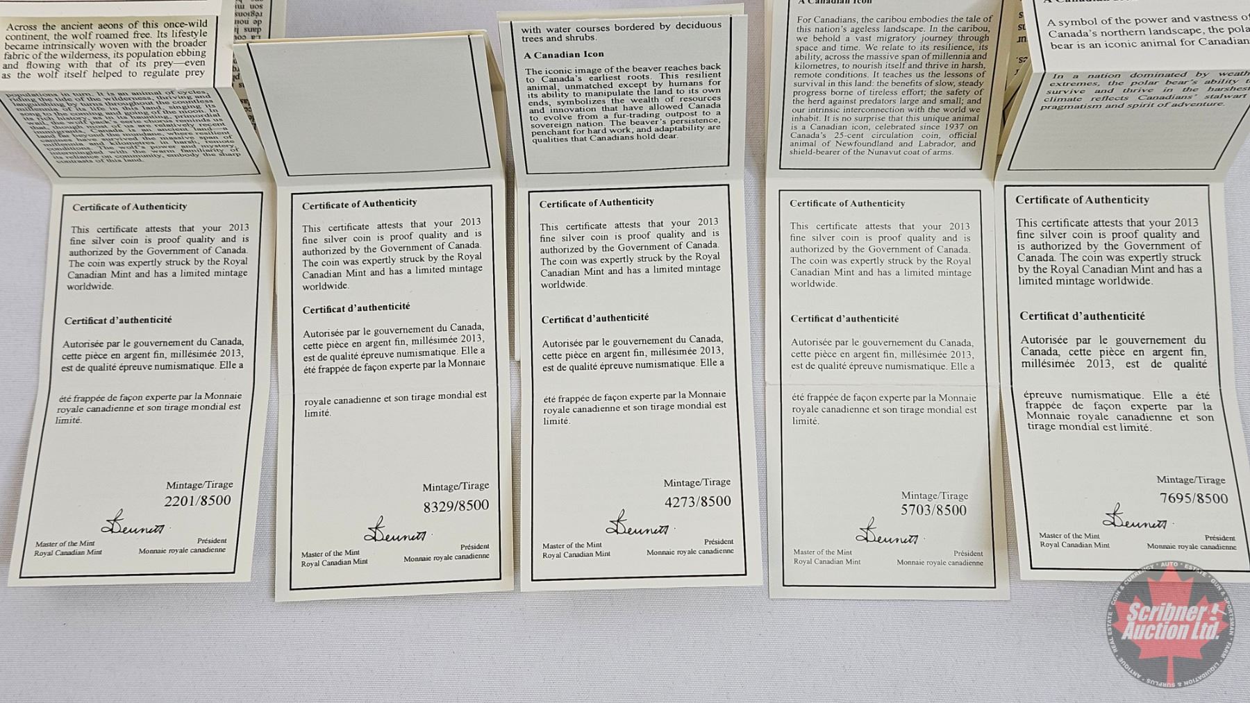 RCM Canada 2013 : $25 O Canada Series : 1 oz Fine Silver 5-Coin Set (COA's) (99.99%)