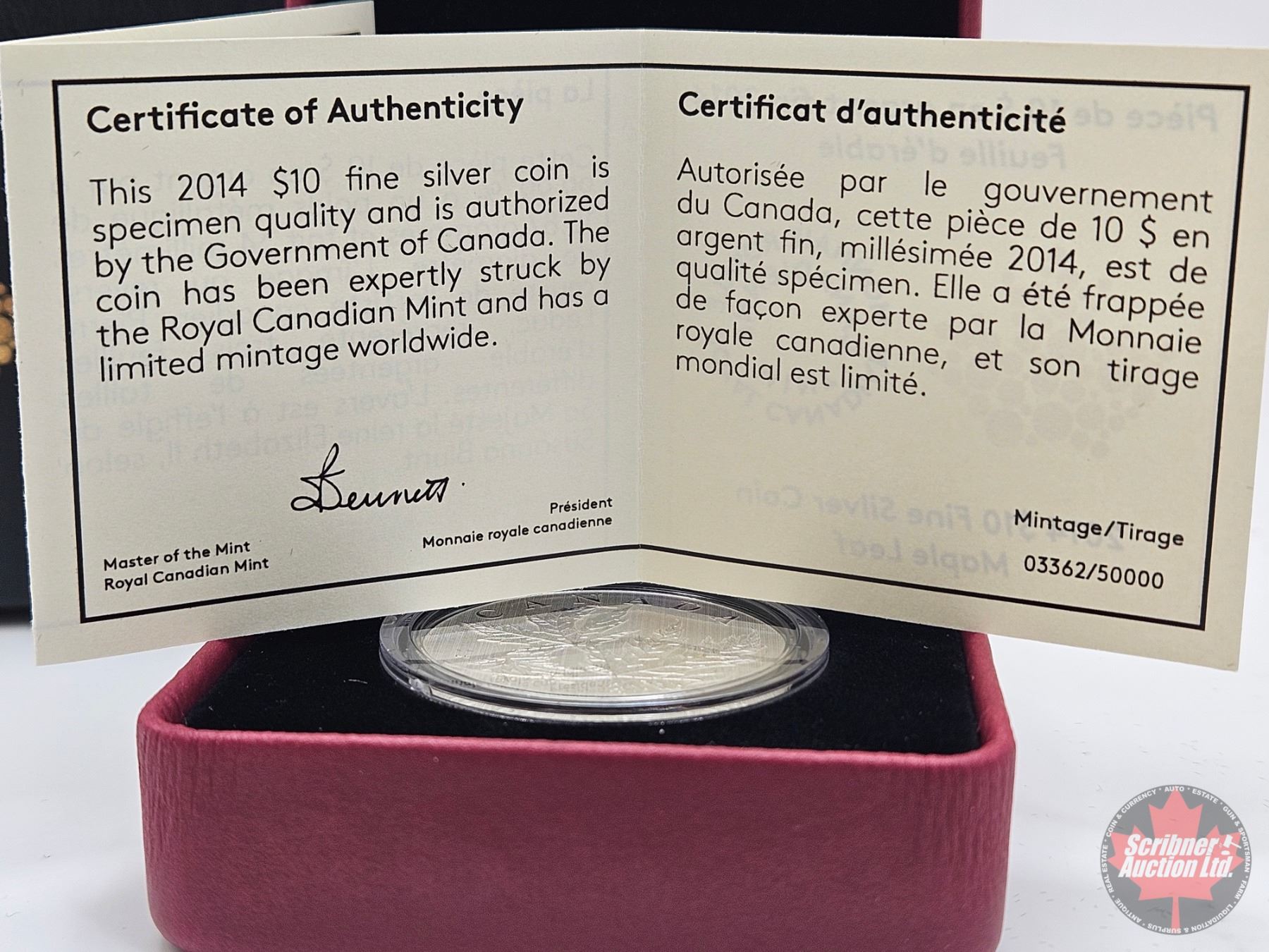 RCM Canada 2014 : $10 Fine Silver Coin : Maple Leaf (COA #03362)