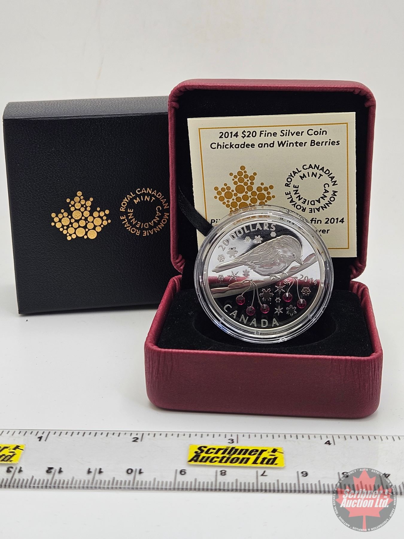 RCM Canada 2014 : $20 Fine Silver Coin : Chickadee and Winter Berries (COA #2332)