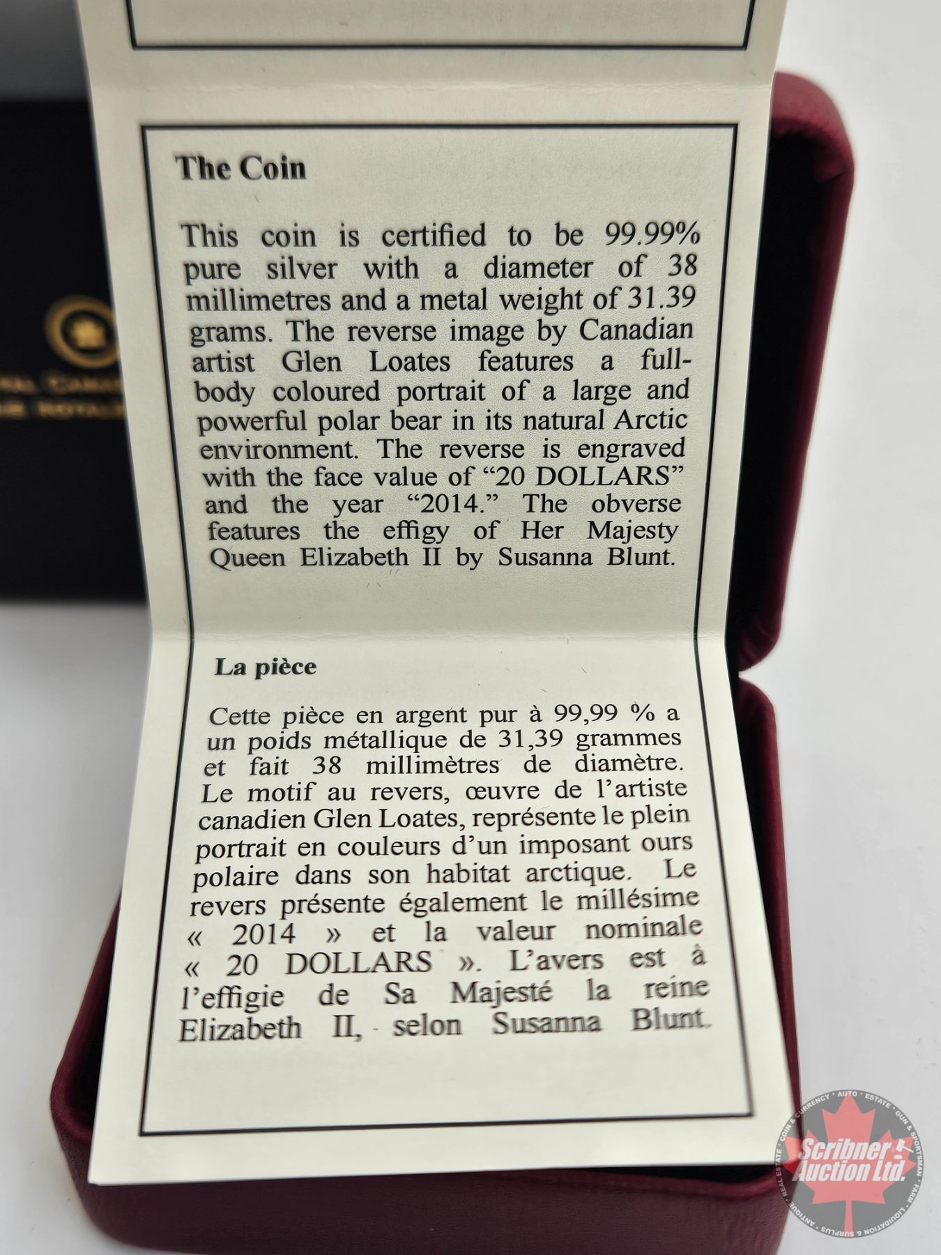 RCM Canada 2014 : $20 Fine Silver Coin : Iconic Polar Bear (COA #3842)