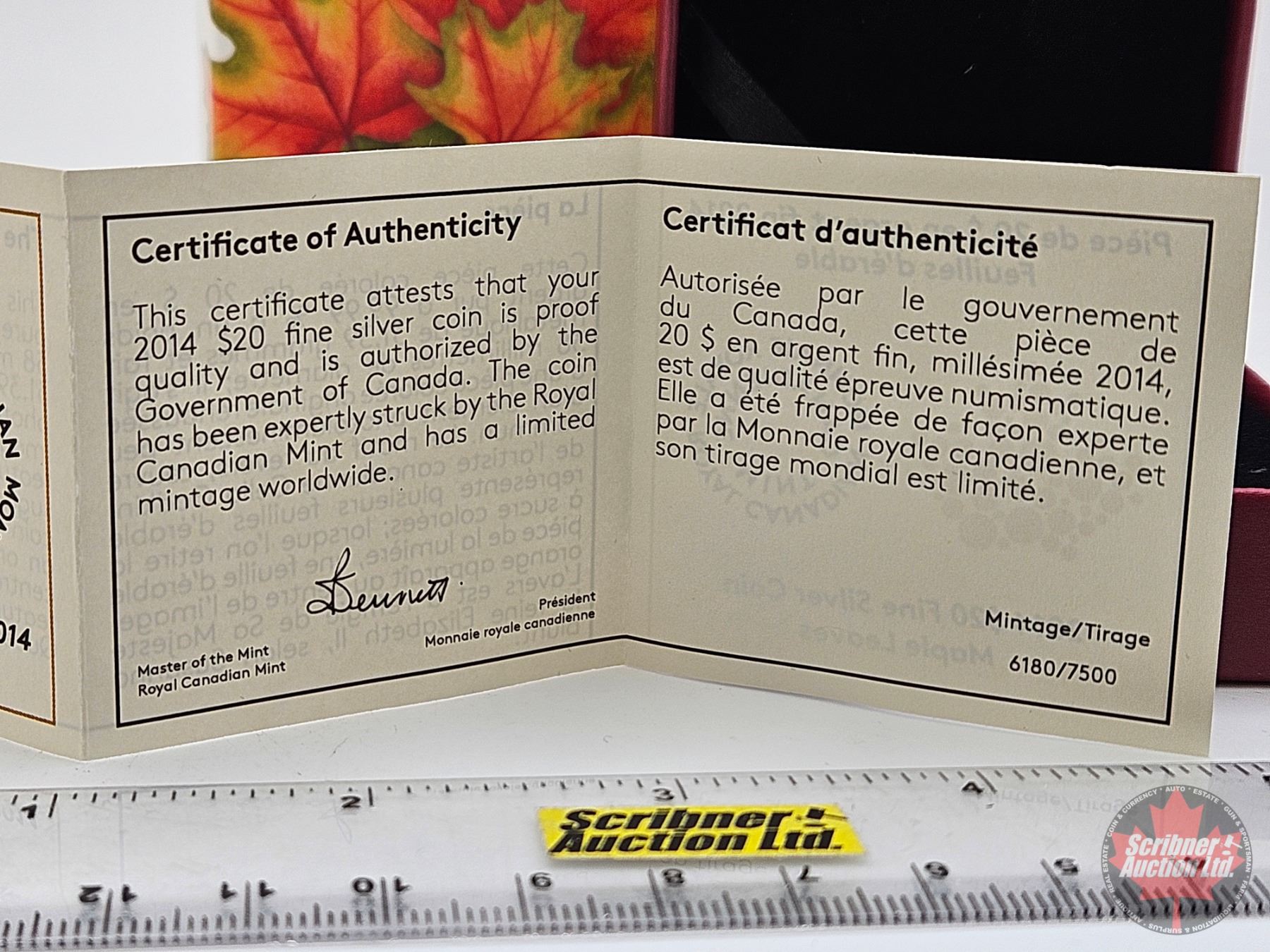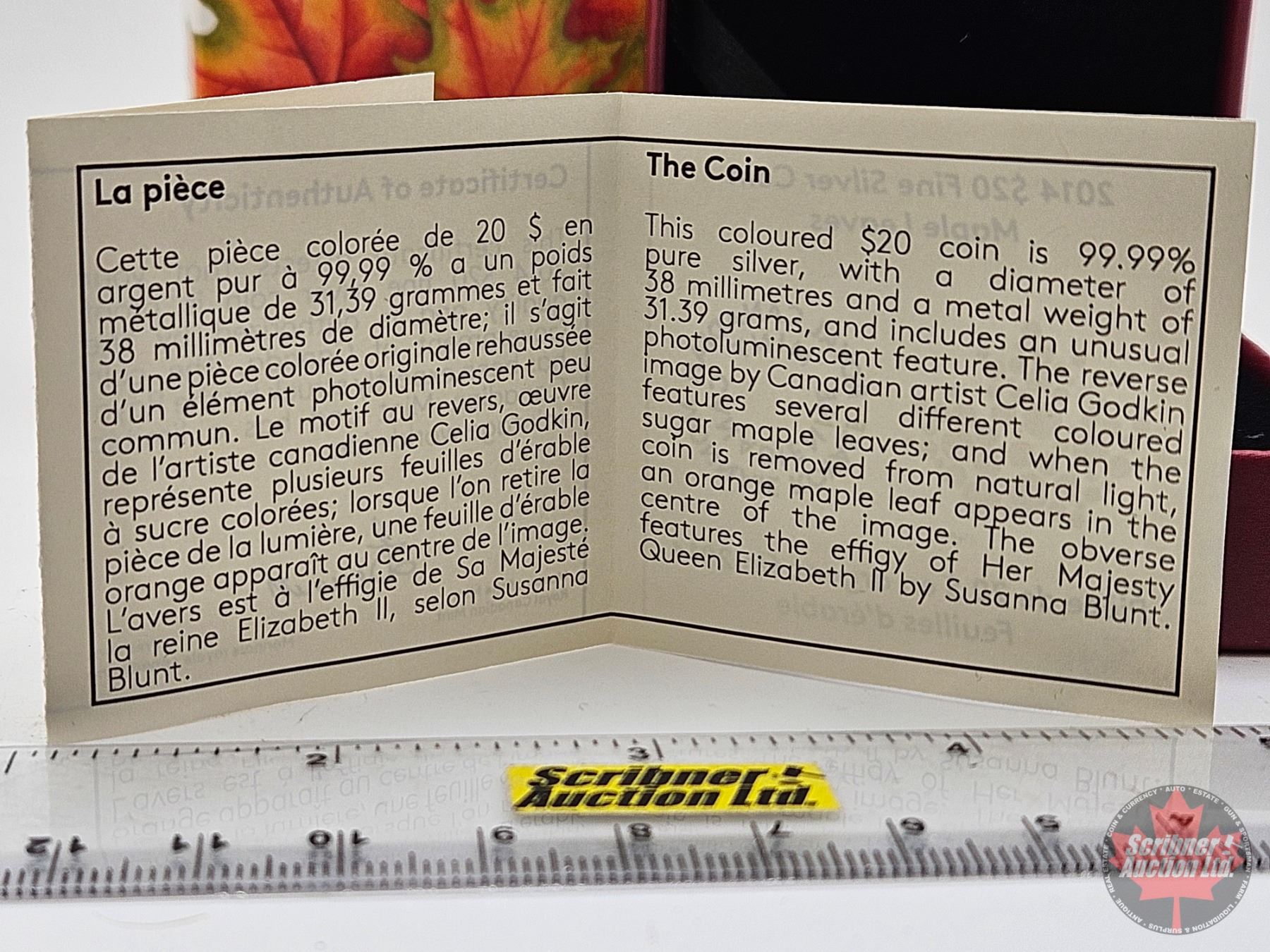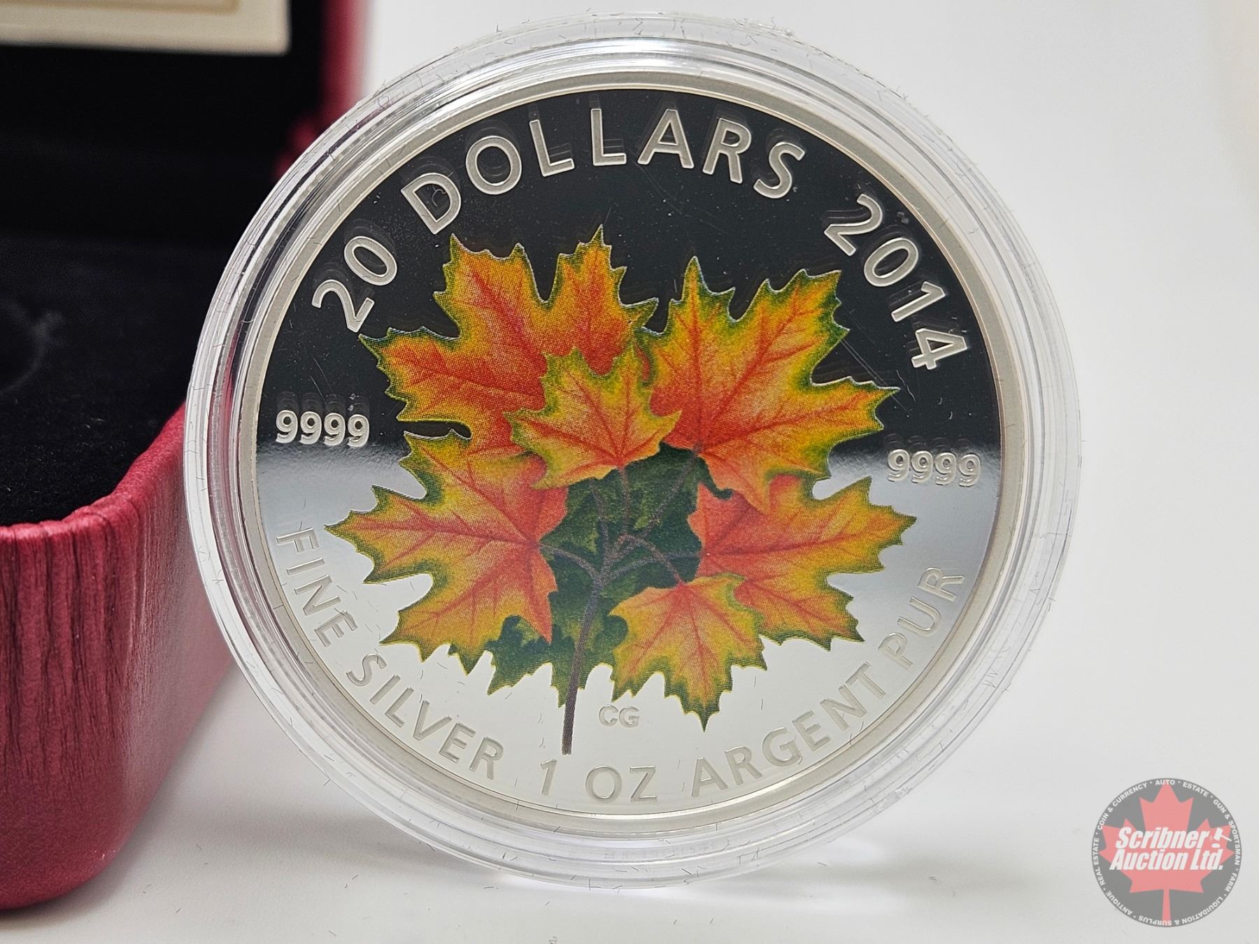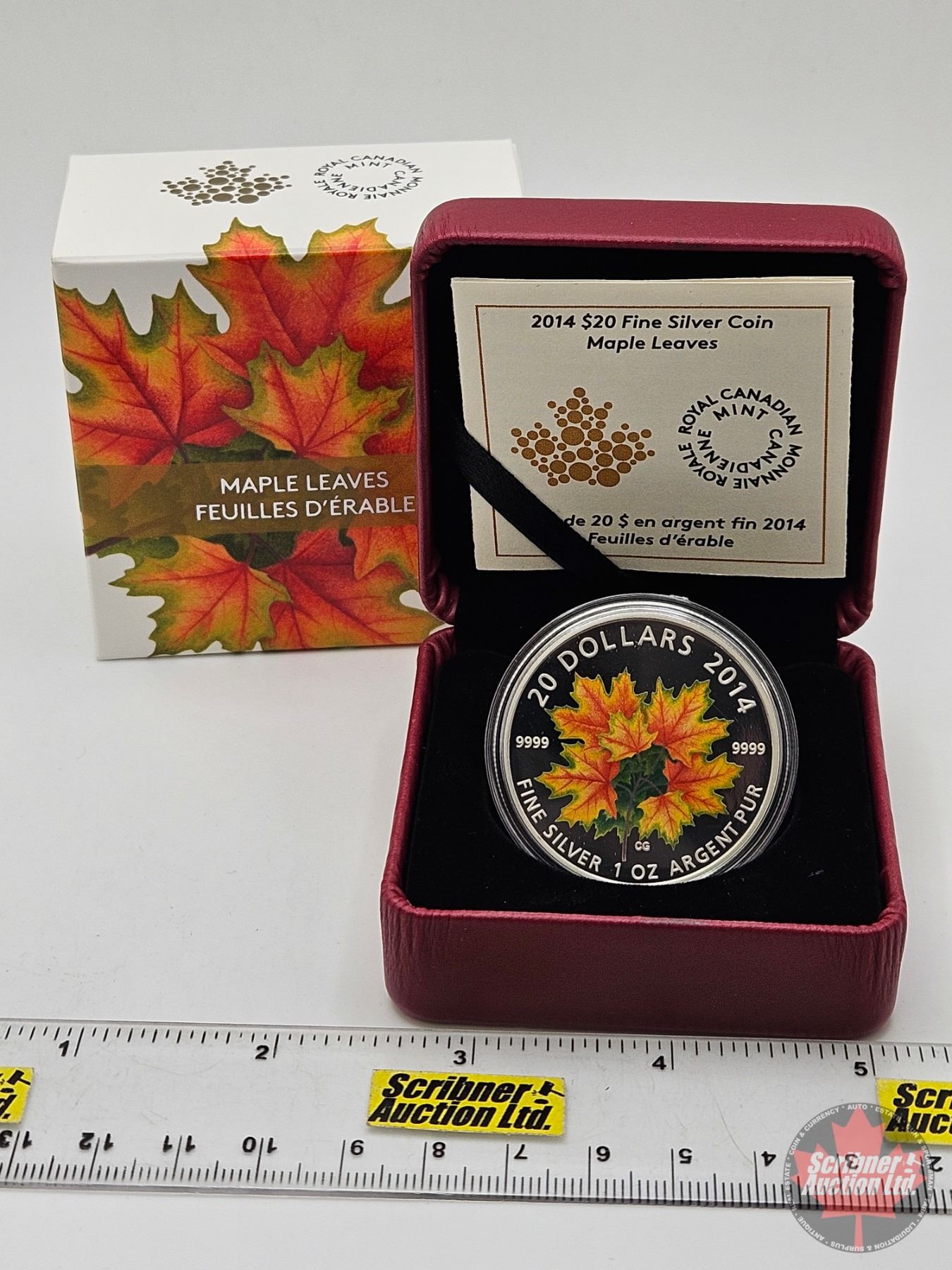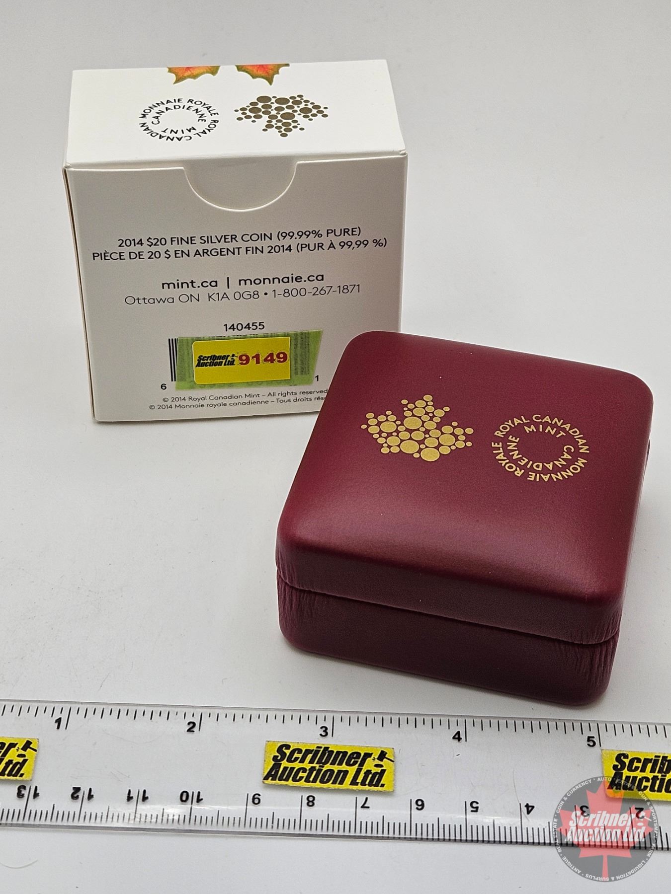 RCM Canada 2014 : $20 Fine Silver Coin : Maple Leaves (COA #6180)