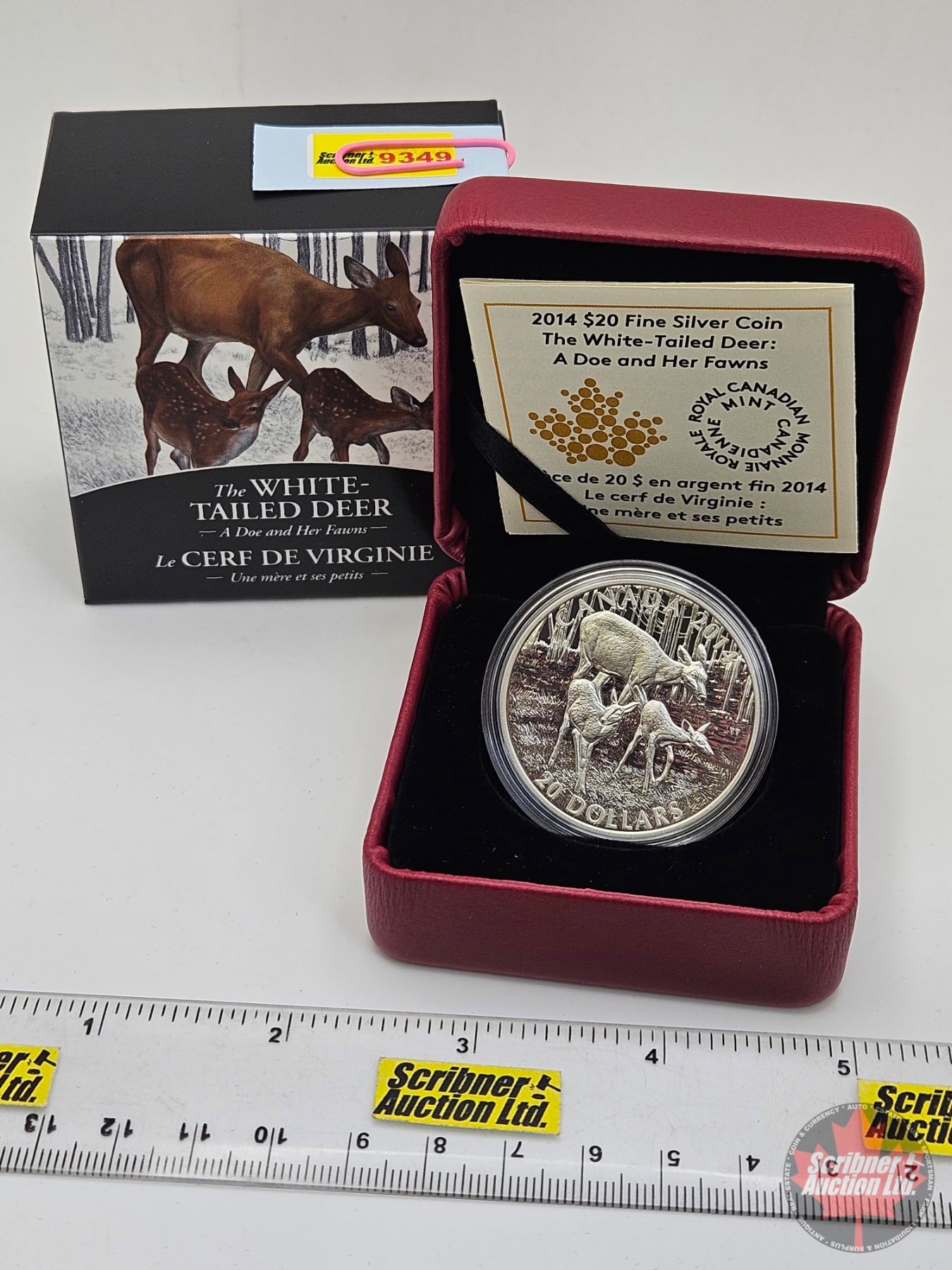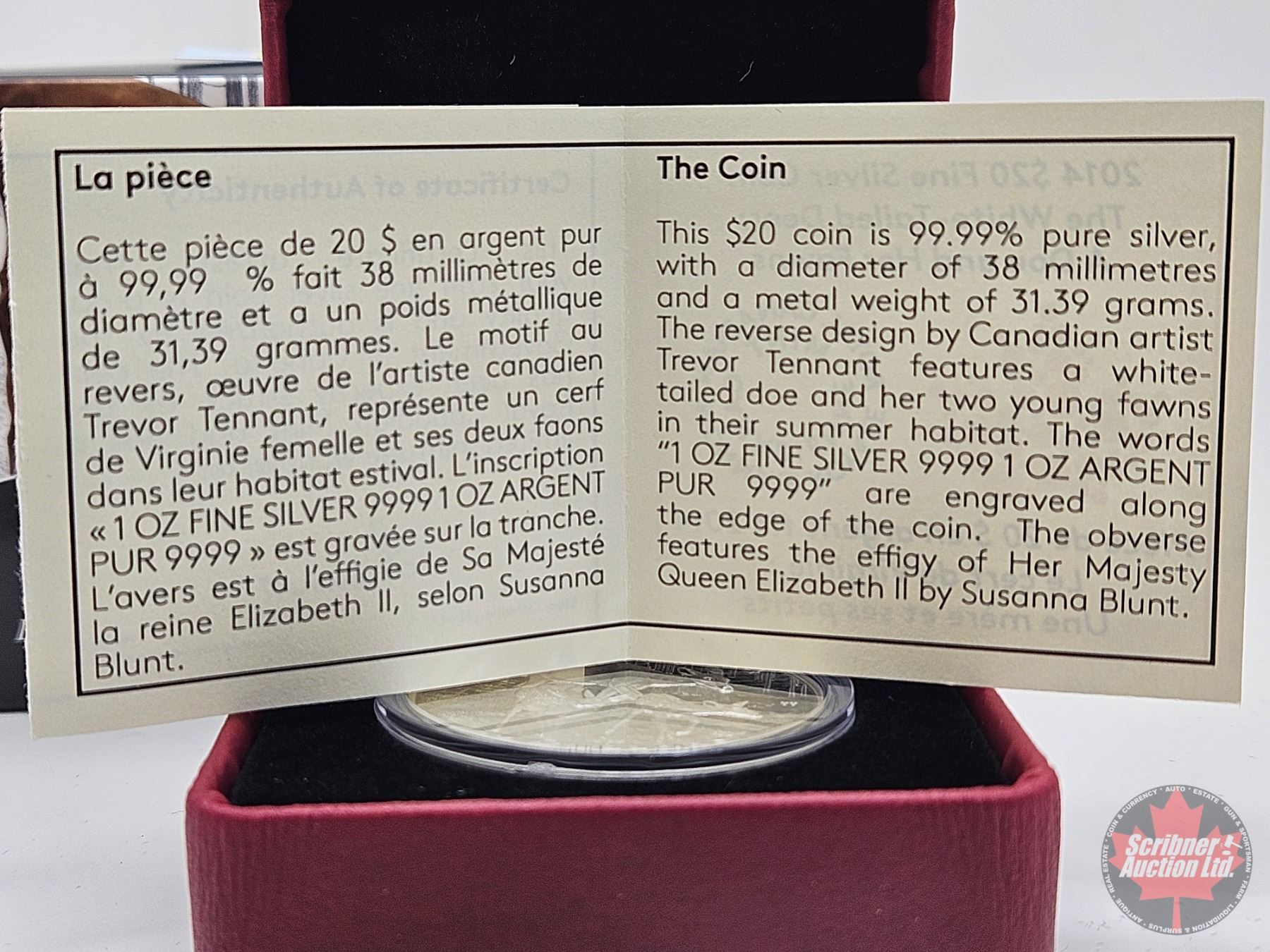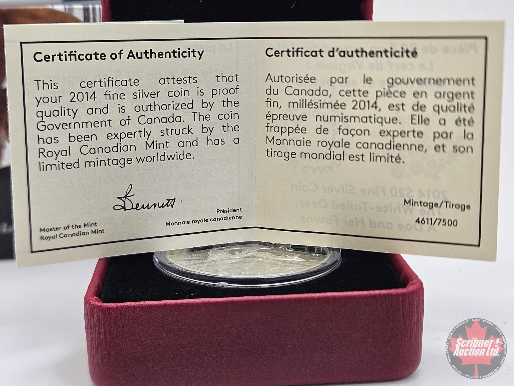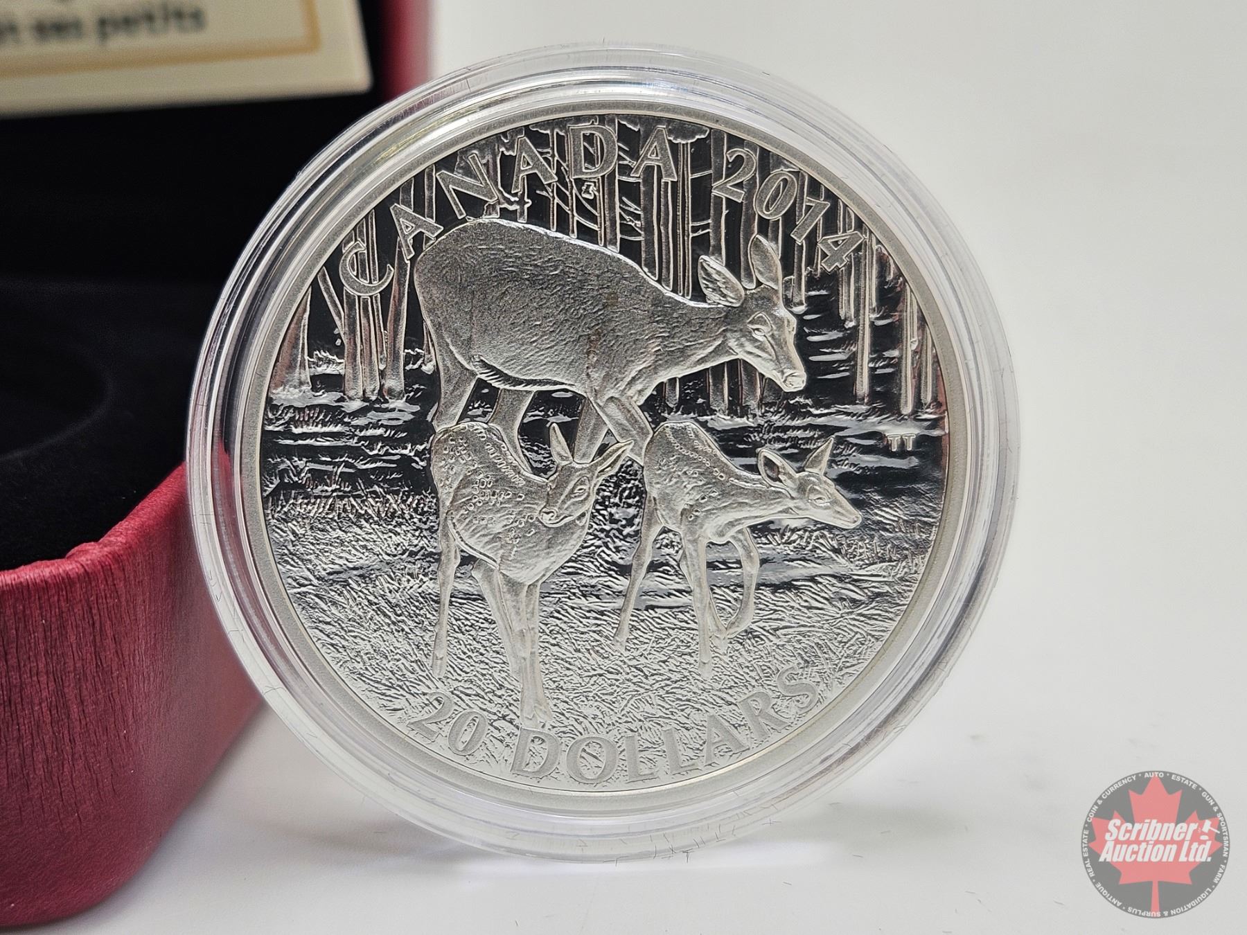 RCM Canada 2014 : $20 Fine Silver Coin : The White-Tailed Deer : A Doe and Her Fawns (COA #4611)