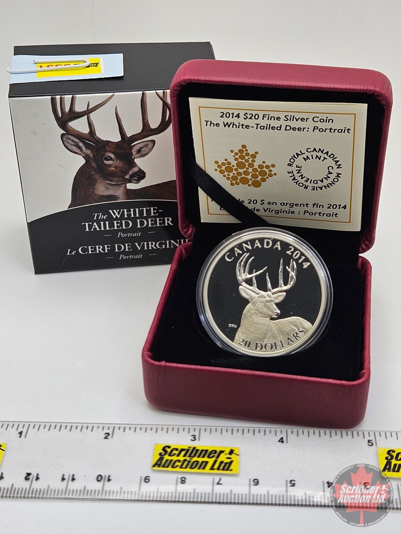 RCM Canada 2014 : $20 Fine Silver Coin : The White-Tailed Deer : Portrait (COA #7365)