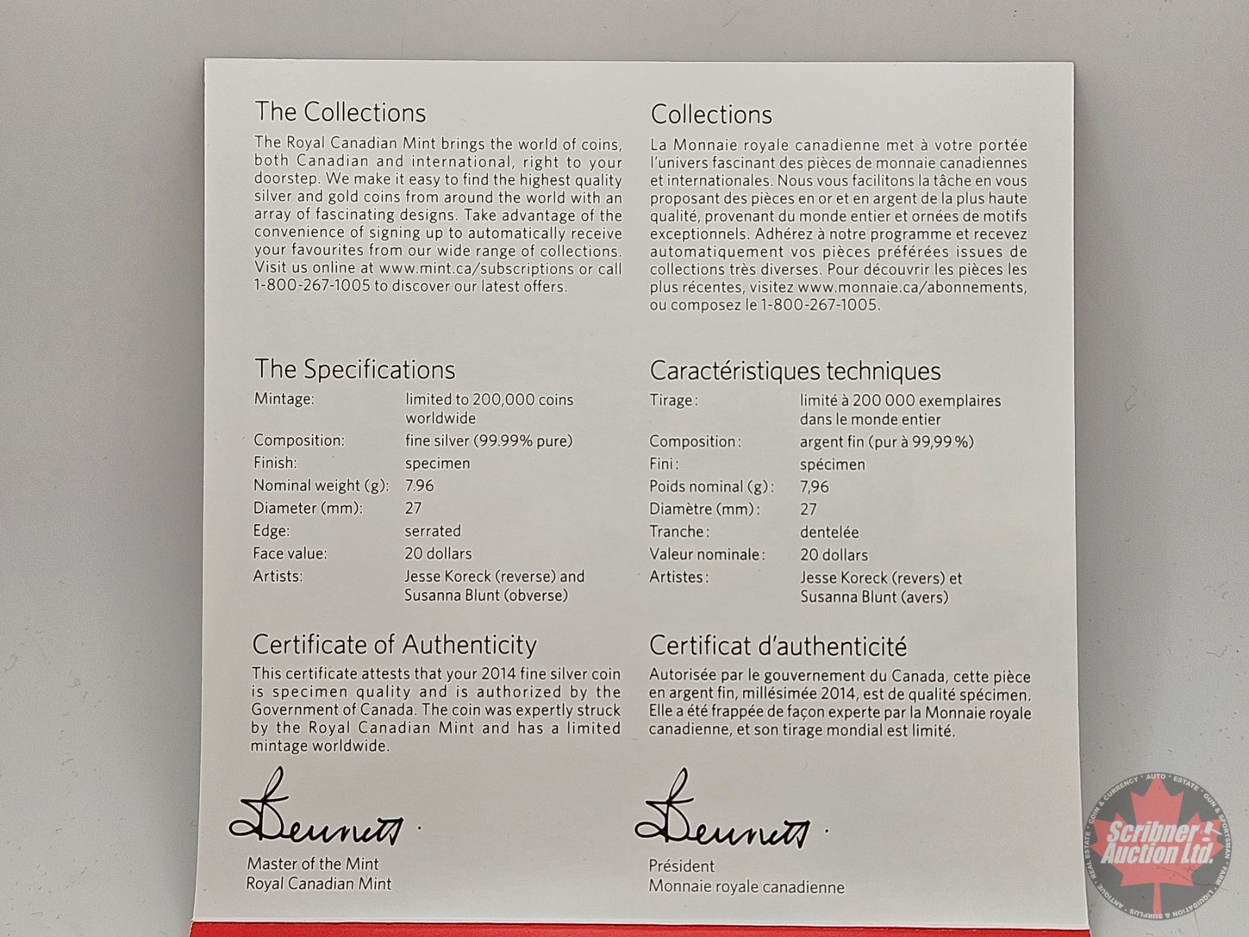Firearm, Coin & Currency Grades are not the opinion of Scribner Auction Ltd. or any of Scribner Auction Ltd. representatives.