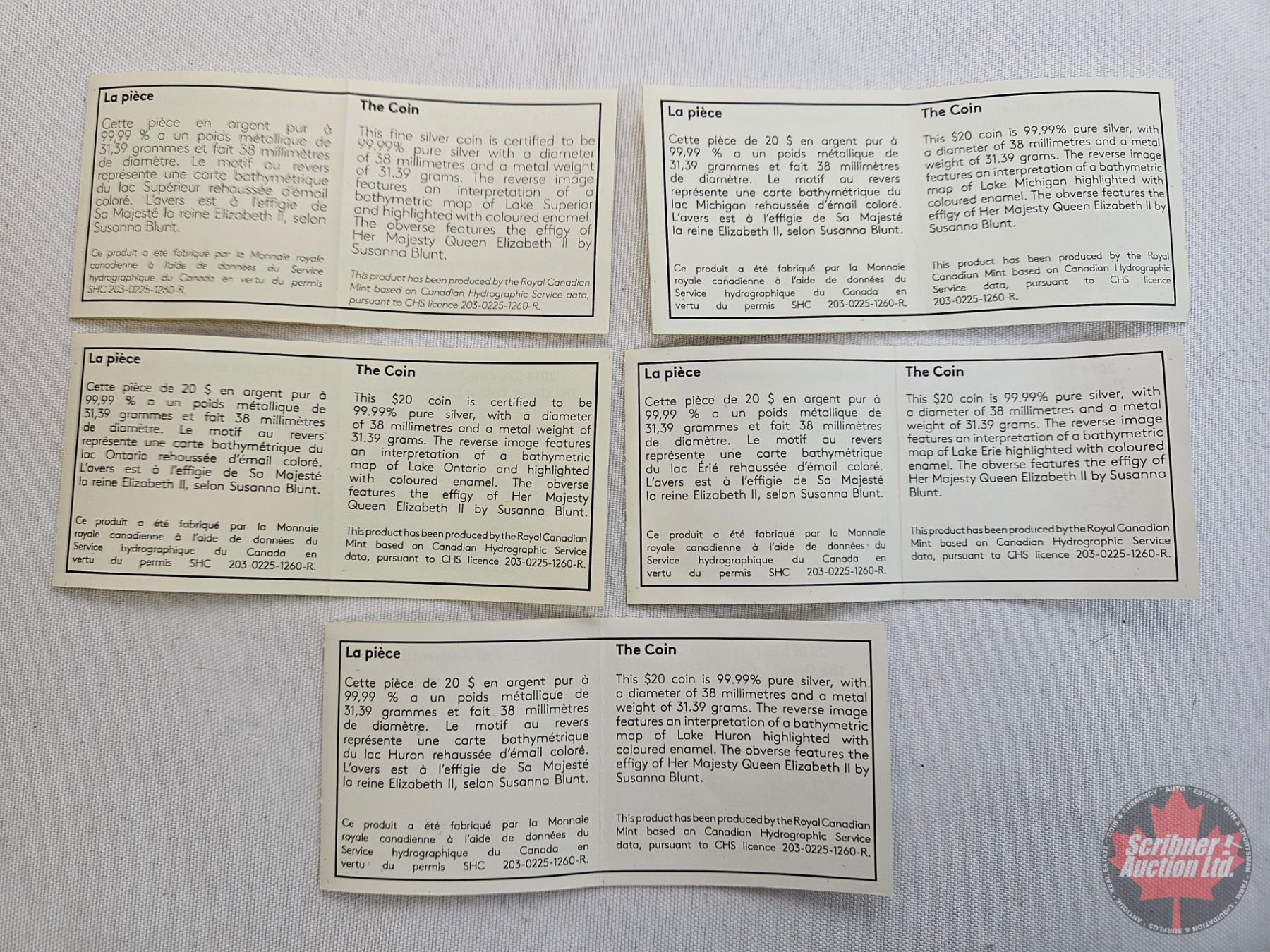 RCM Canada 2014 / 2015 : The Great Lakes : $20 Fine Silver : Five-Coin Set