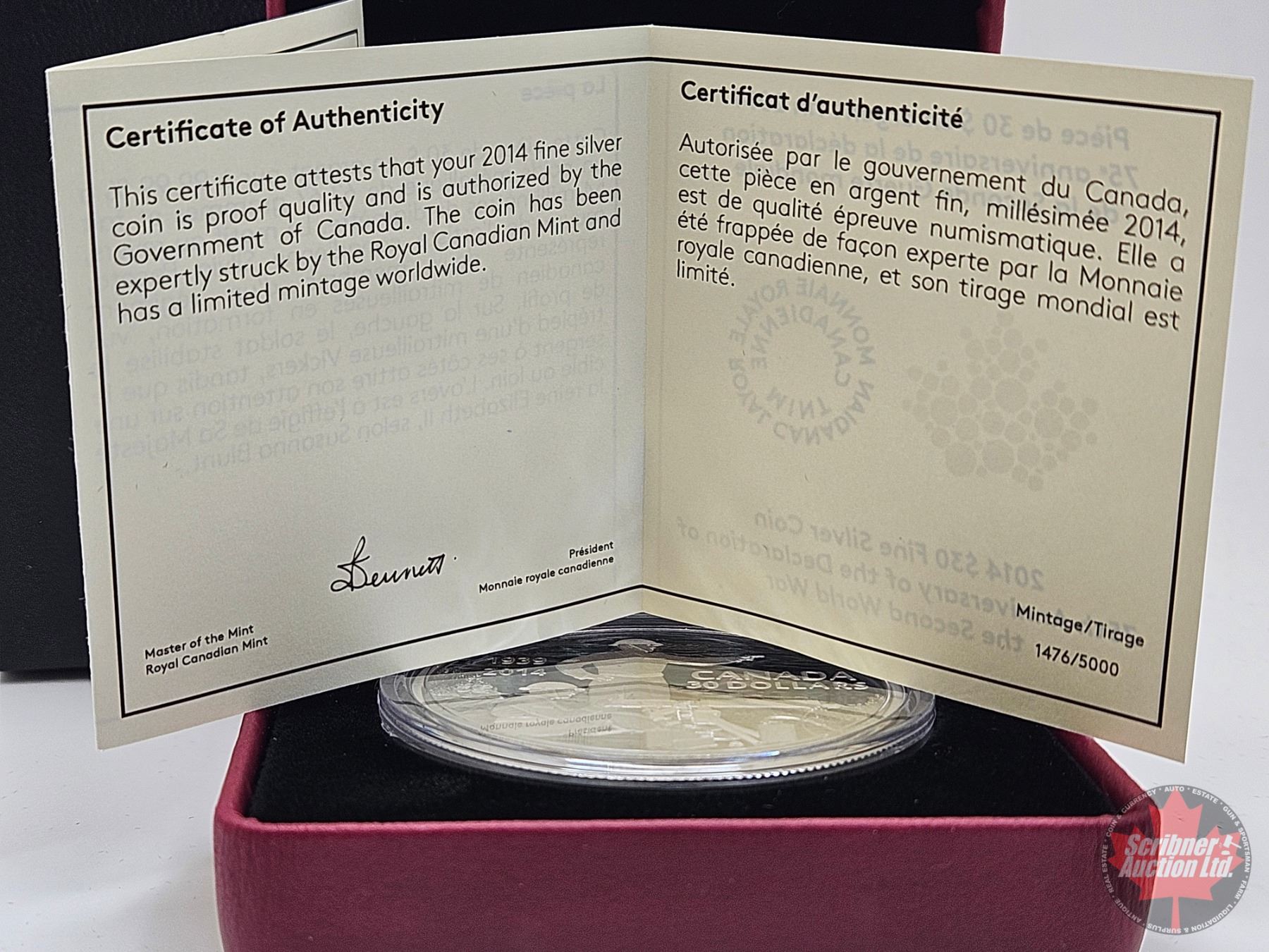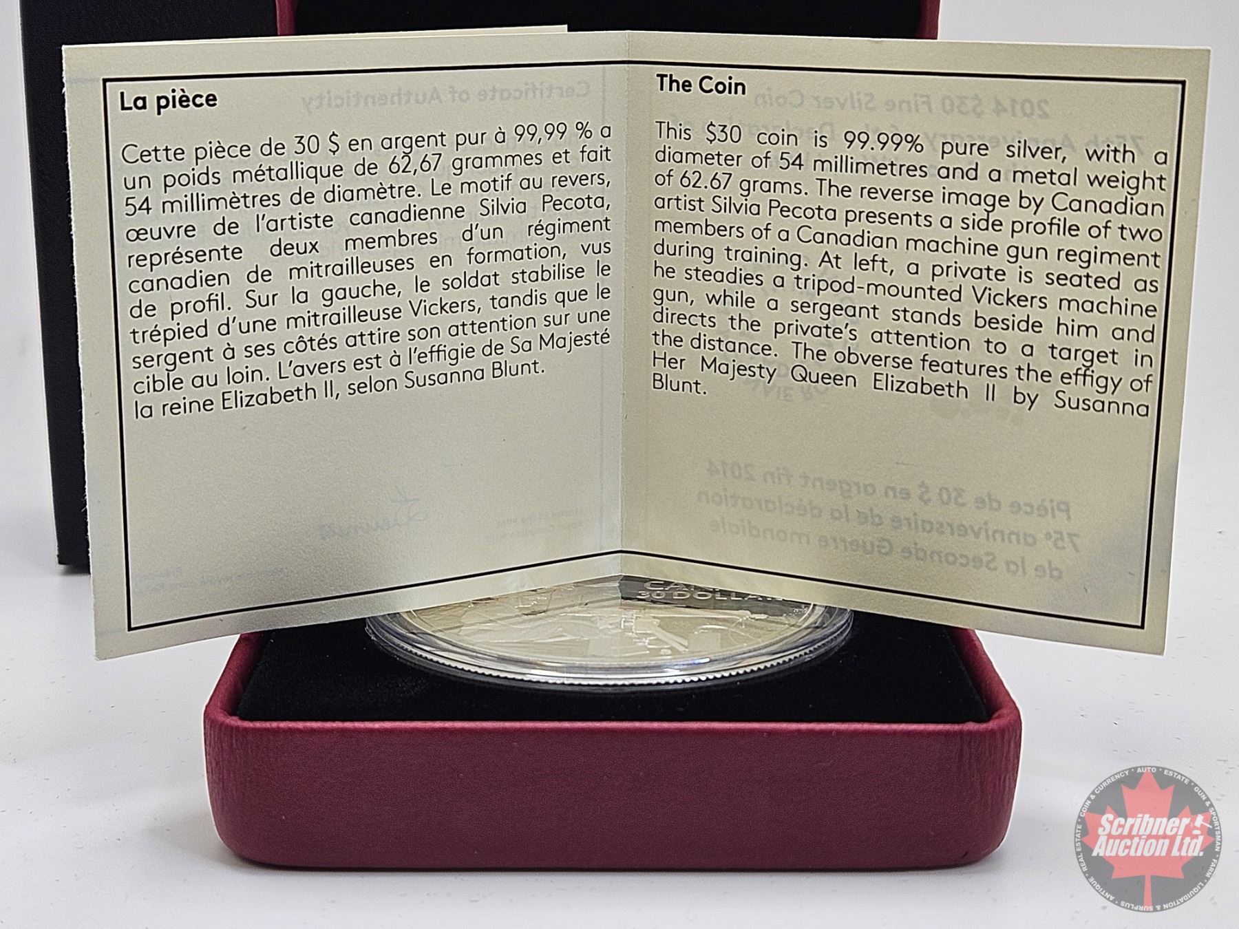 RCM Canada 2014 : $30 Fine Silver Coin : 75th Anniversary of the Declaration of the Second World War