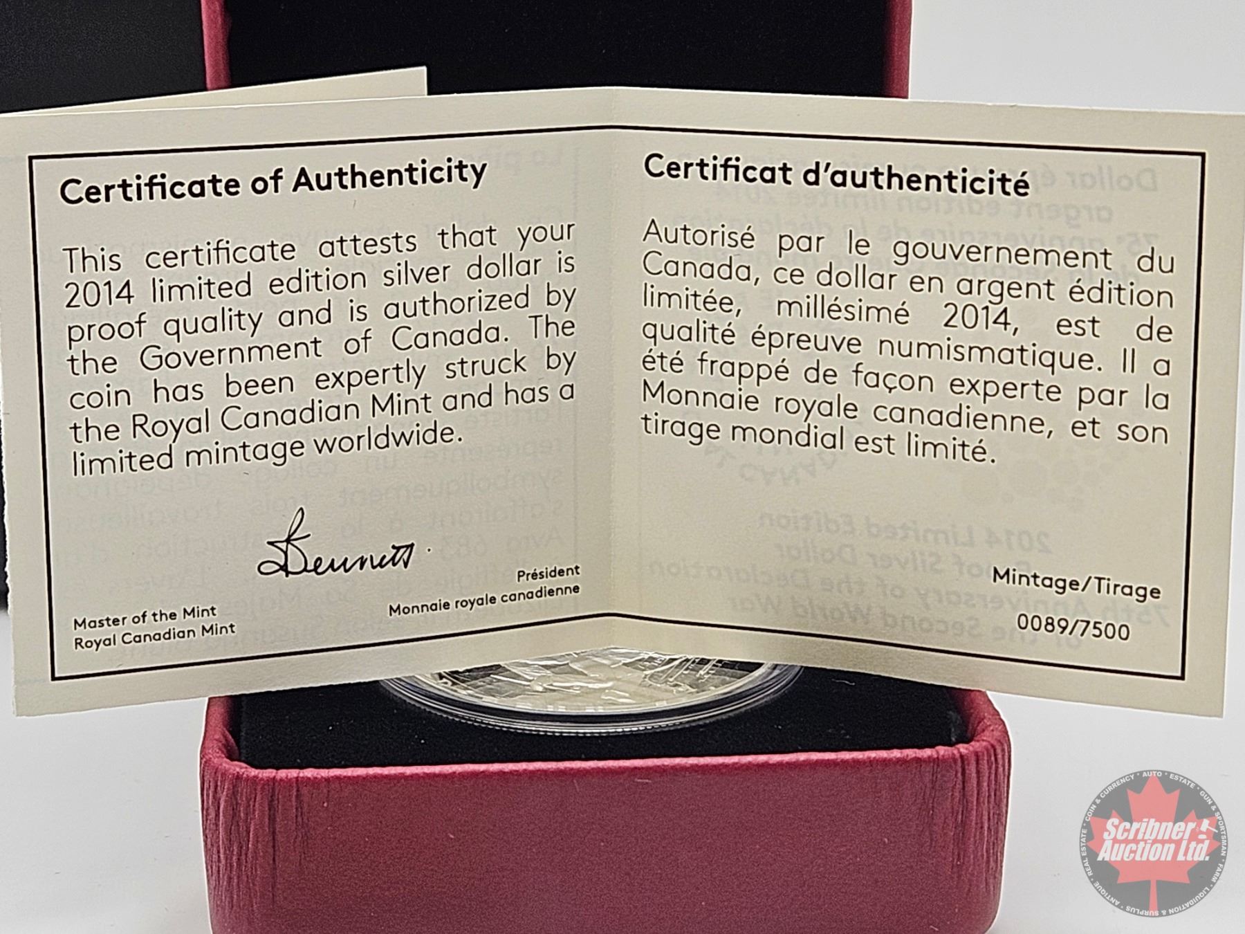 RCM Canada 2014 Limited Edition Proof Silver Dollar : 75th Anniversary of the Declaration of the Second World War