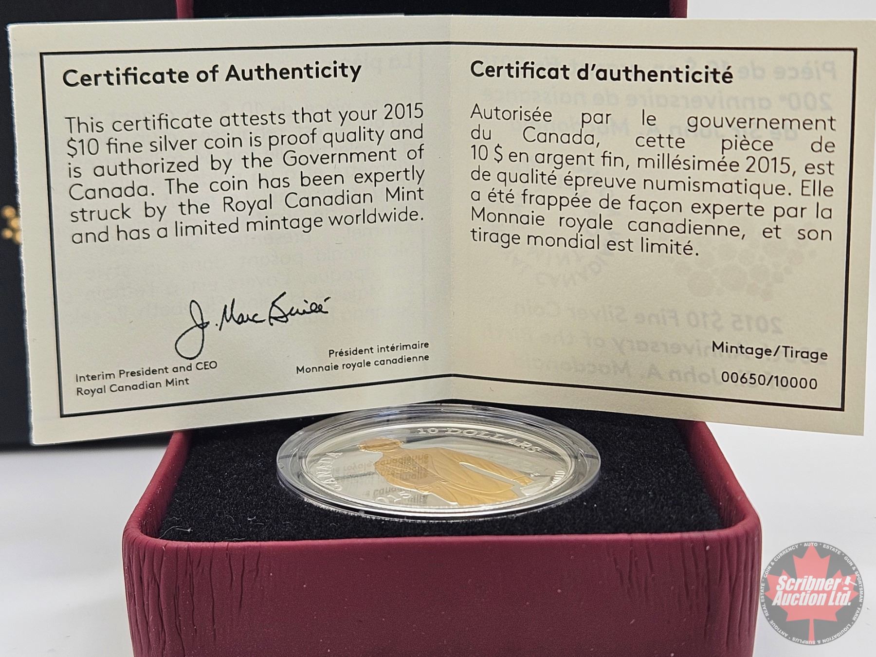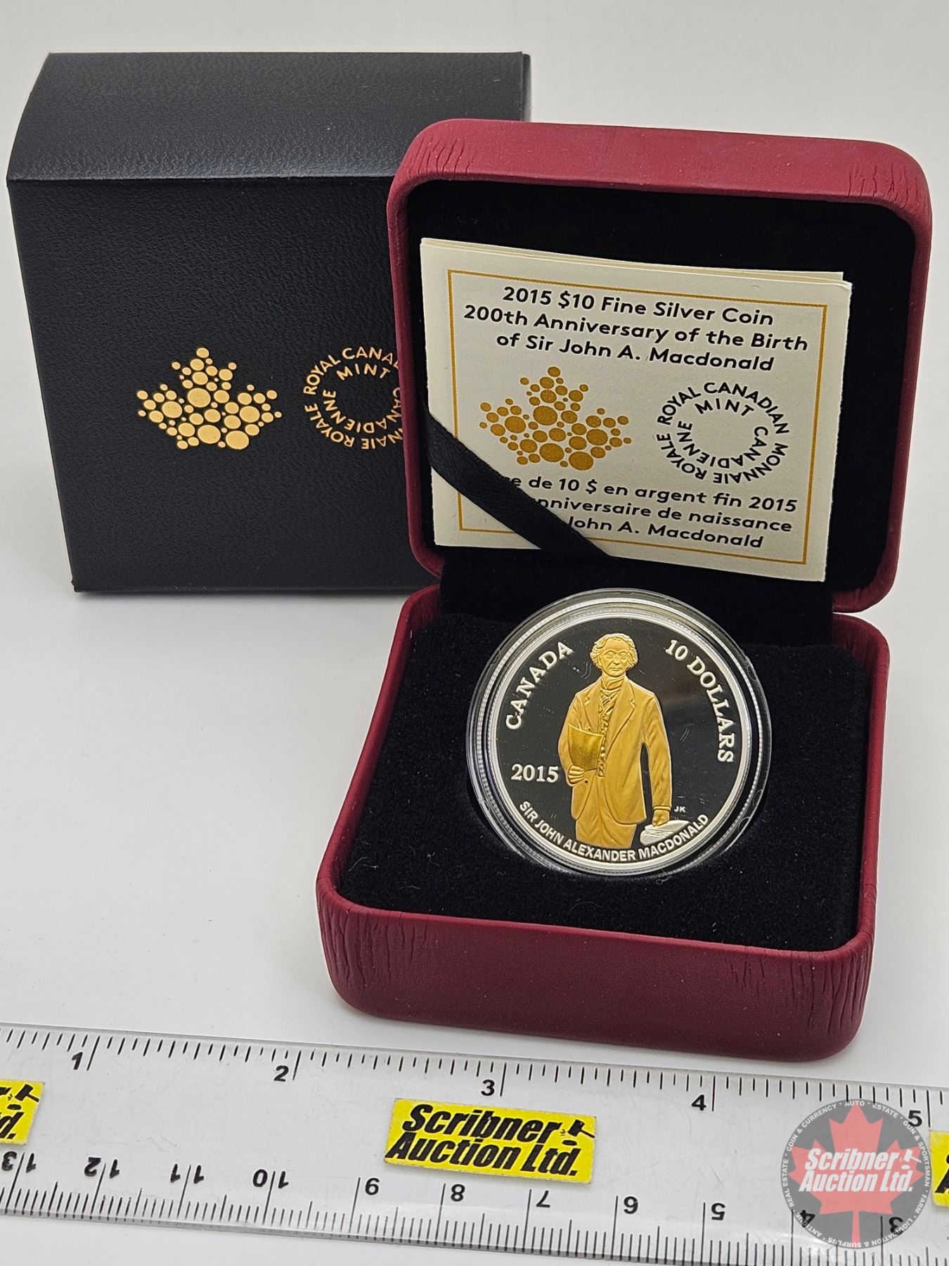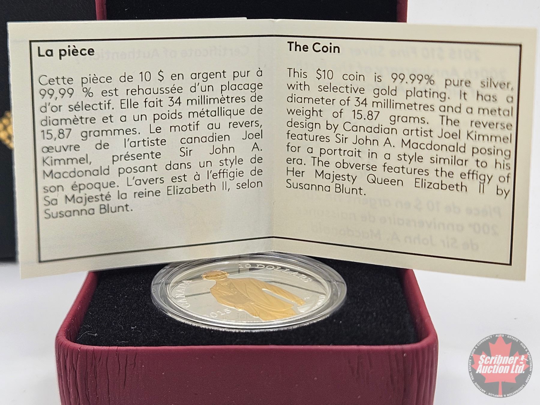 RCM Canada 2015 : $10 Fine Silver Coin : 200th Anniversary of the Birth of Sir John A. Macdonald (COA #00650)