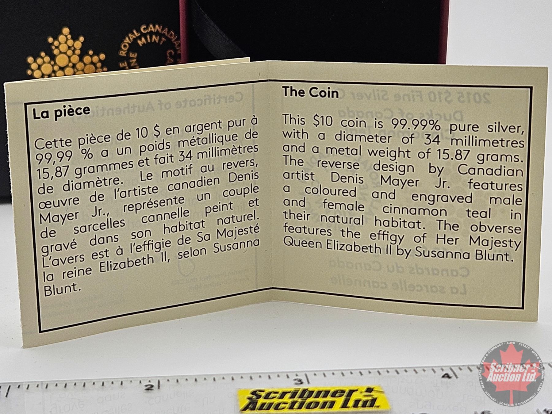 RCM Canada 2015 : $10 Fine Silver Coin : Ducks of Canada : Cinnamon Teal (COA #04078)