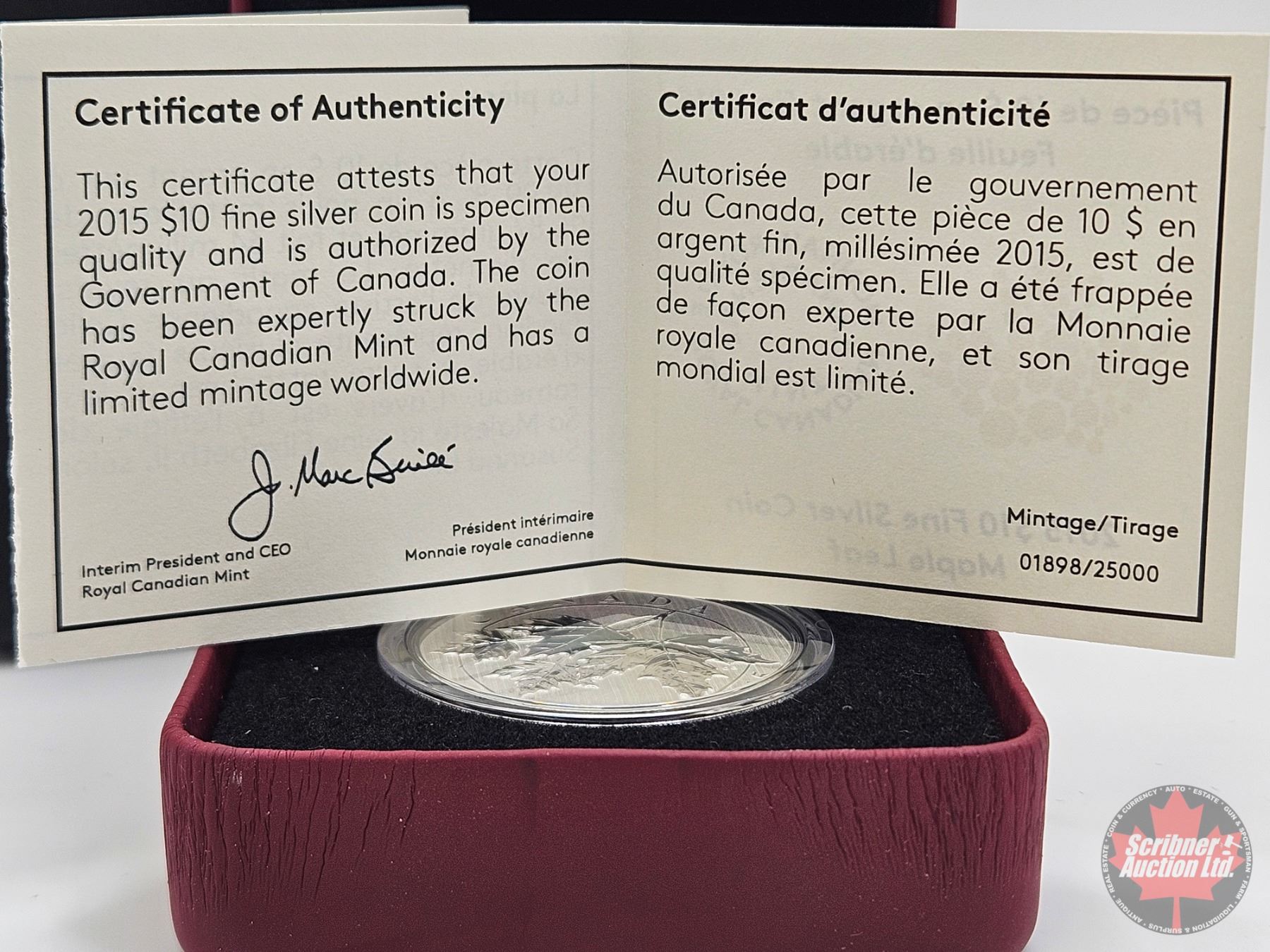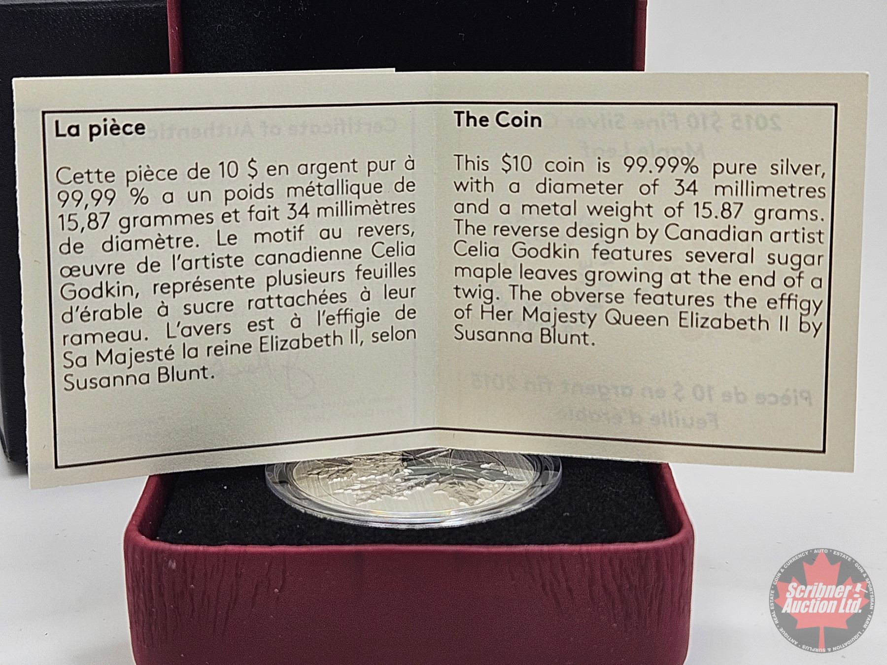 RCM Canada 2015 : $10 Fine Silver Coin : Maple Leaf (COA #01898)