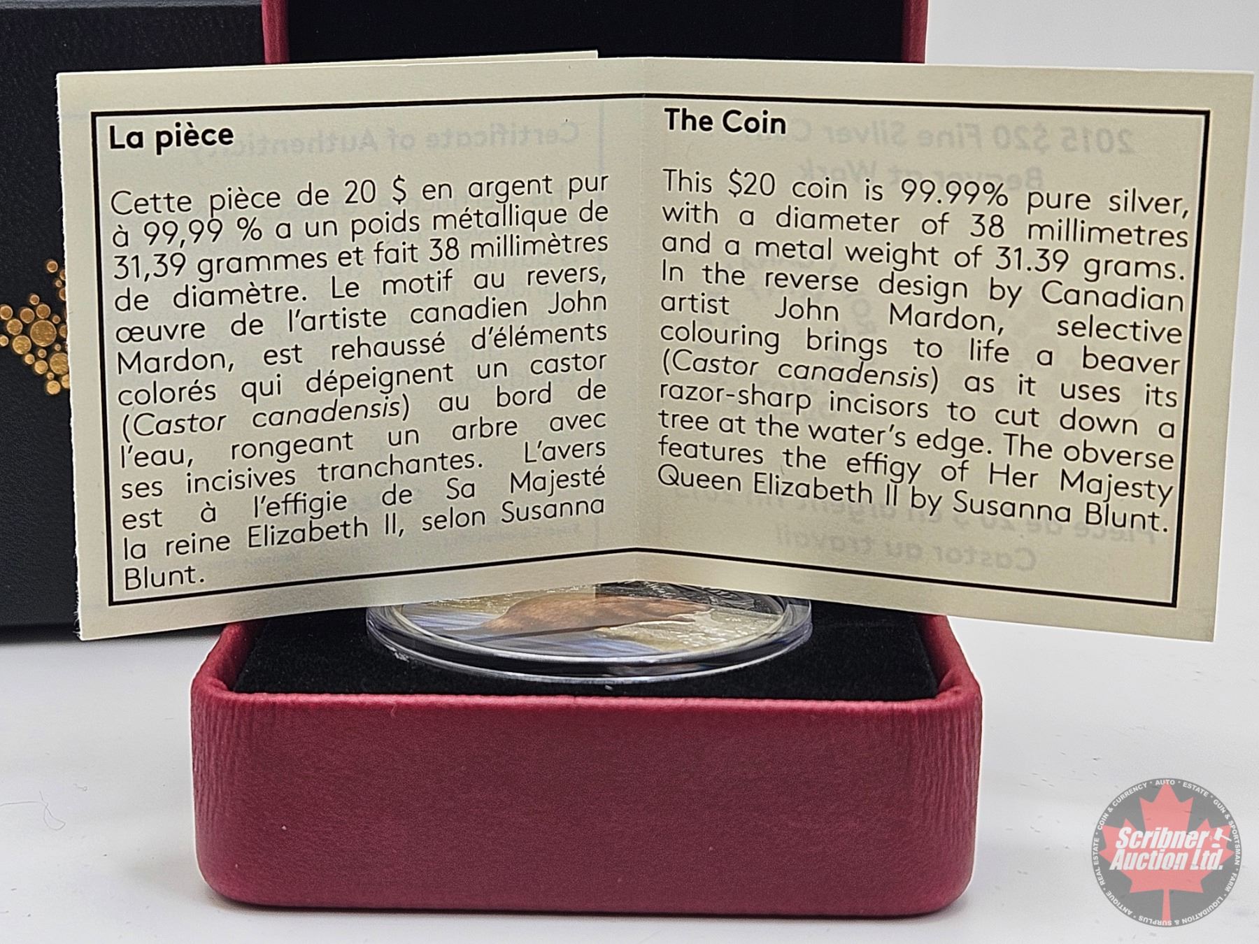 RCM Canada 2015 : $20 Fine Silver Coin : Beaver at Work (COA #4576)