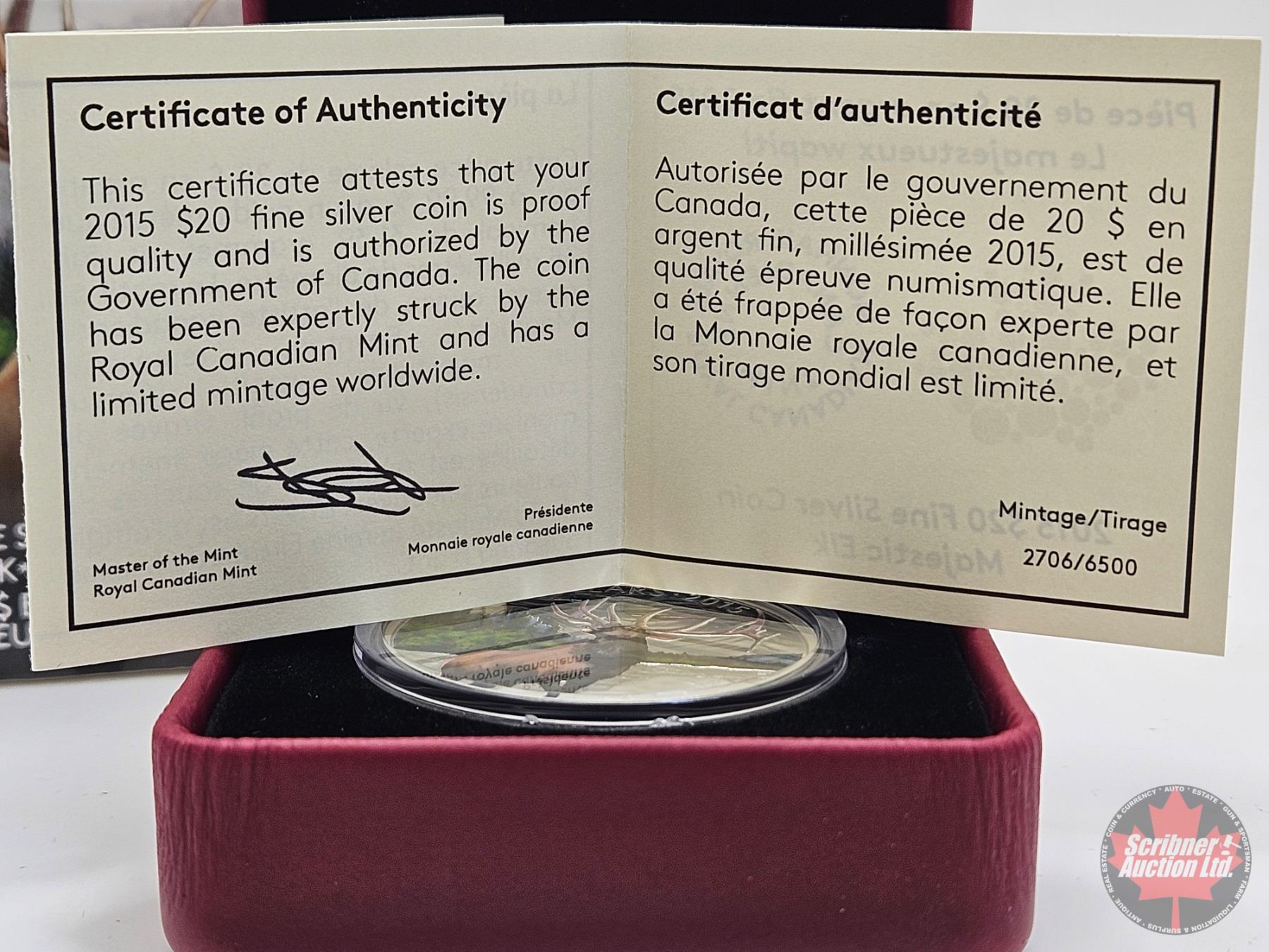 RCM Canada 2015 : $20 Fine Silver Coin : Majestic Elk (COA #2706)