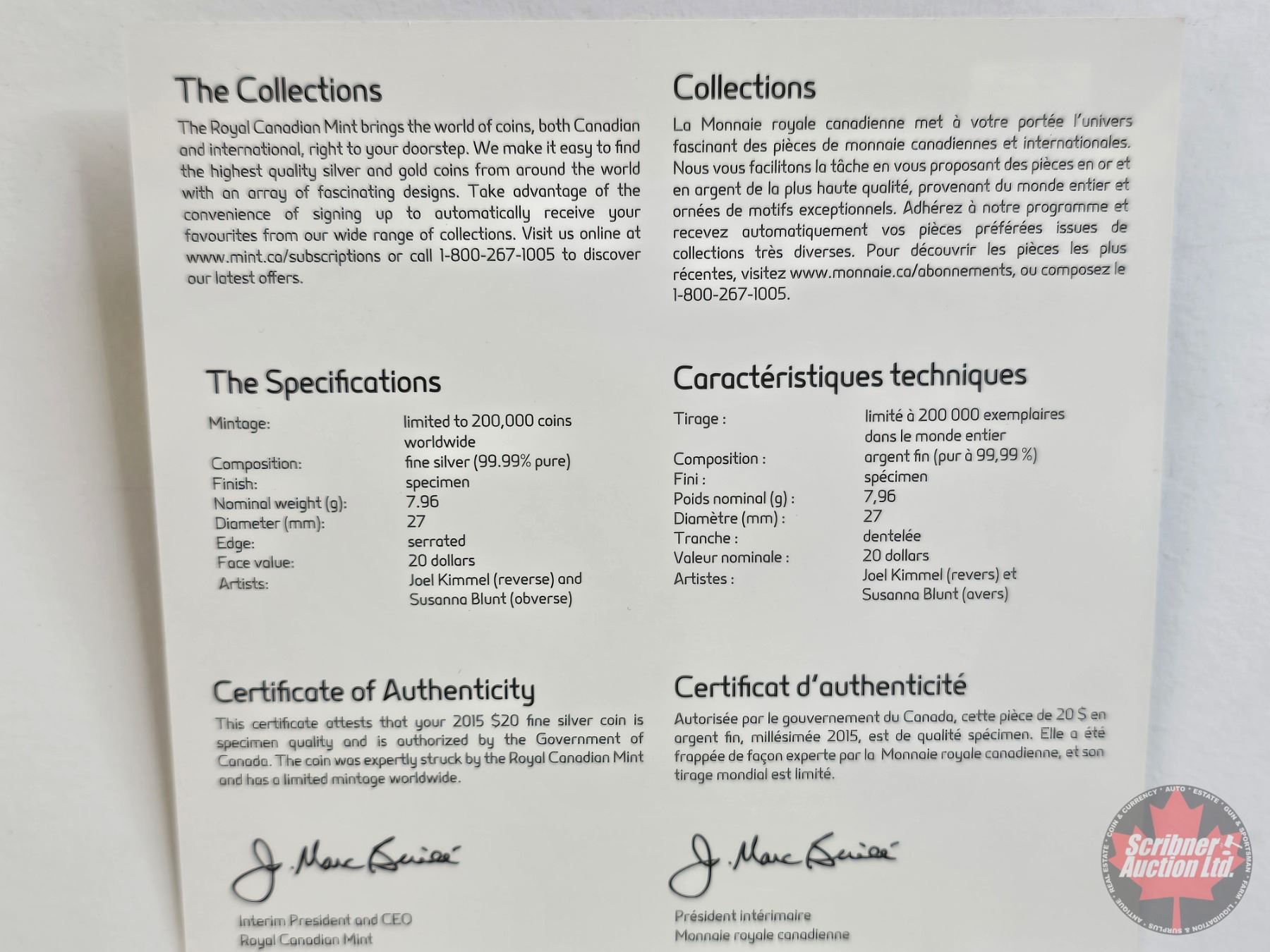 Firearm, Coin & Currency Grades are not the opinion of Scribner Auction Ltd. or any of Scribner Auction Ltd. representatives.