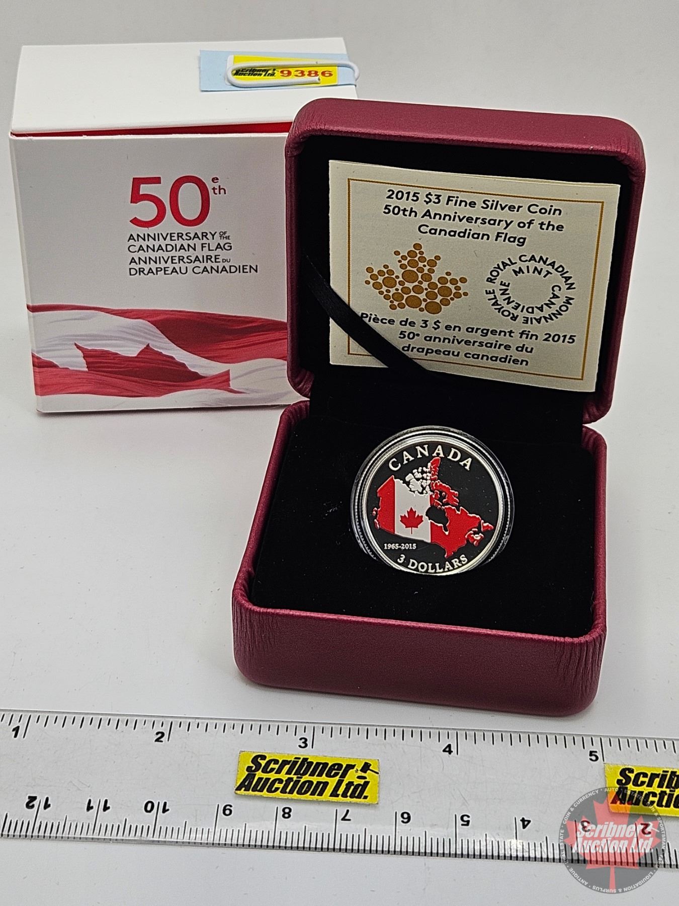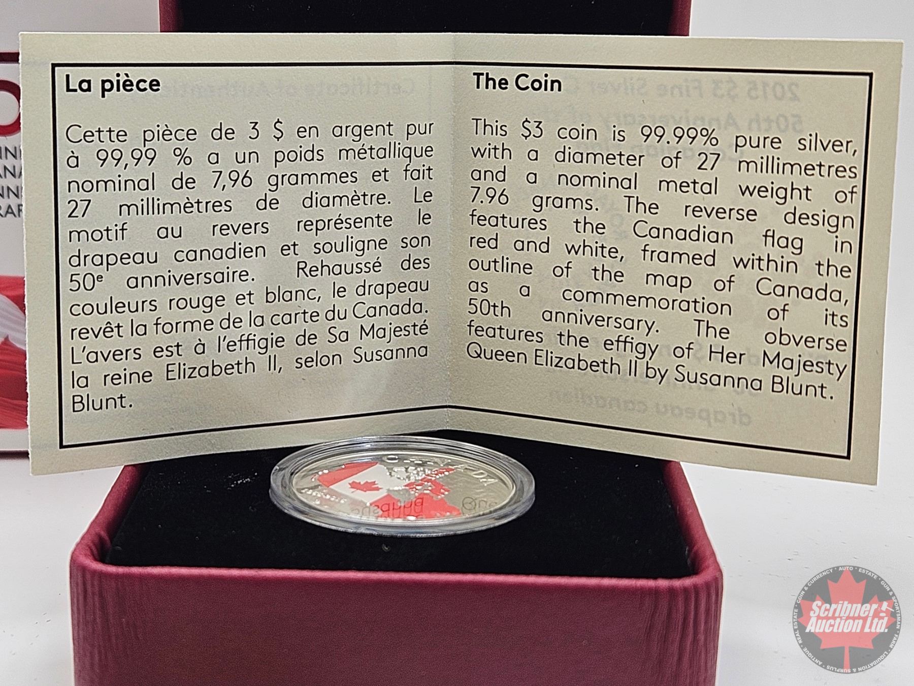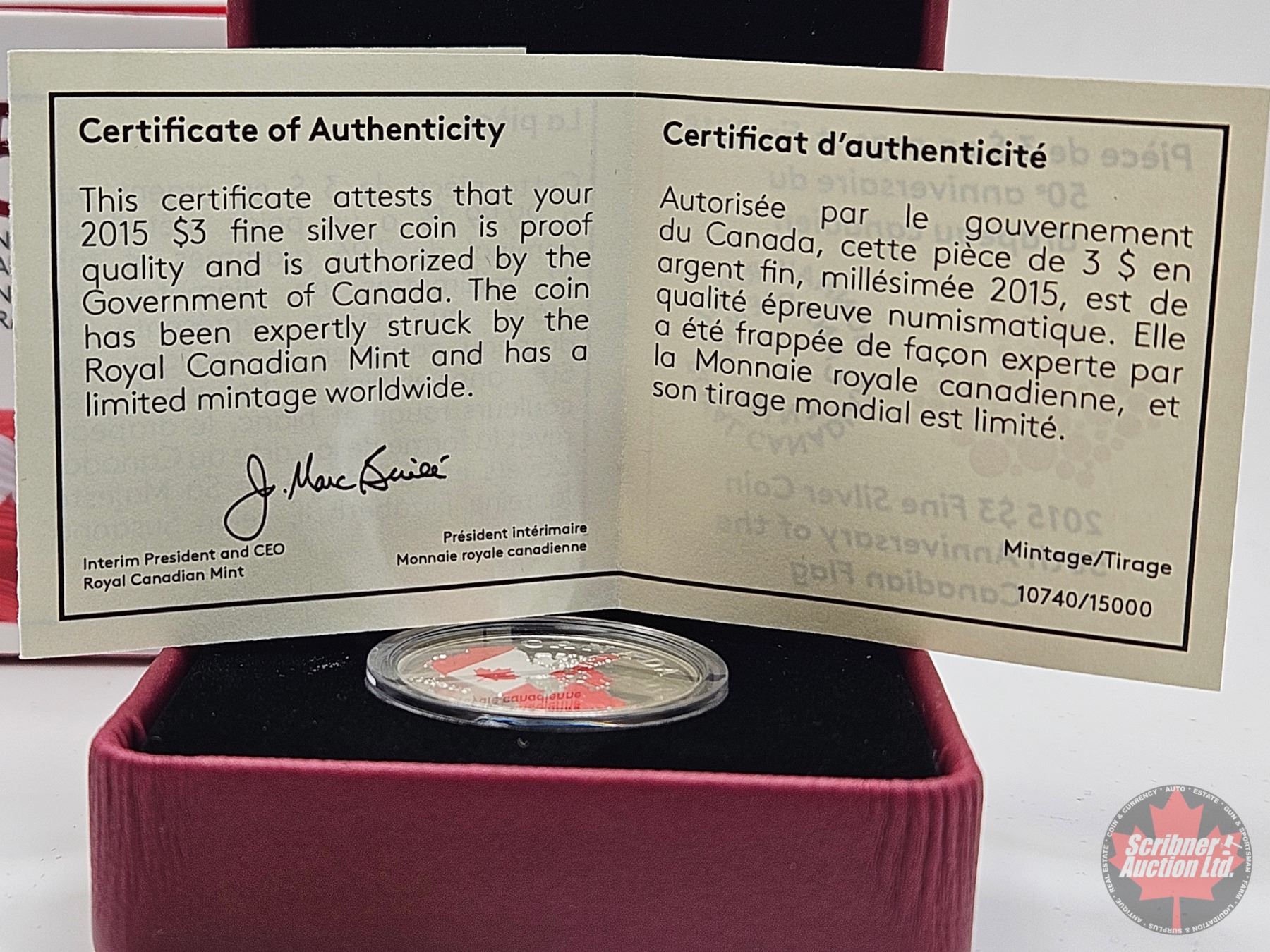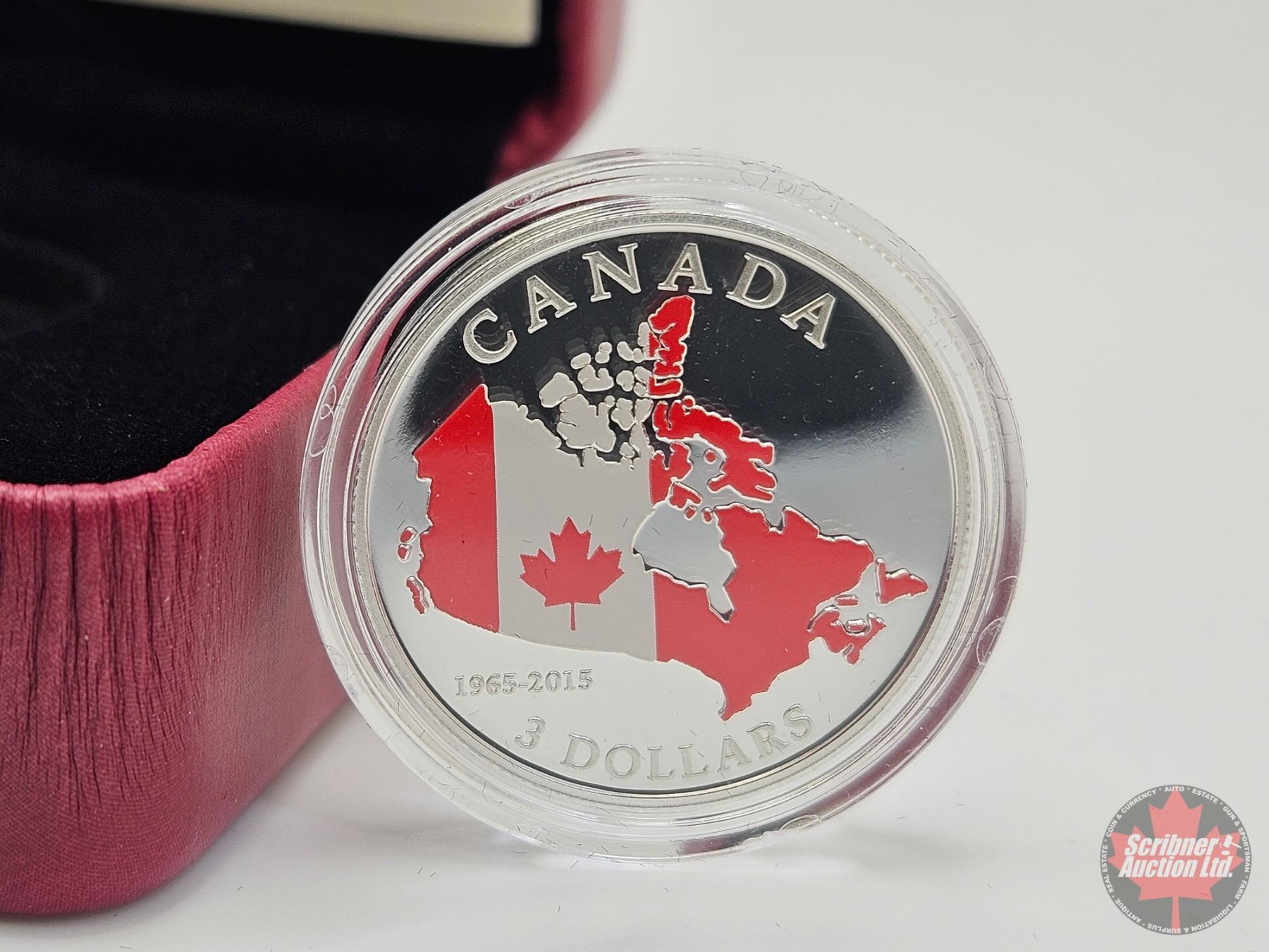 RCM Canada 2015 : $3 Fine Silver Coin : 50th Anniversary of the Canadian Flag (COA #10740)