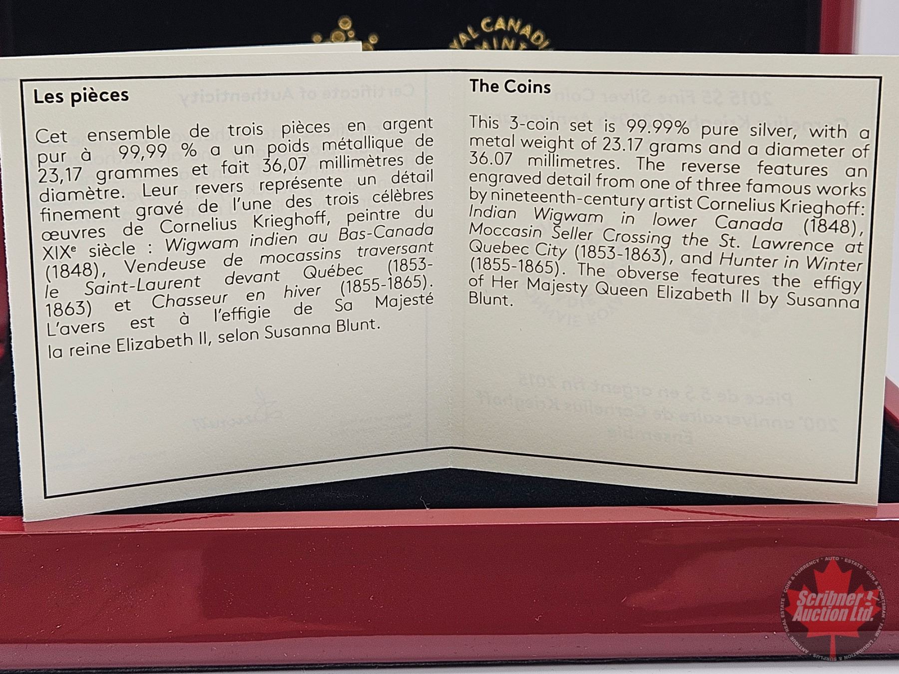 RCM Canada 2015 : $5 Fine Silver 3-Coin Set : Cornelius Krieghoff 200th Anniversary Set (COA #3327)