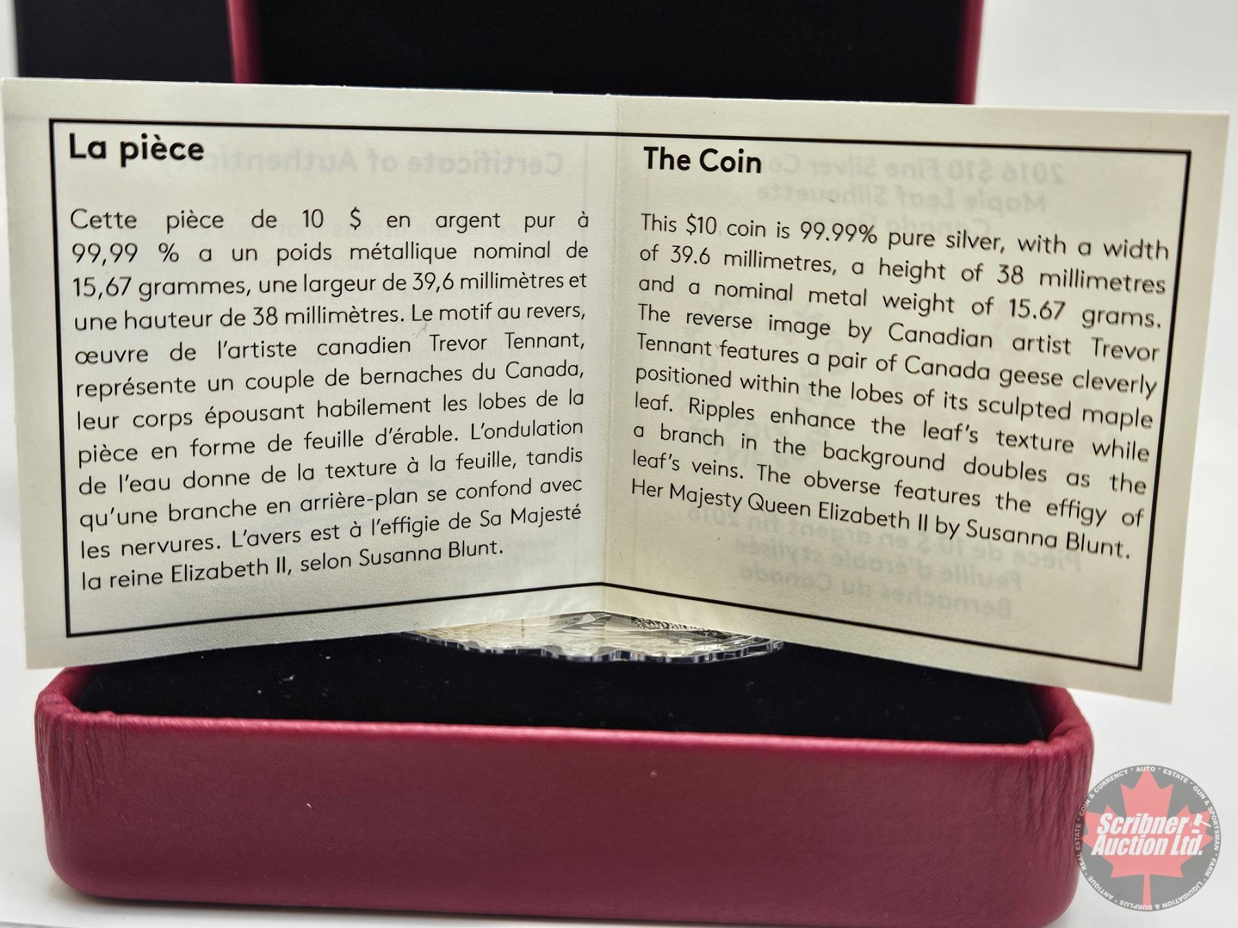 RCM Canada 2016 : $10 Fine Silver Coin : Maple Leaf Silhouette : Canada Geese (COA #04335)