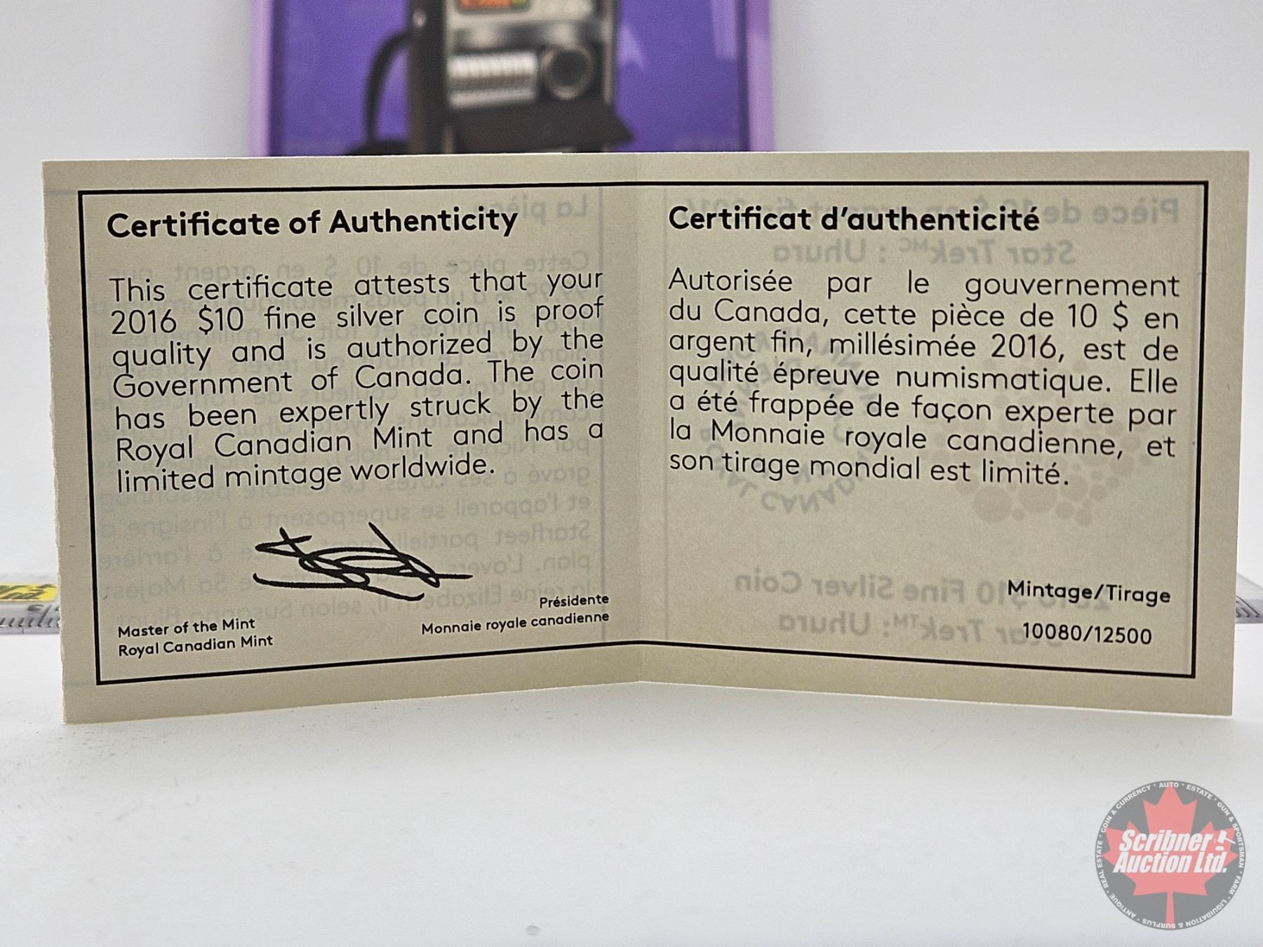 Firearm, Coin & Currency Grades are not the opinion of Scribner Auction Ltd. or any of Scribner Auction Ltd. representatives.