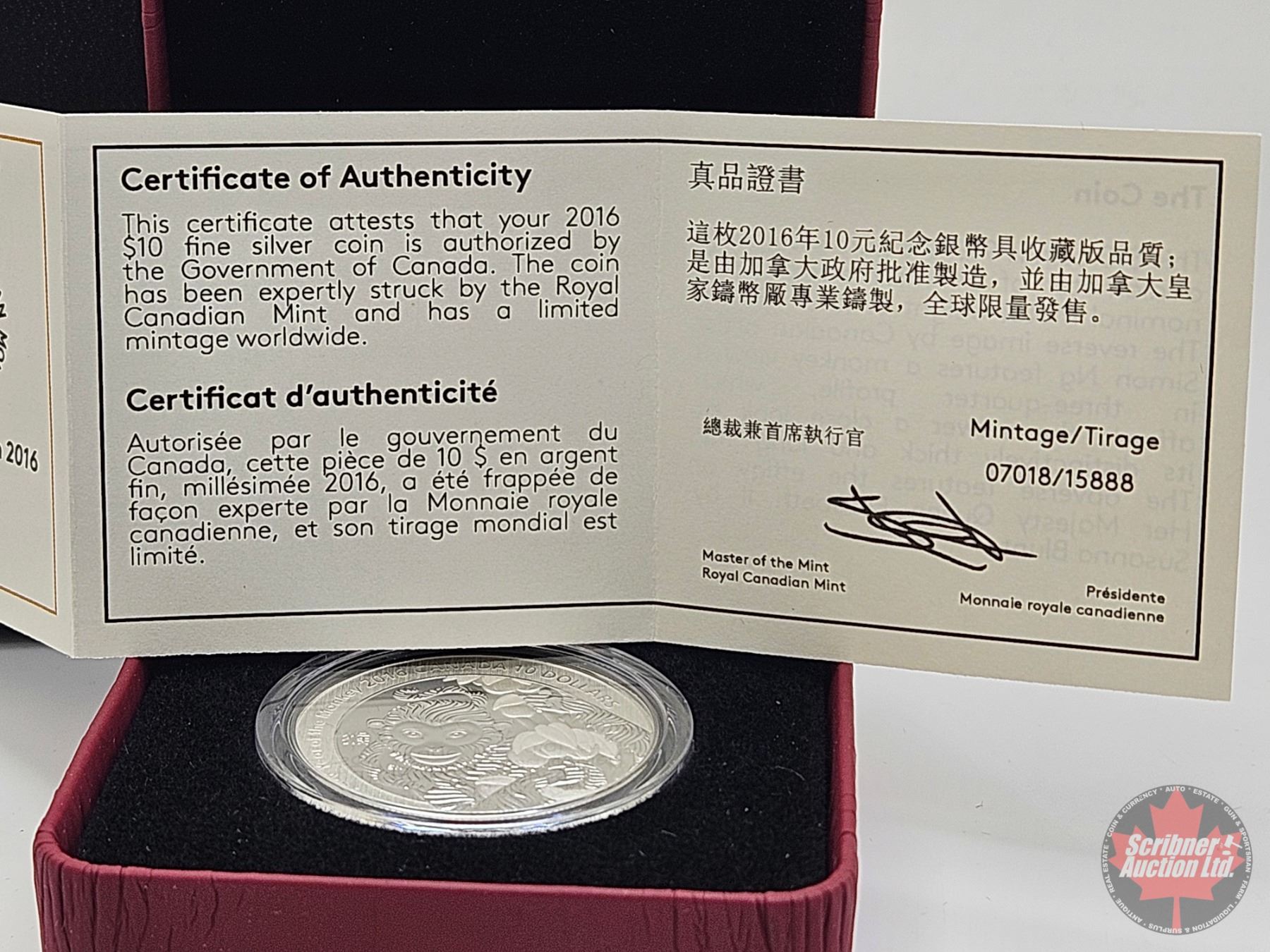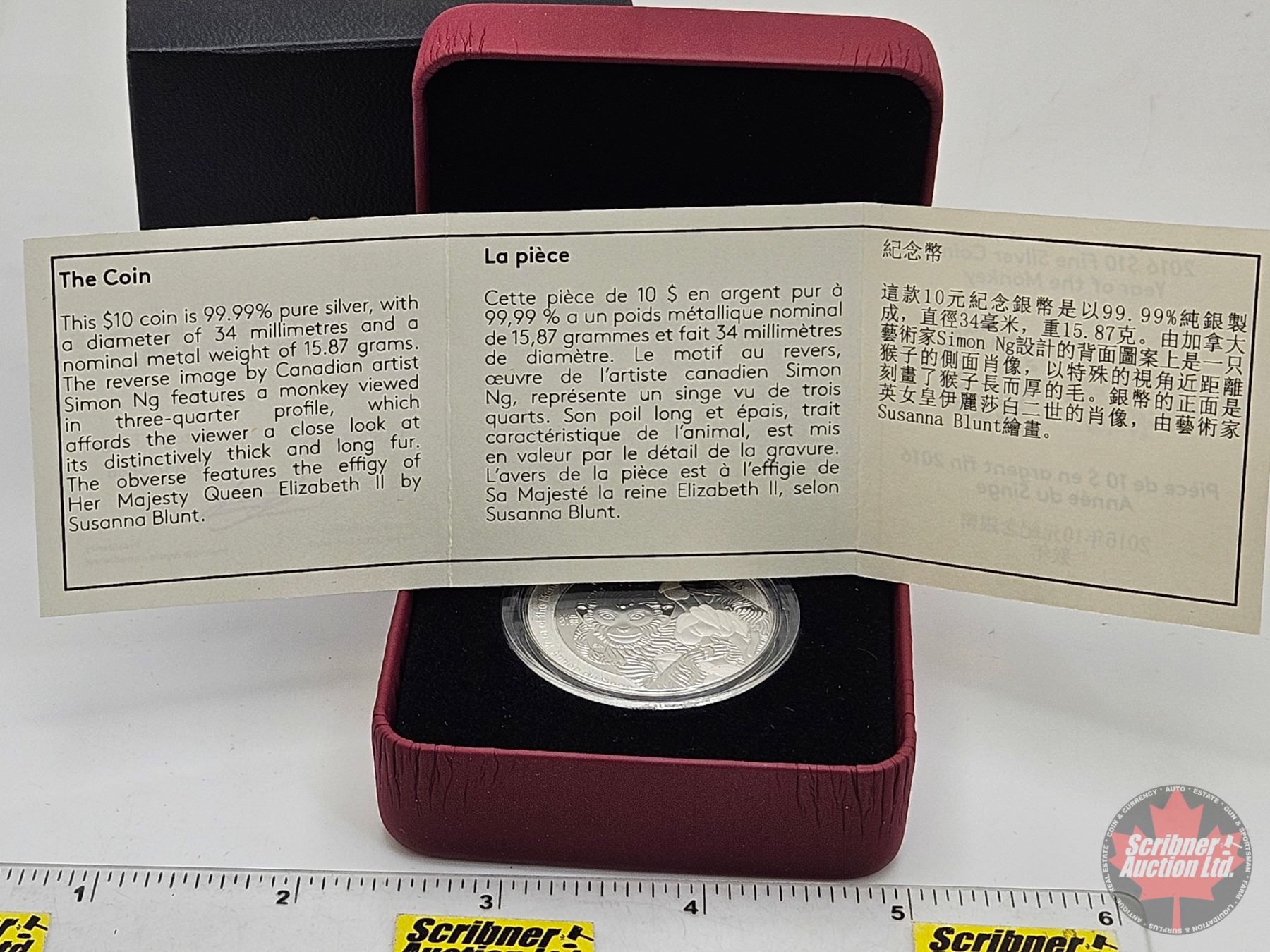 RCM Canada 2016 : $10 Fine Silver Coin : Year of the Monkey (COA #07018)