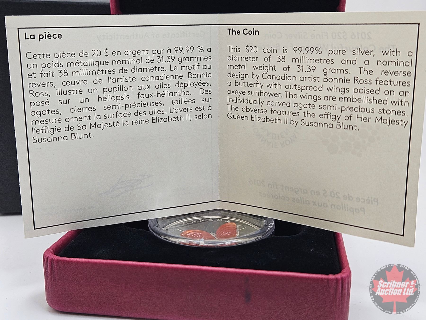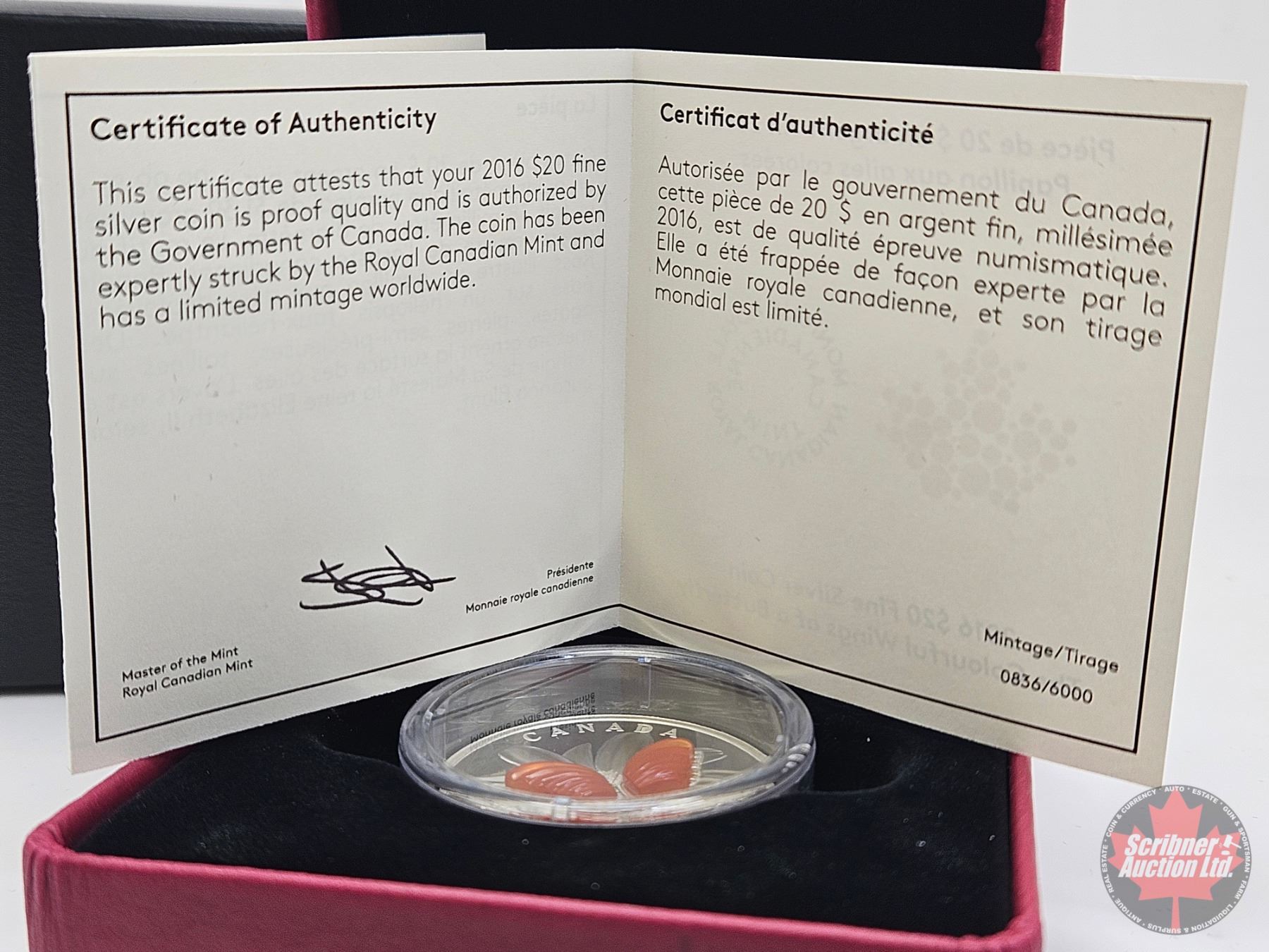 RCM Canada 2016 : $20 Fine Silver Coin : The Colorful Wings of a Butterfly (COA #0836)