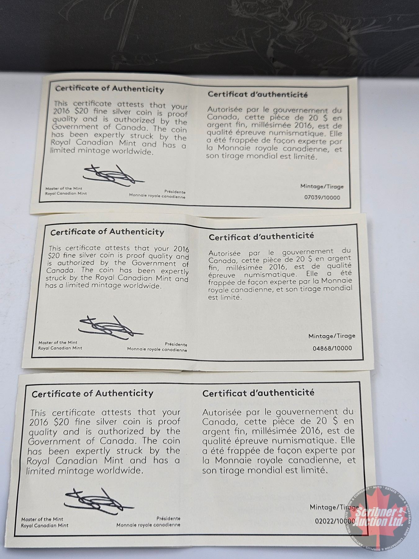Firearm, Coin & Currency Grades are not the opinion of Scribner Auction Ltd. or any of Scribner Auction Ltd. representatives.