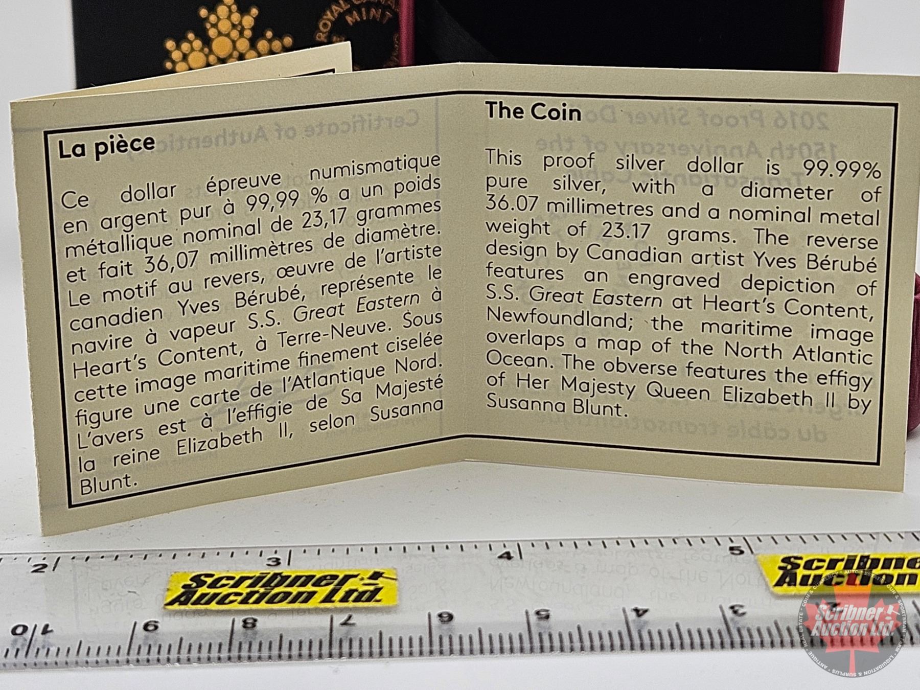 RCM Canada 2016 : Proof Silver Dollar : 150th Anniversary of the Transatlantic Cable