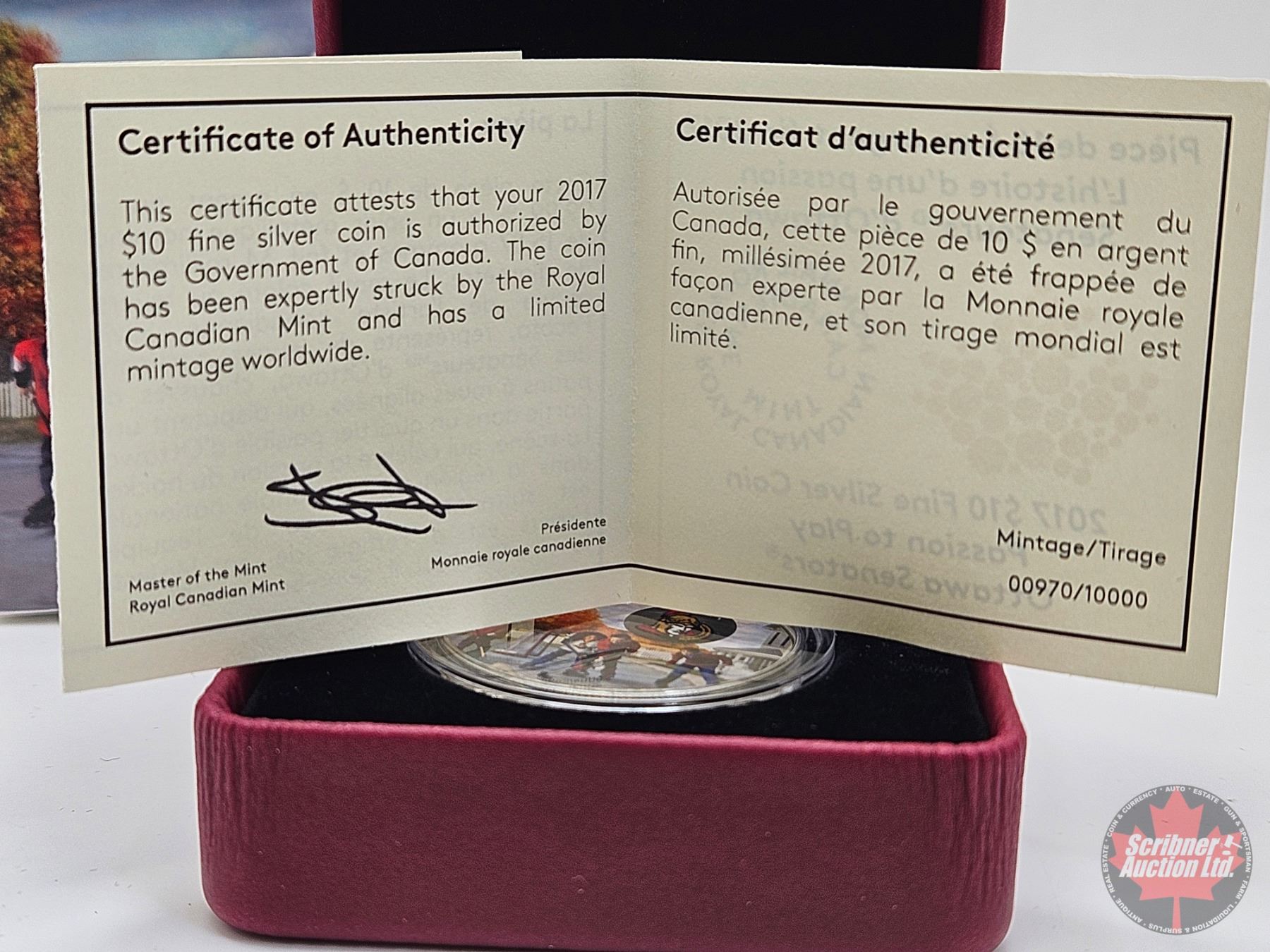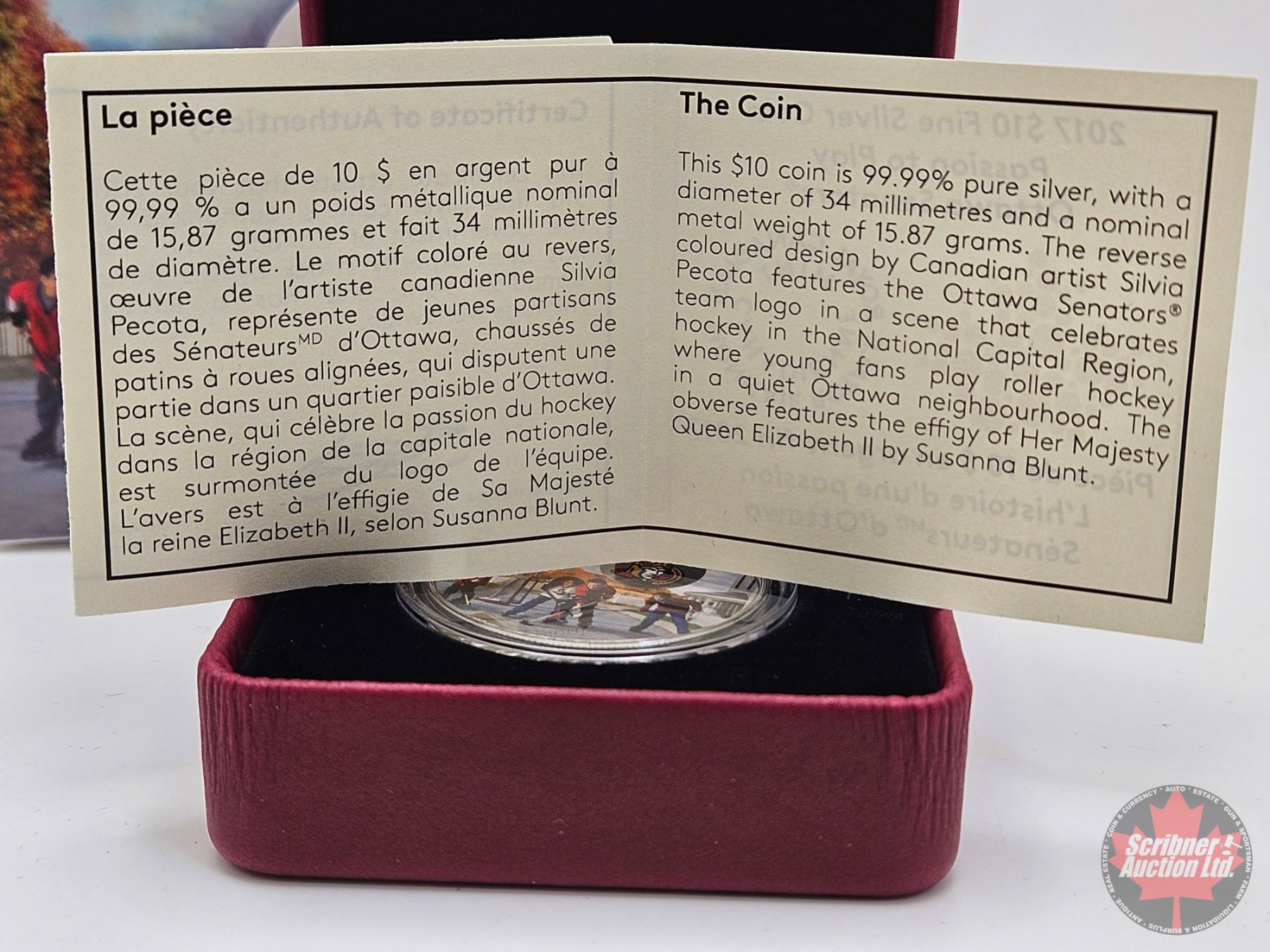 RCM Canada 2017 : $10 Fine Silver Coin : Passion to Play : Ottawa Senators (COA #00970)