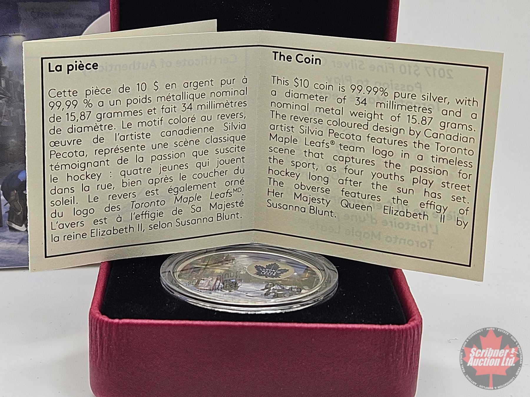 RCM Canada 2017 : $10 Fine Silver Coin : Passion to Play : Toronto Maple Leafs (COA #07207)